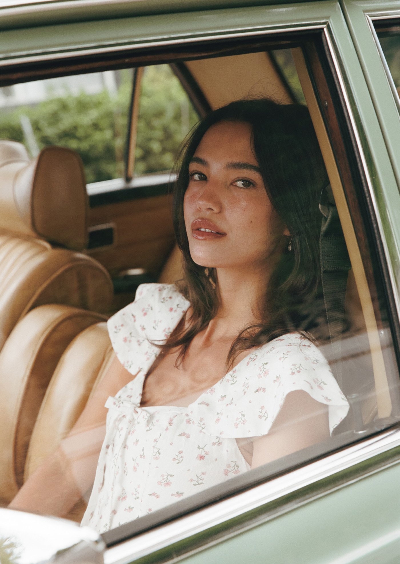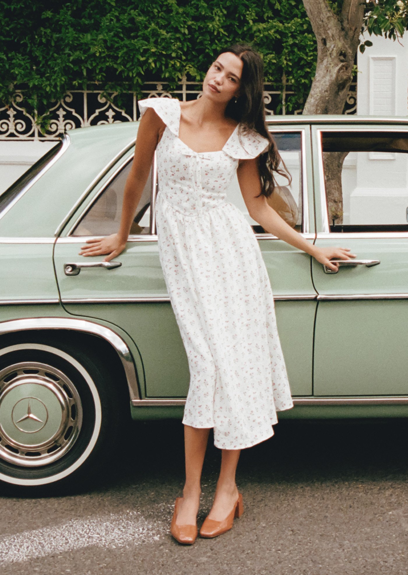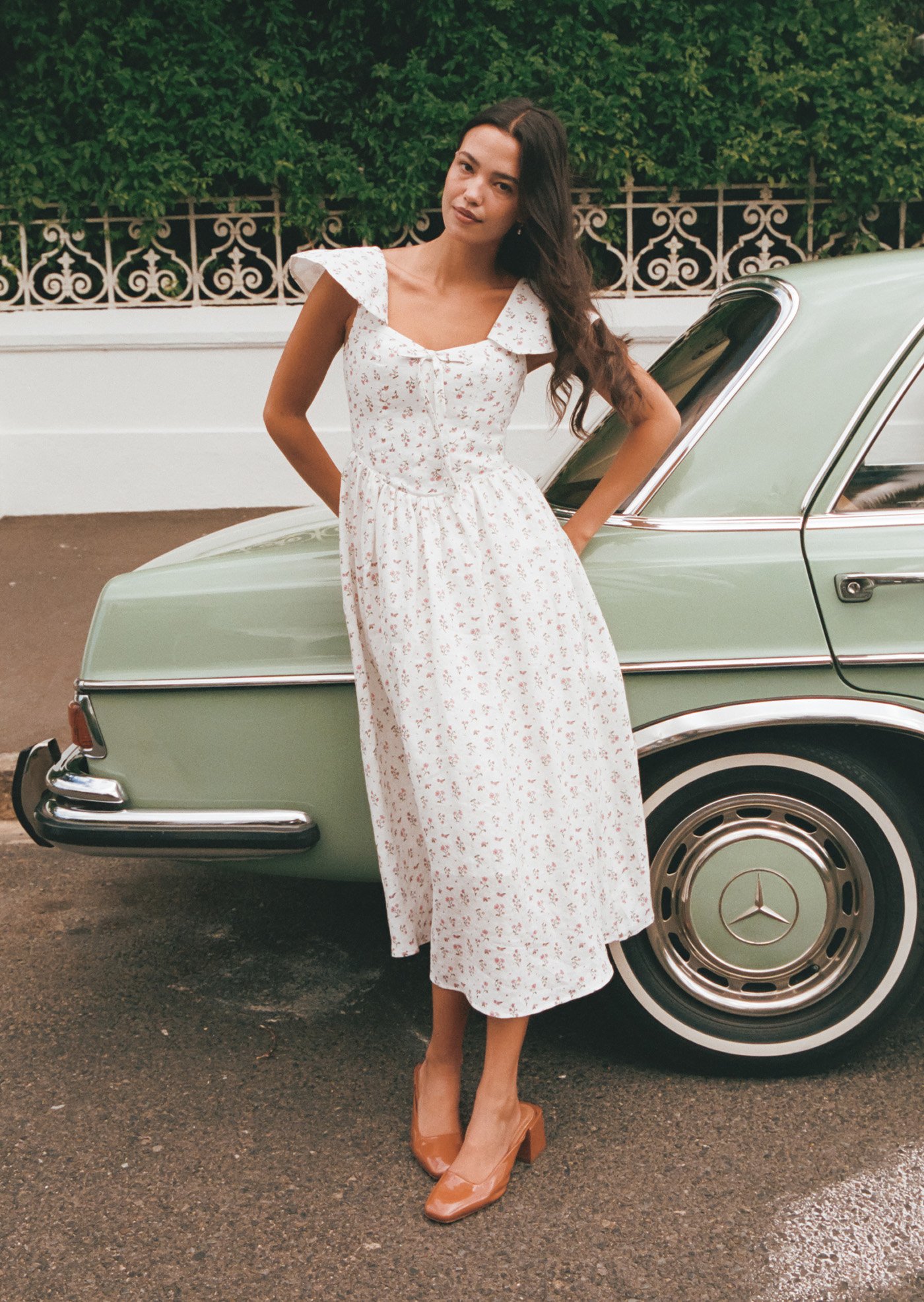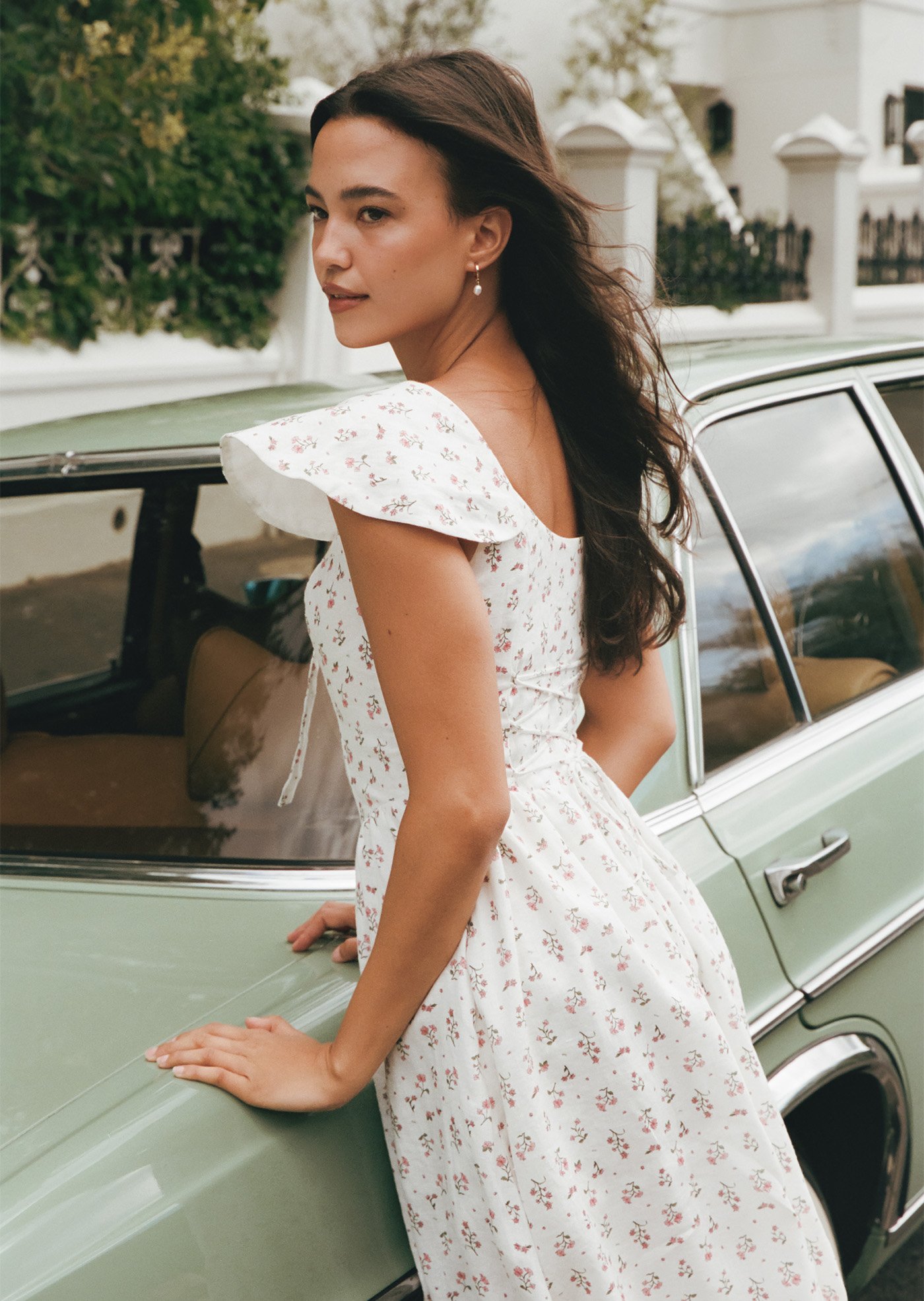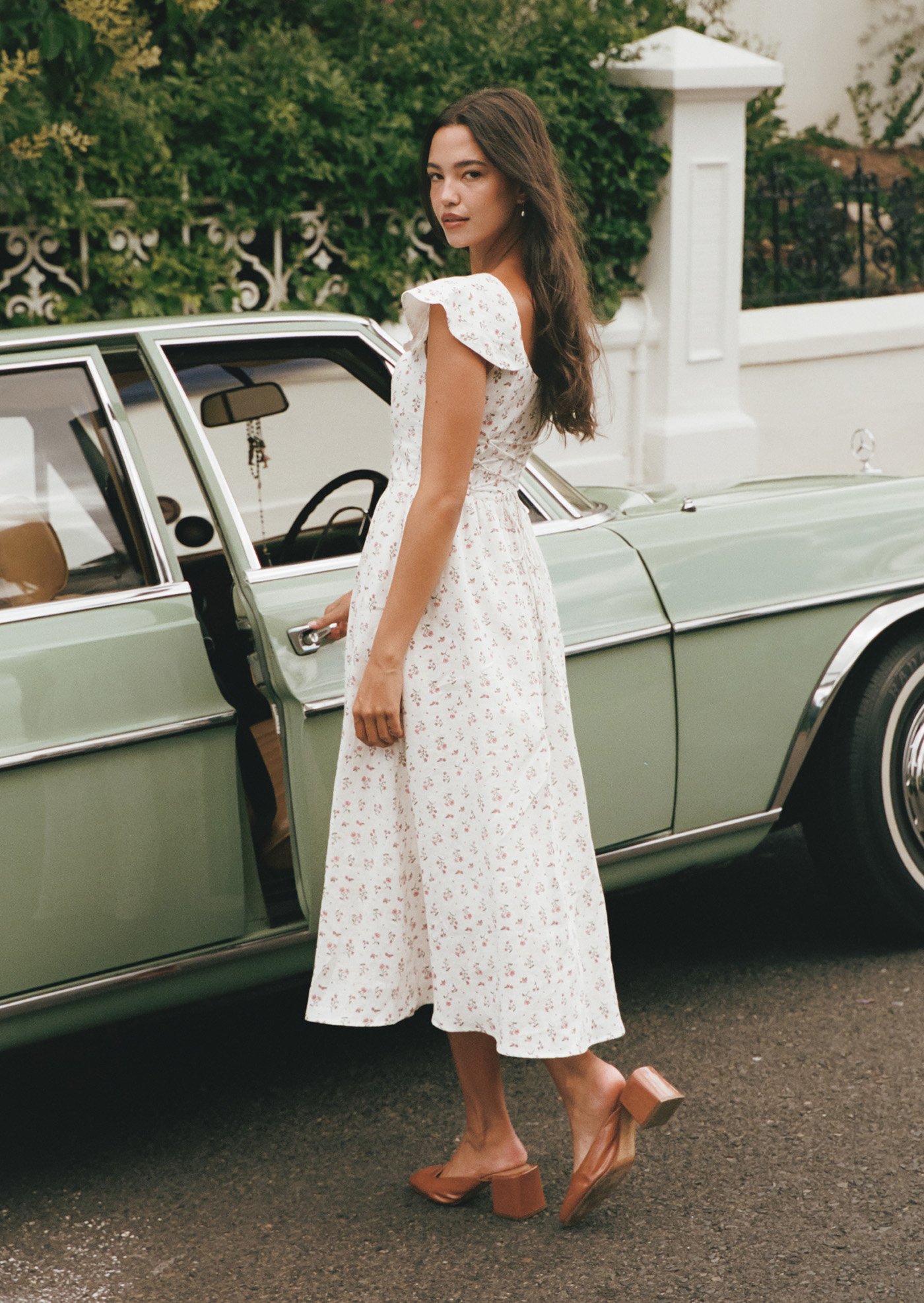 Aileen is a softly romantic midi designed with delicate structure and everyday ease in mind. Featuring a gentle scoop neckline, flutter sleeves, and a flattering fitted bodice, this piece balances femininity with comfort. The lace-up back allows for an adjustable fit, while the flowing skirt adds lightness and movement — perfect for slow mornings and warm afternoons.