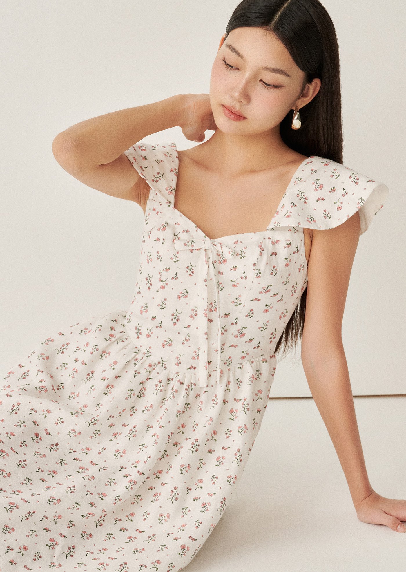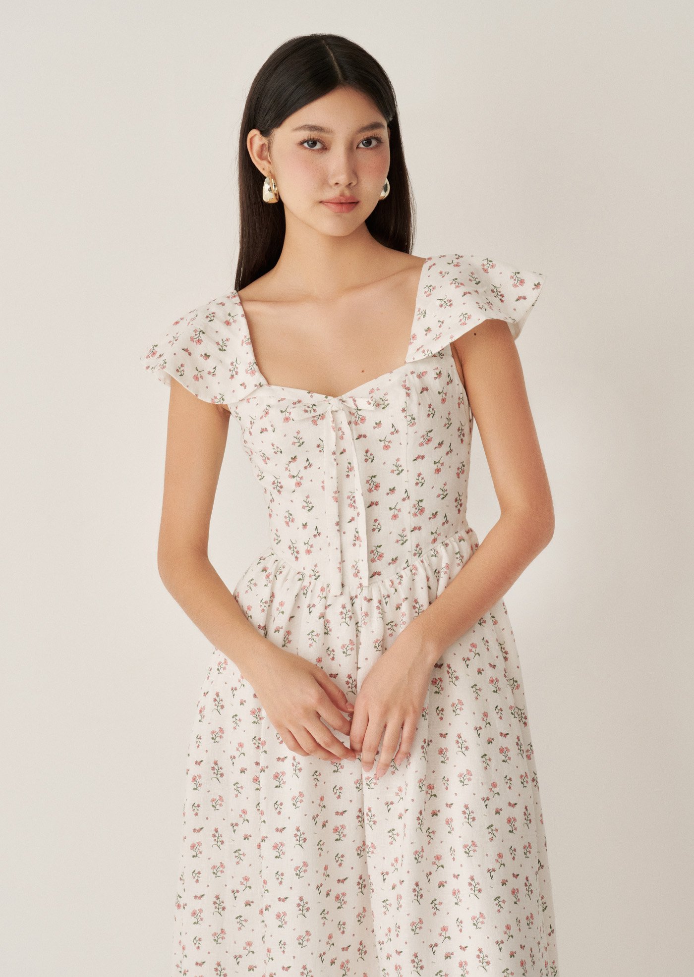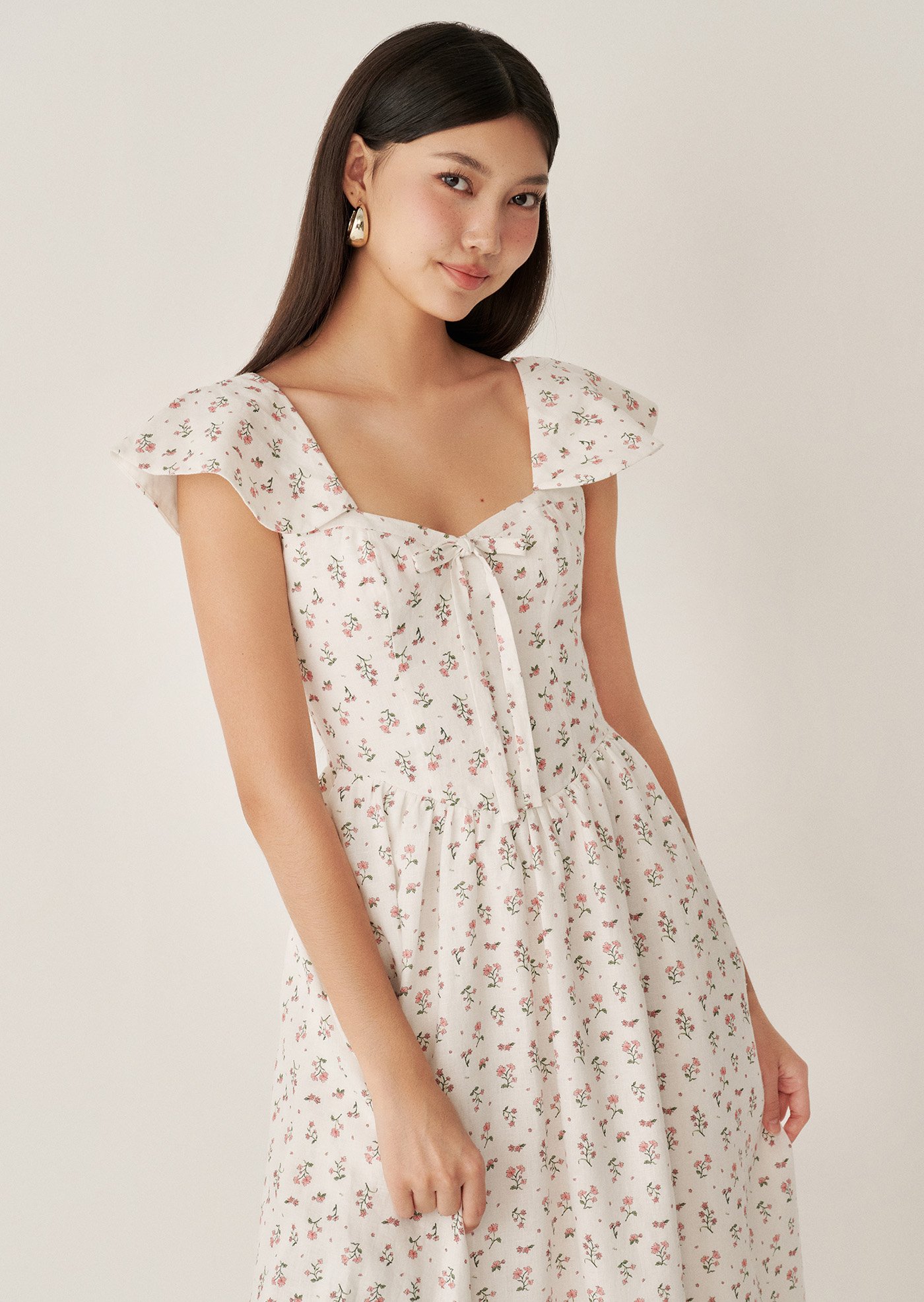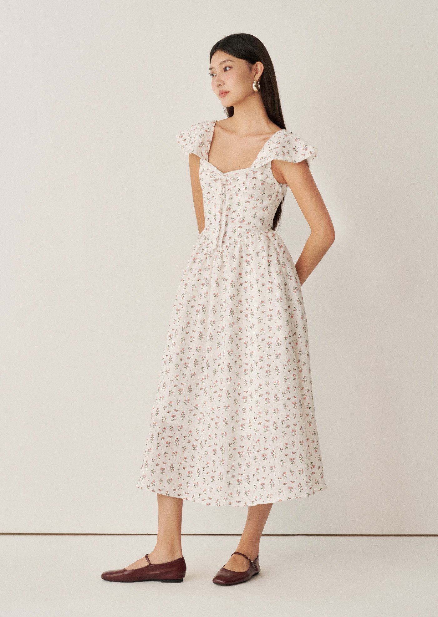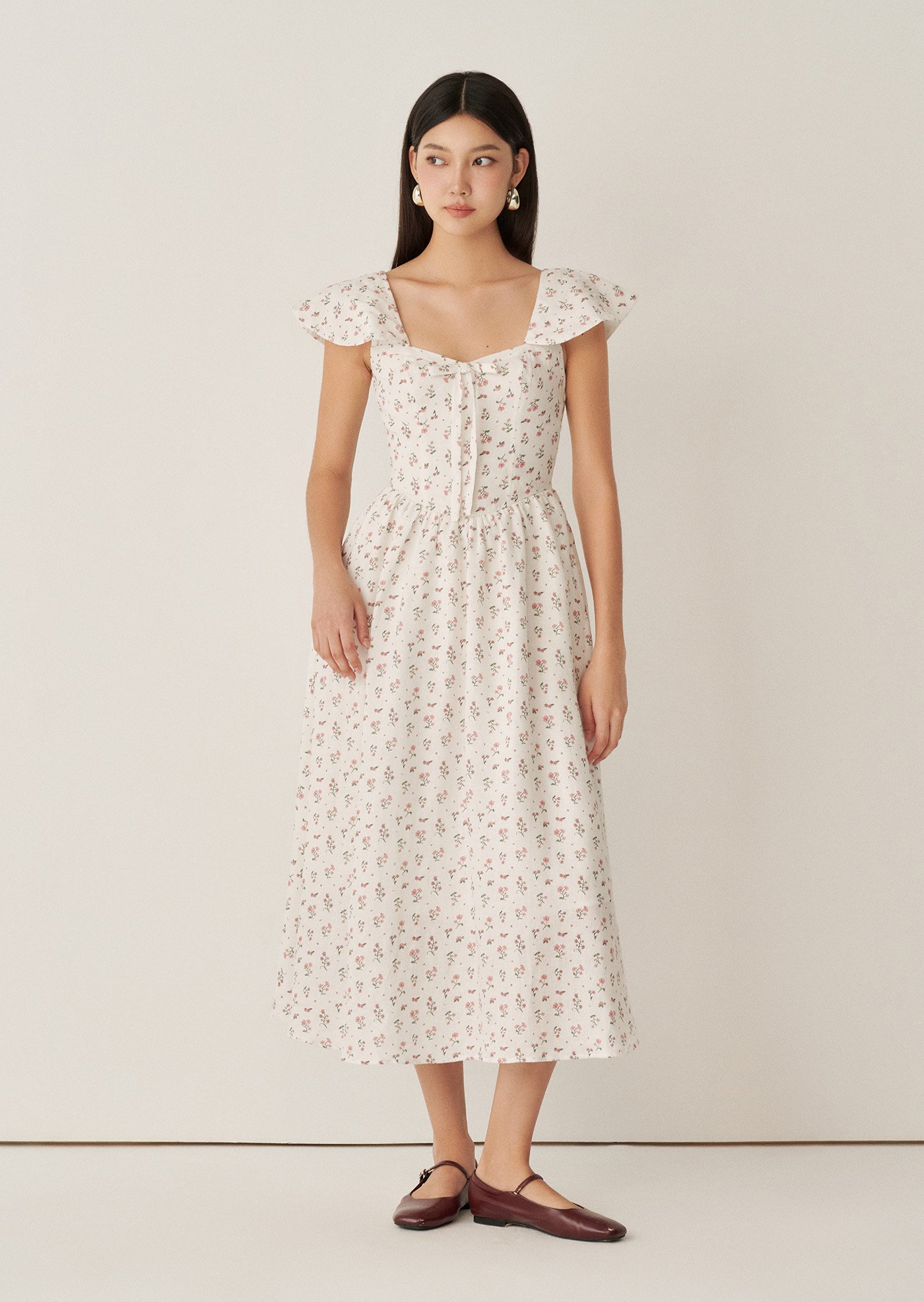 Aileen Midi Dress - Paperwhites In Bloom Sonata