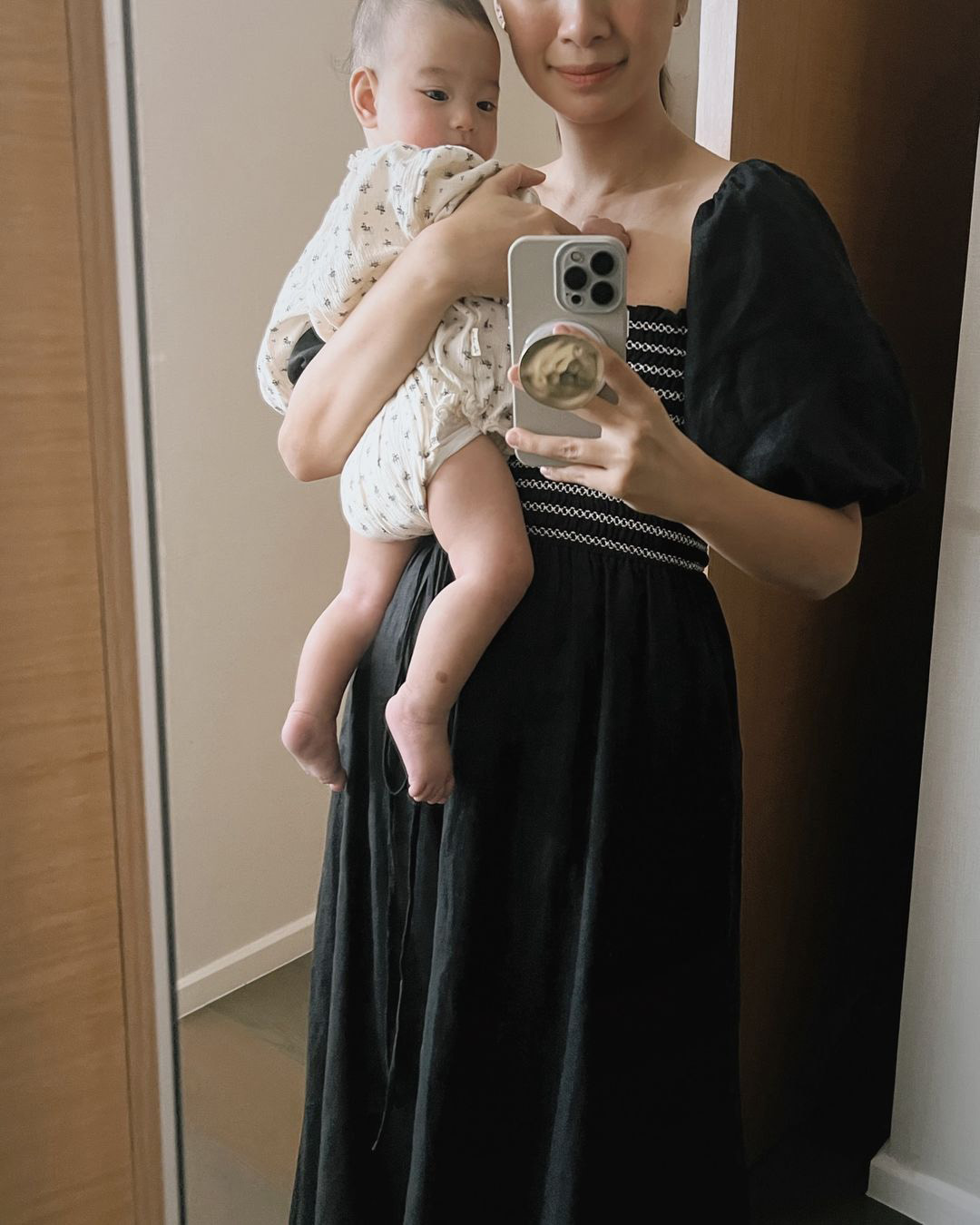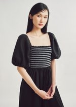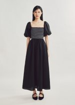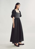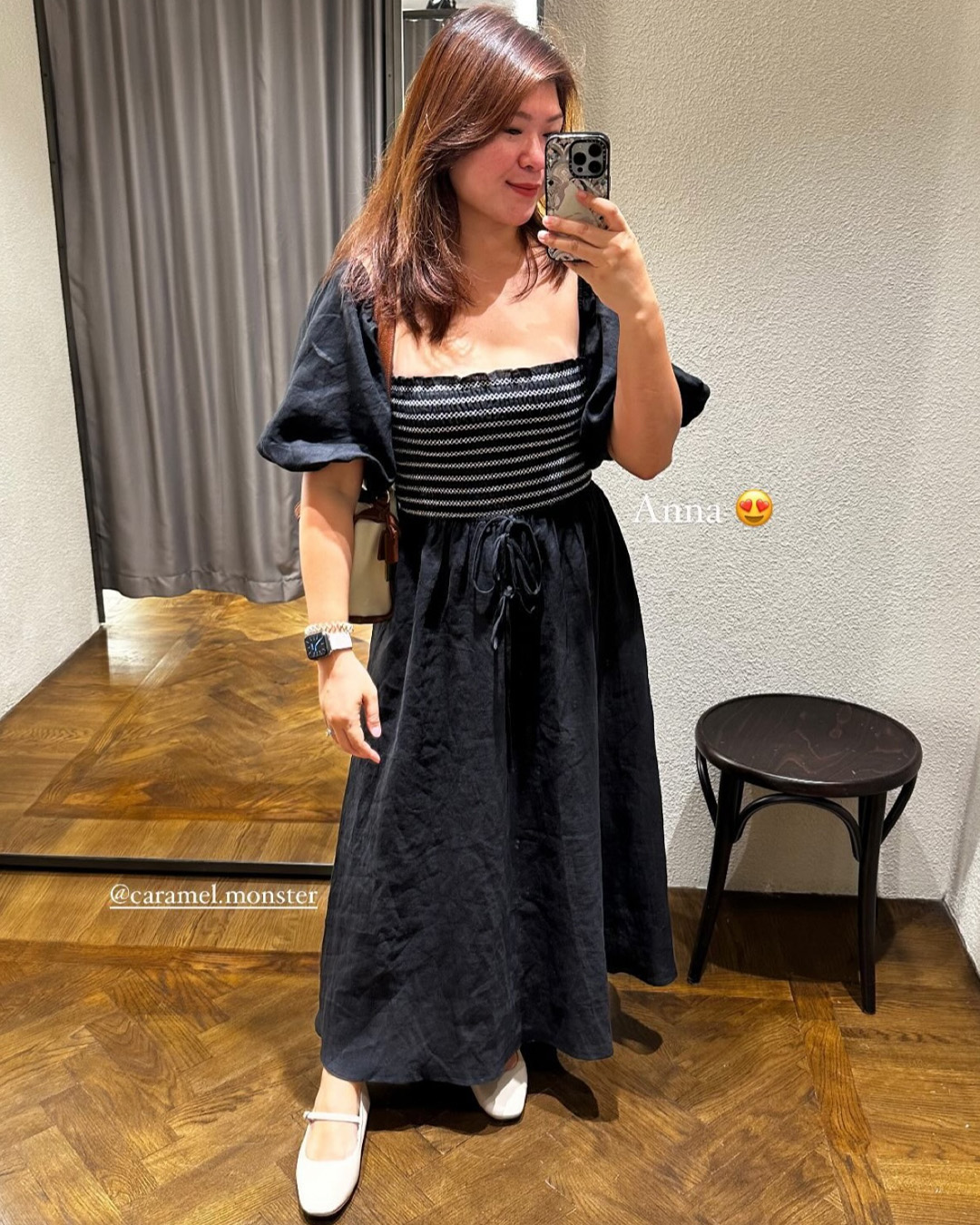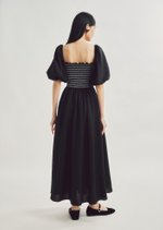 The Anna maxi features the puffed sleeves that we all love, along with a smocked bodice paired with a ribbon tie on the front waistline, creating a stylish and comfortable ensemble.