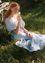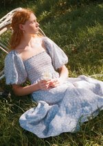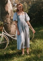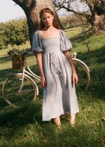 The Anna maxi features the puffed sleeves that we all love, along with a smocked bodice paired with a ribbon tie on the front waistline, creating a stylish and comfortable ensemble.