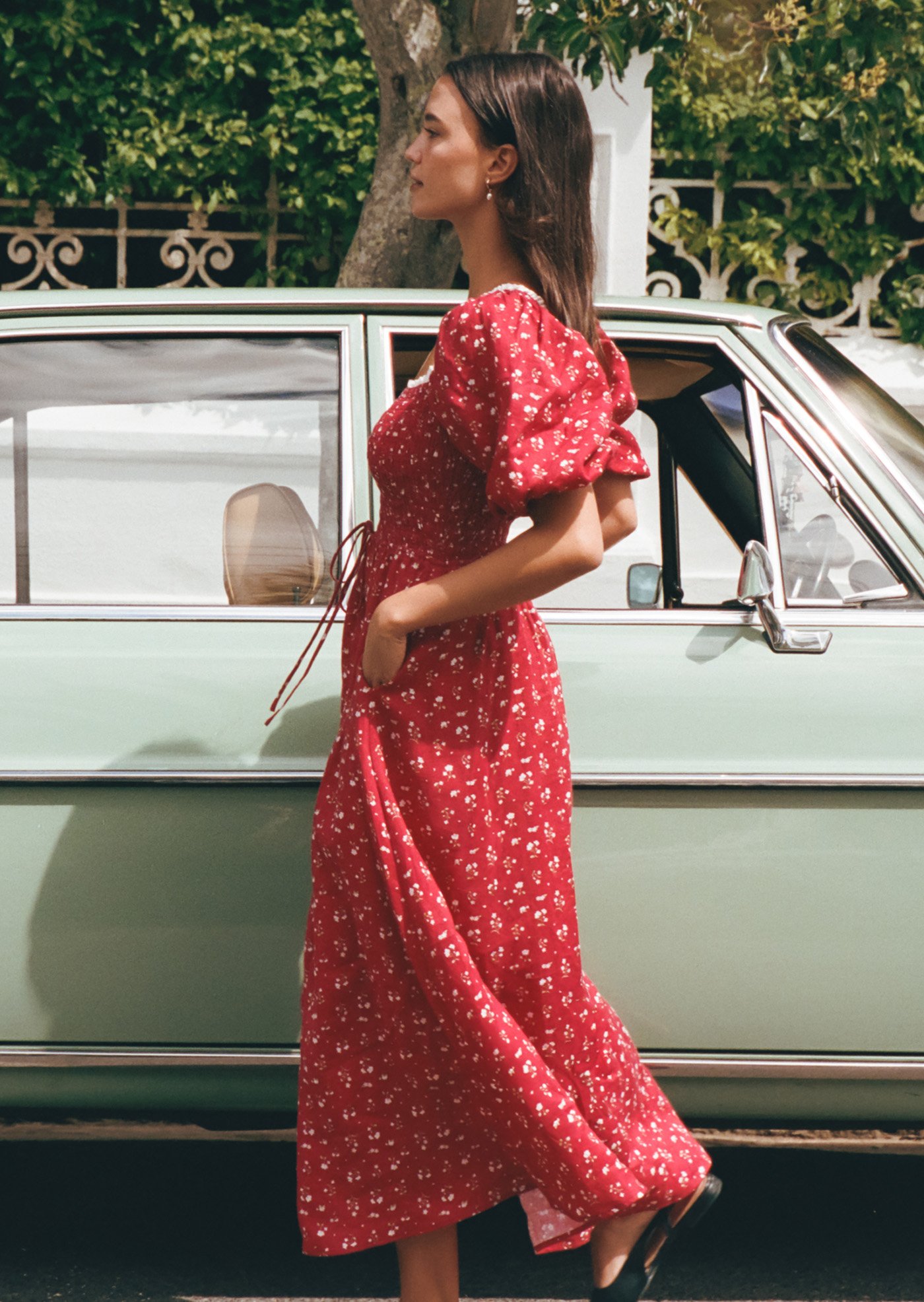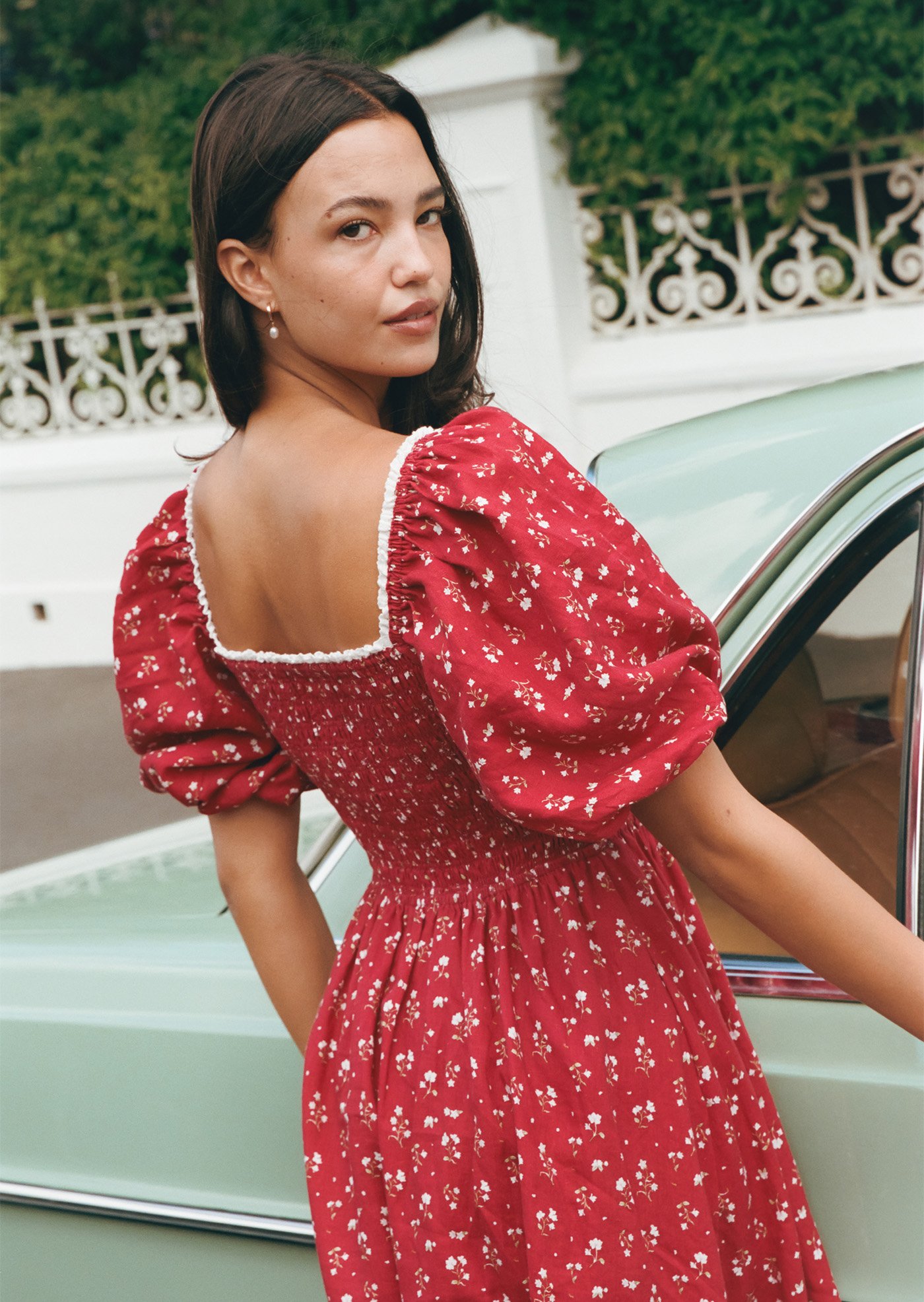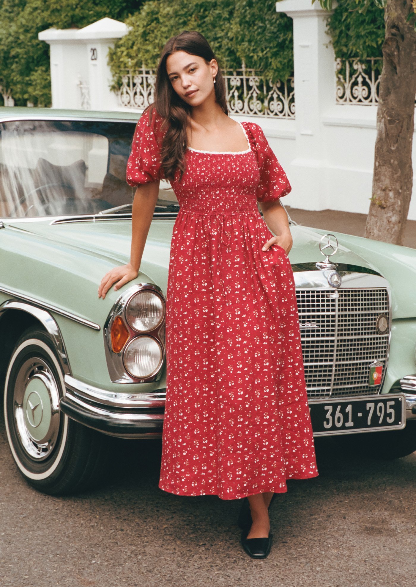 Anna Maxi Dress - Paperwhites In Chérie Rouge