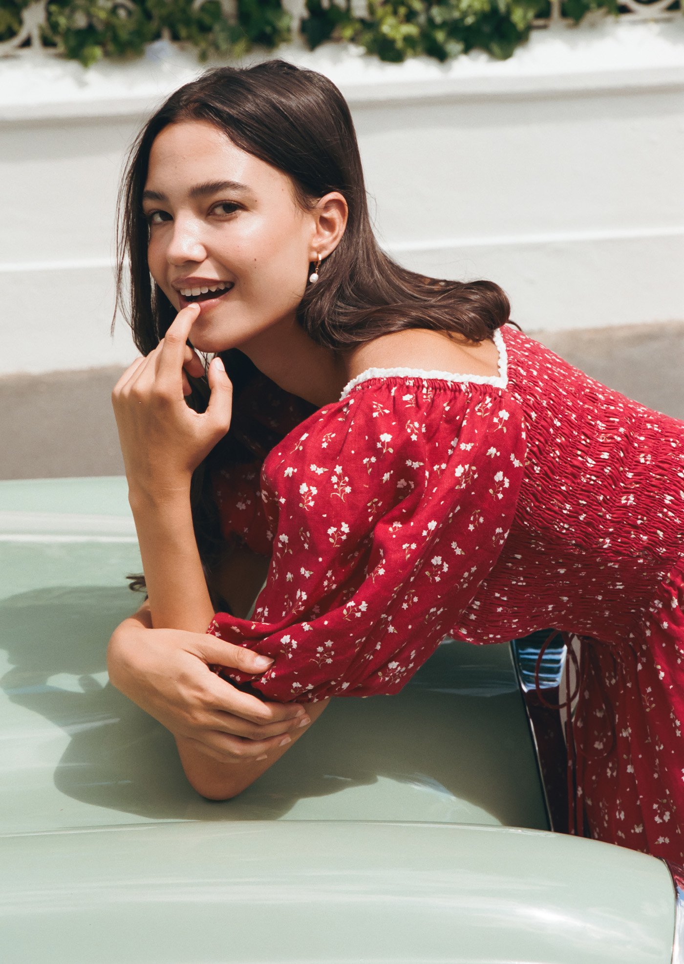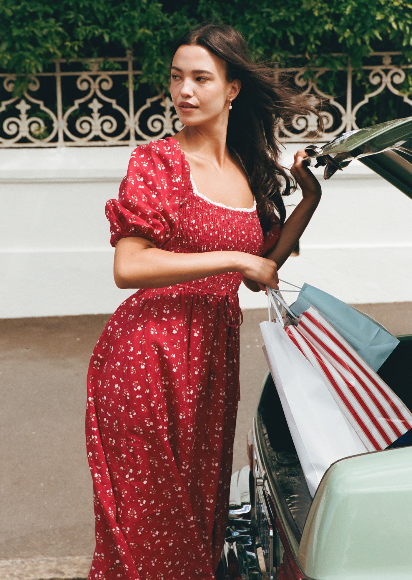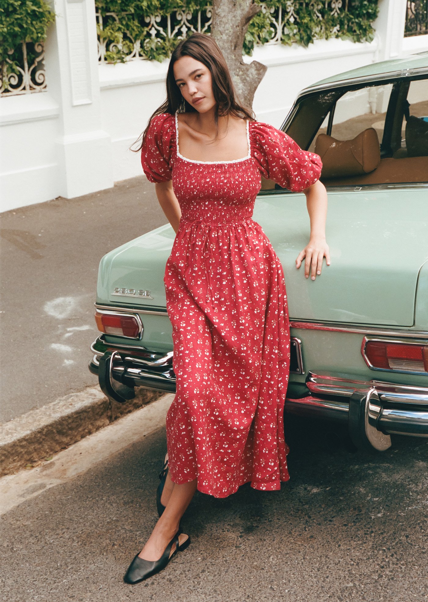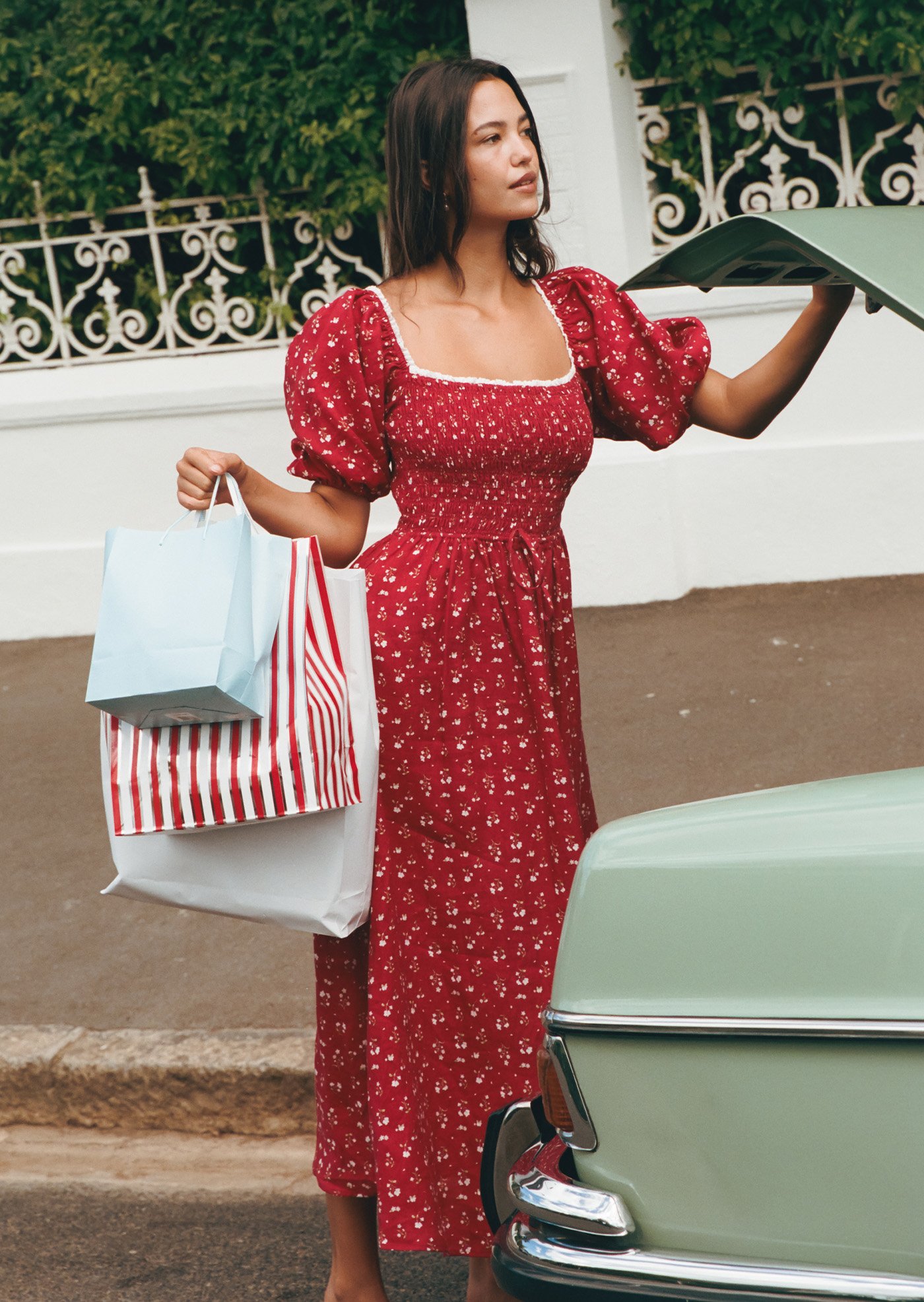 Anna Maxi Dress - Paperwhites In Chérie Rouge