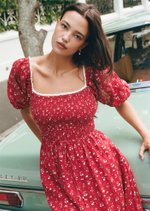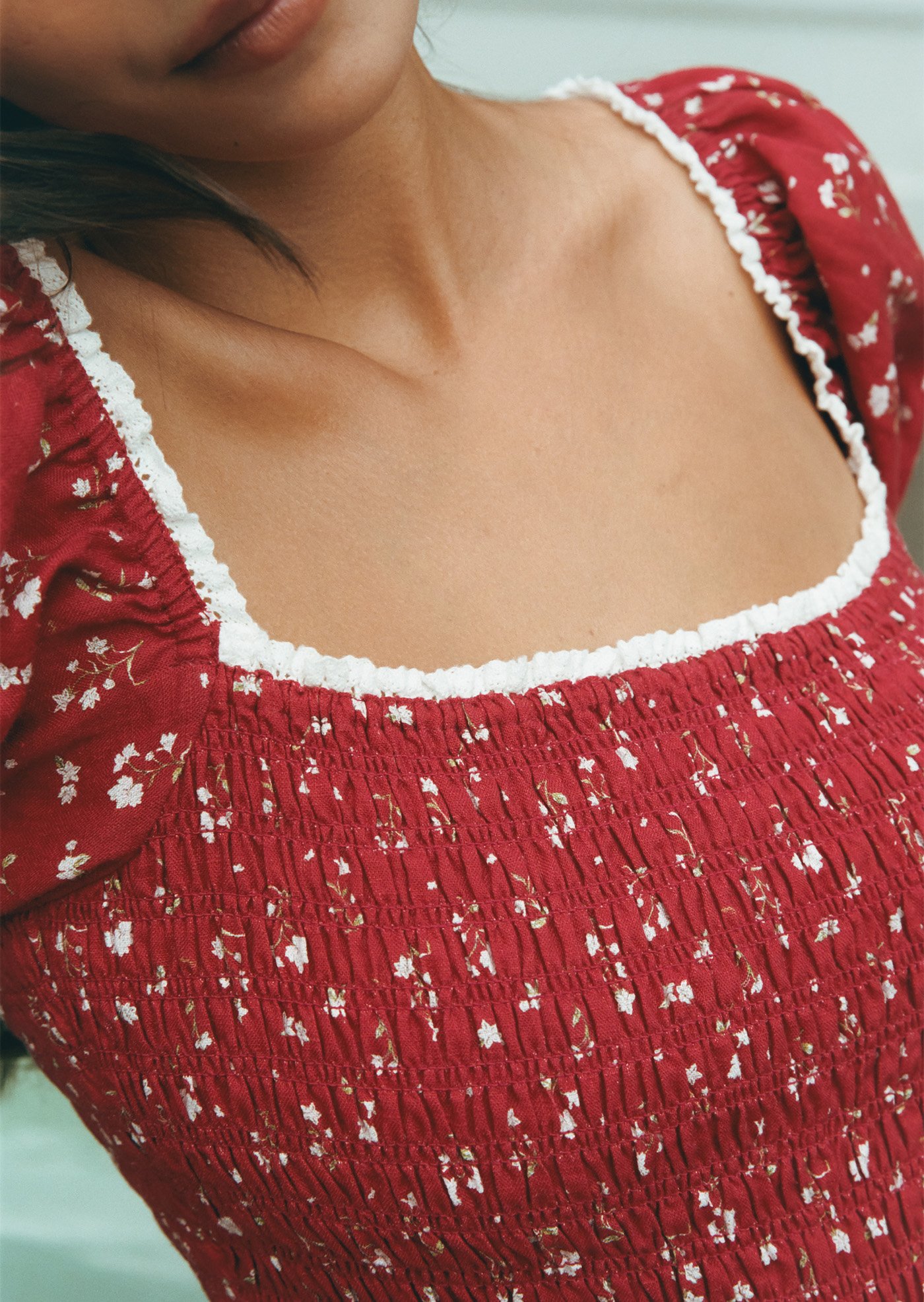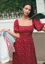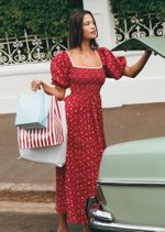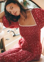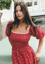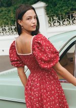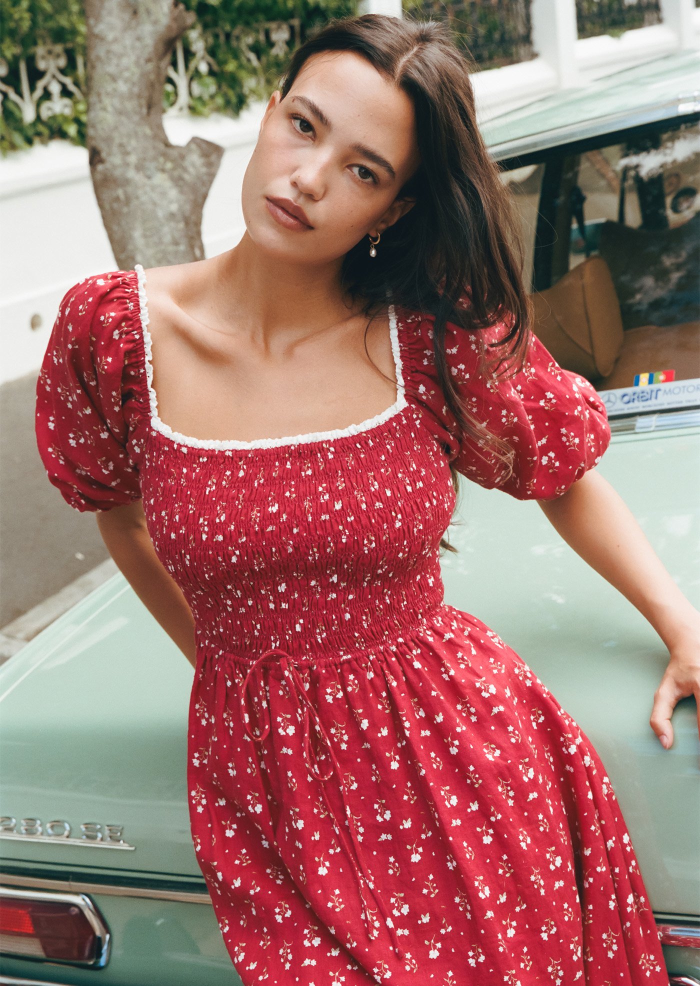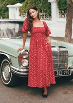 The Anna maxi features the puffed sleeves that we all love, along with a smocked bodice paired with a ribbon tie on the front waistline, creating a stylish and comfortable ensemble.