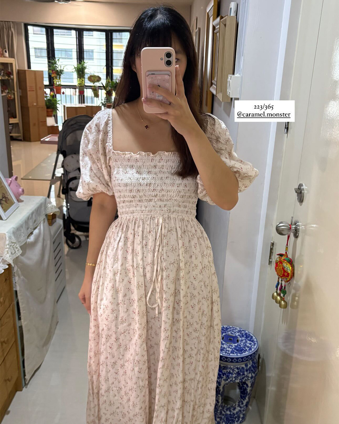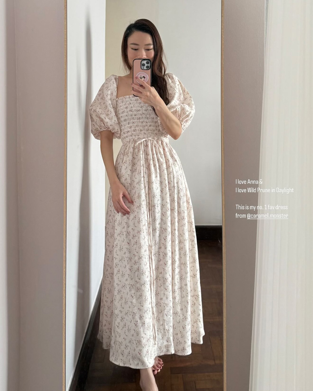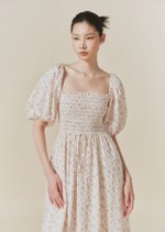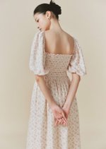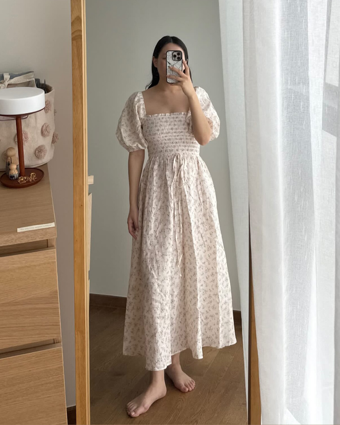 The Anna maxi features the puffed sleeves that we all love, along with a smocked bodice paired with a ribbon tie on the front waistline, creating a stylish and comfortable ensemble.