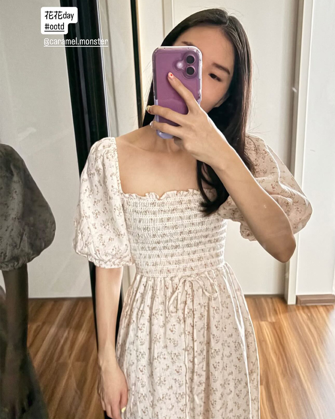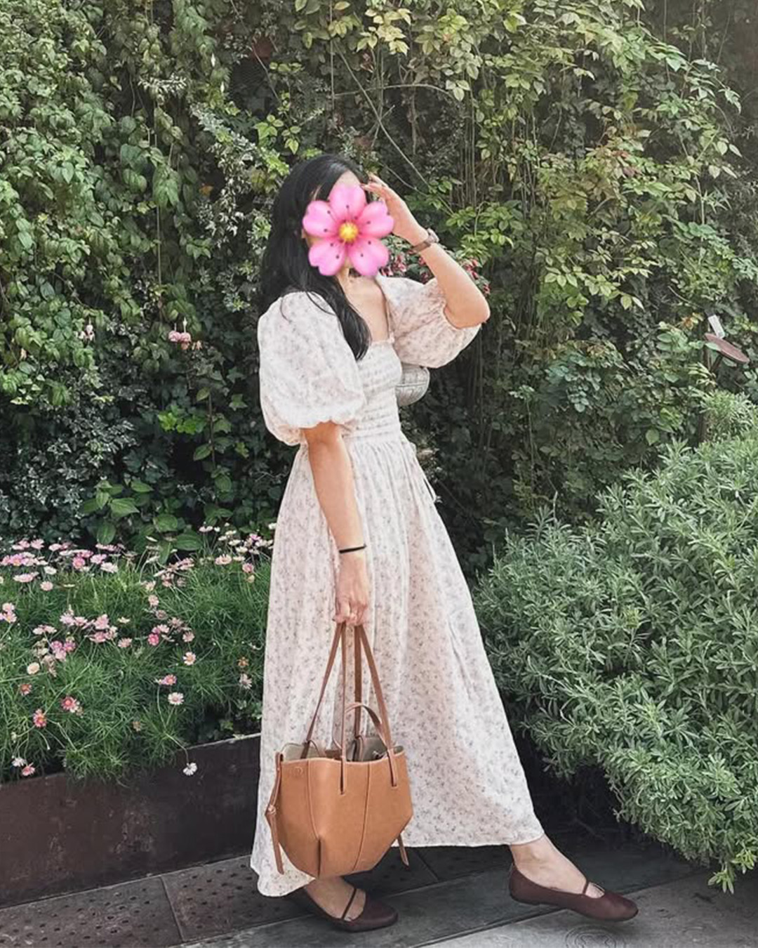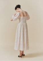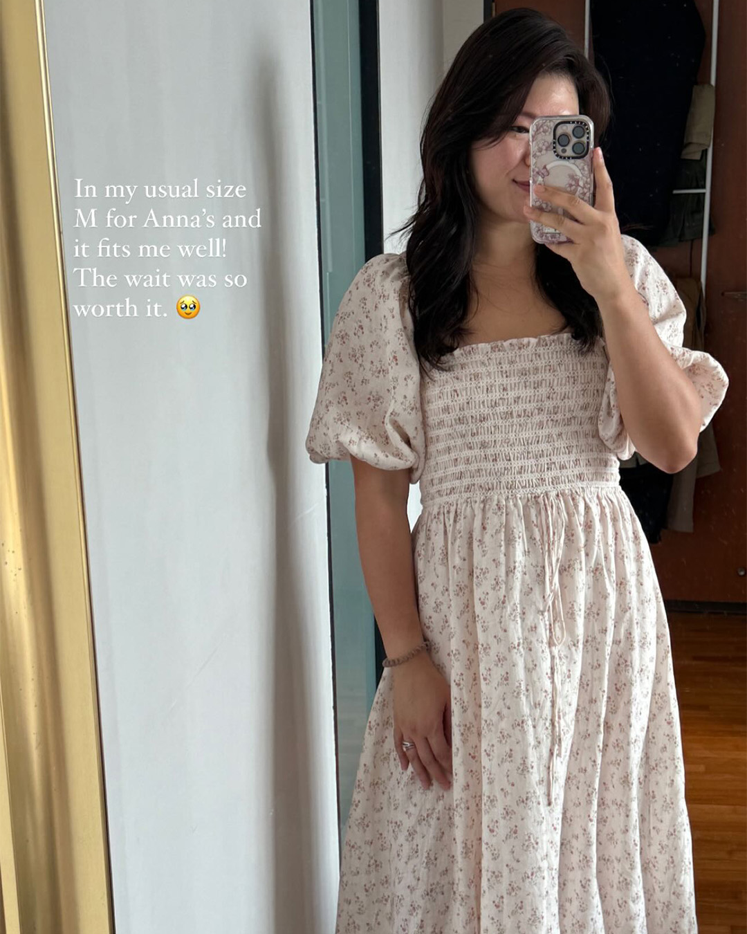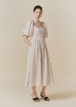 The Anna maxi features the puffed sleeves that we all love, along with a smocked bodice paired with a ribbon tie on the front waistline, creating a stylish and comfortable ensemble.