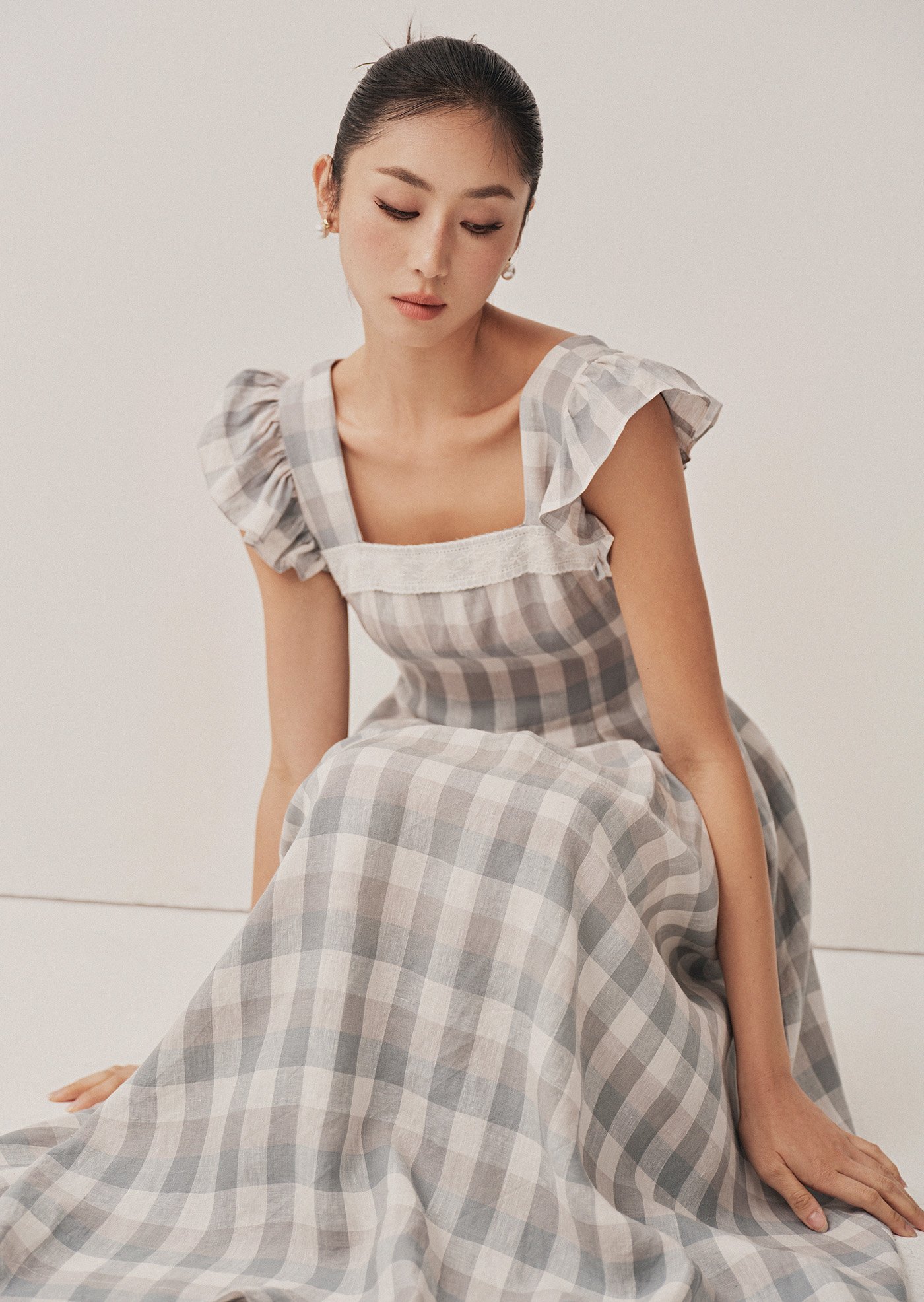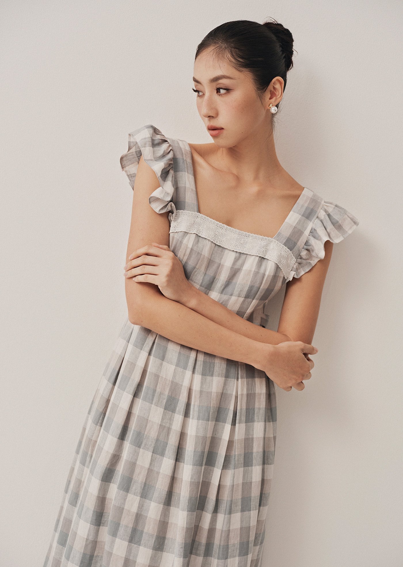 Augustine Maxi Dress - Dusty Turquoise Gingham