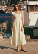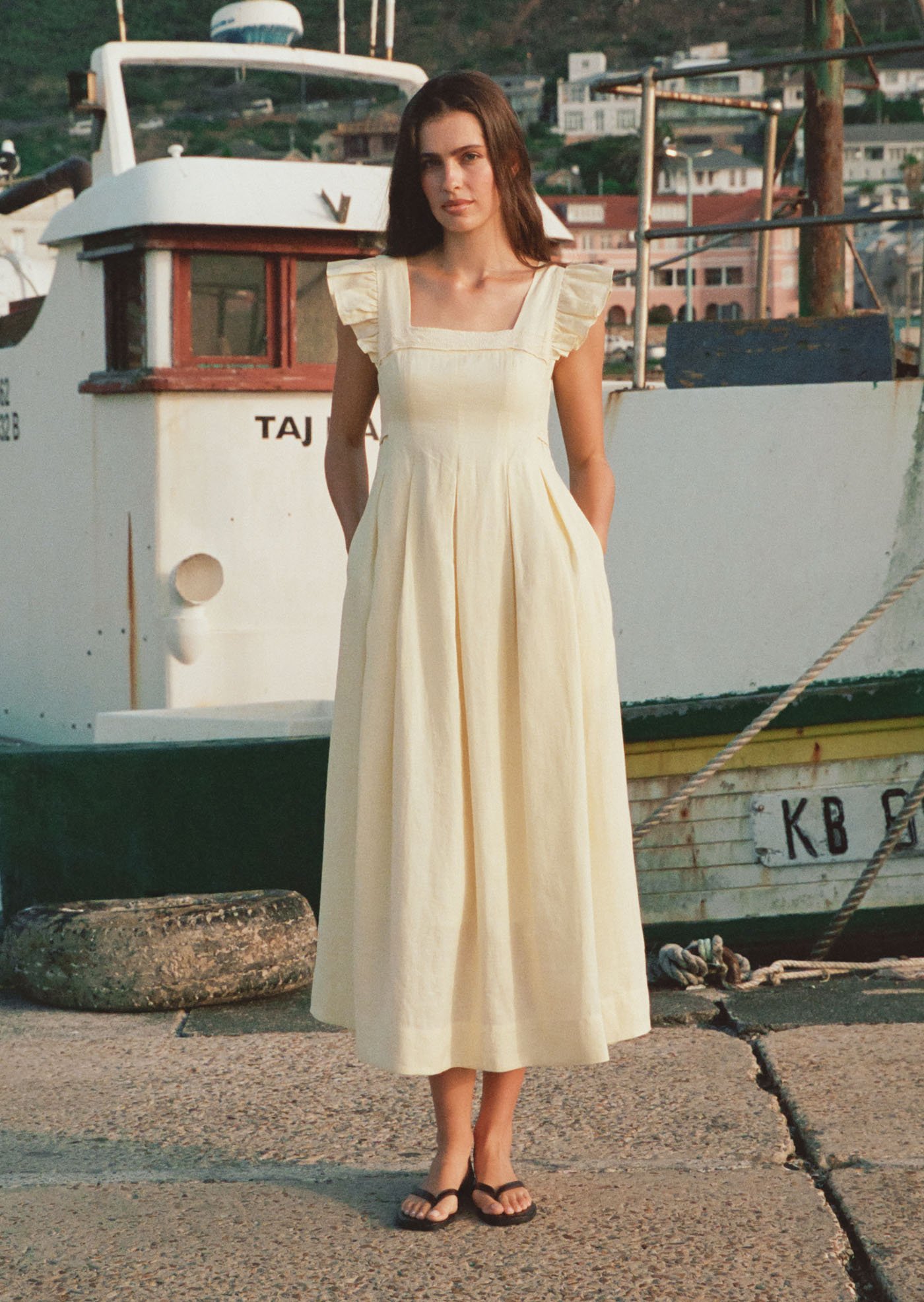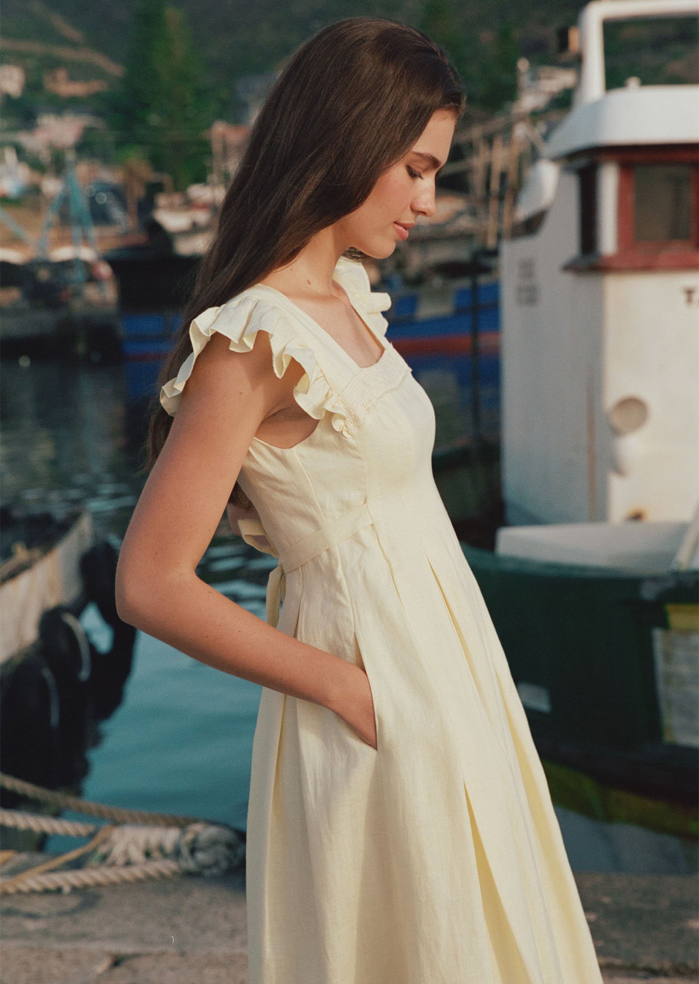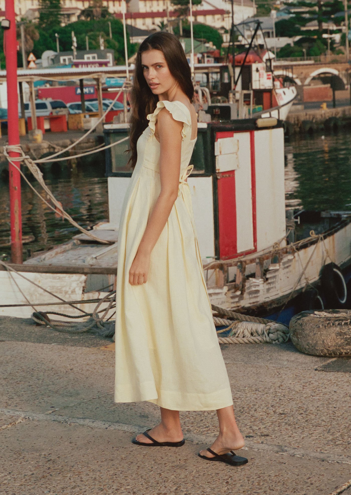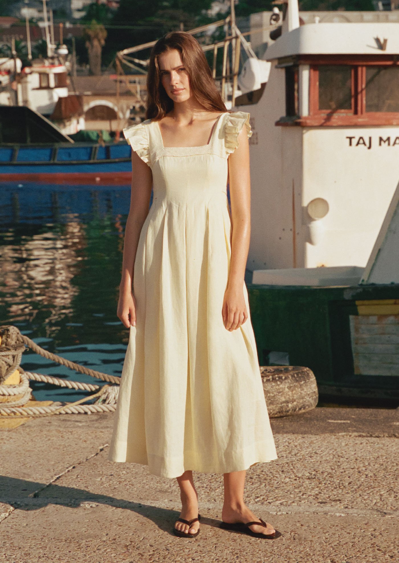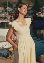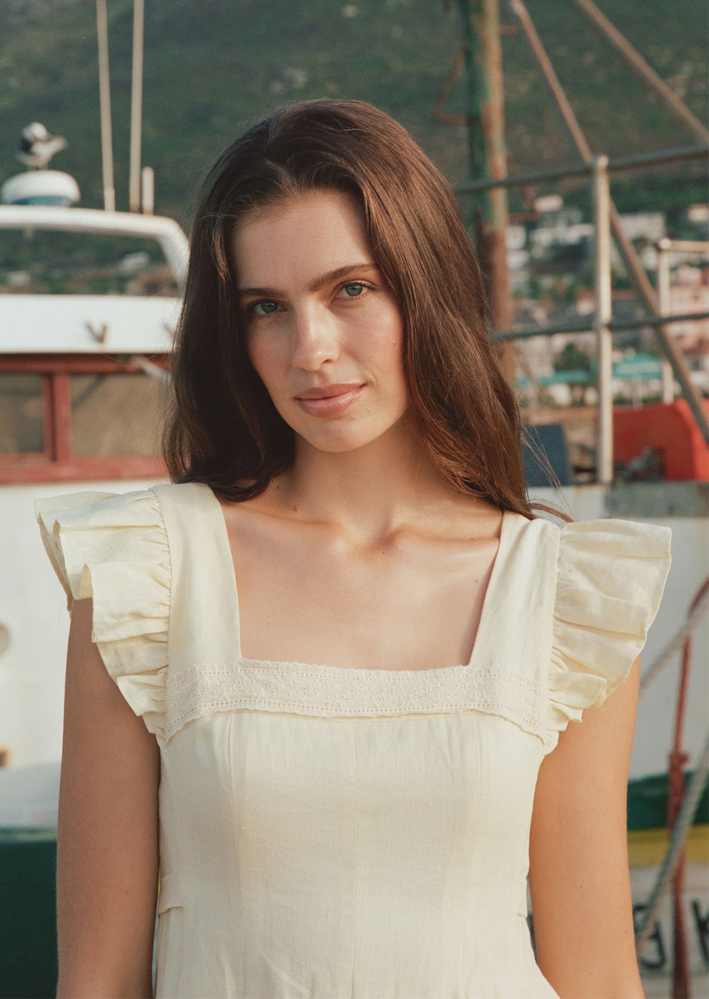 The Augustine Maxi Dress exudes timeless charm with its square neckline, ruffled sleeves, and elegant maxi length. Fully lined with a center back zipper, it’s the perfect blend of sophistication and grace.