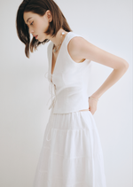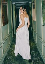 Size down if you are in between sizes for the Beverly Maxi Skirt.