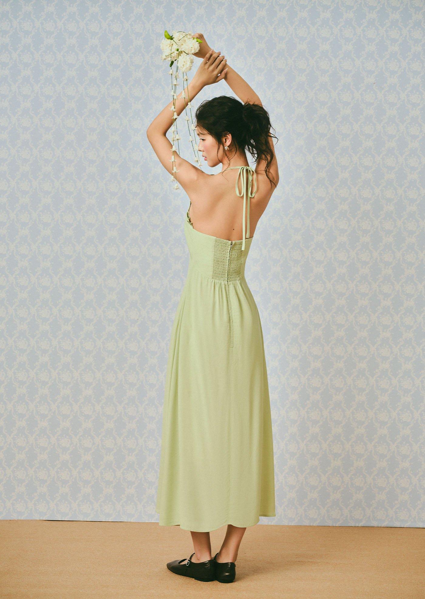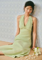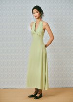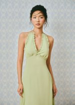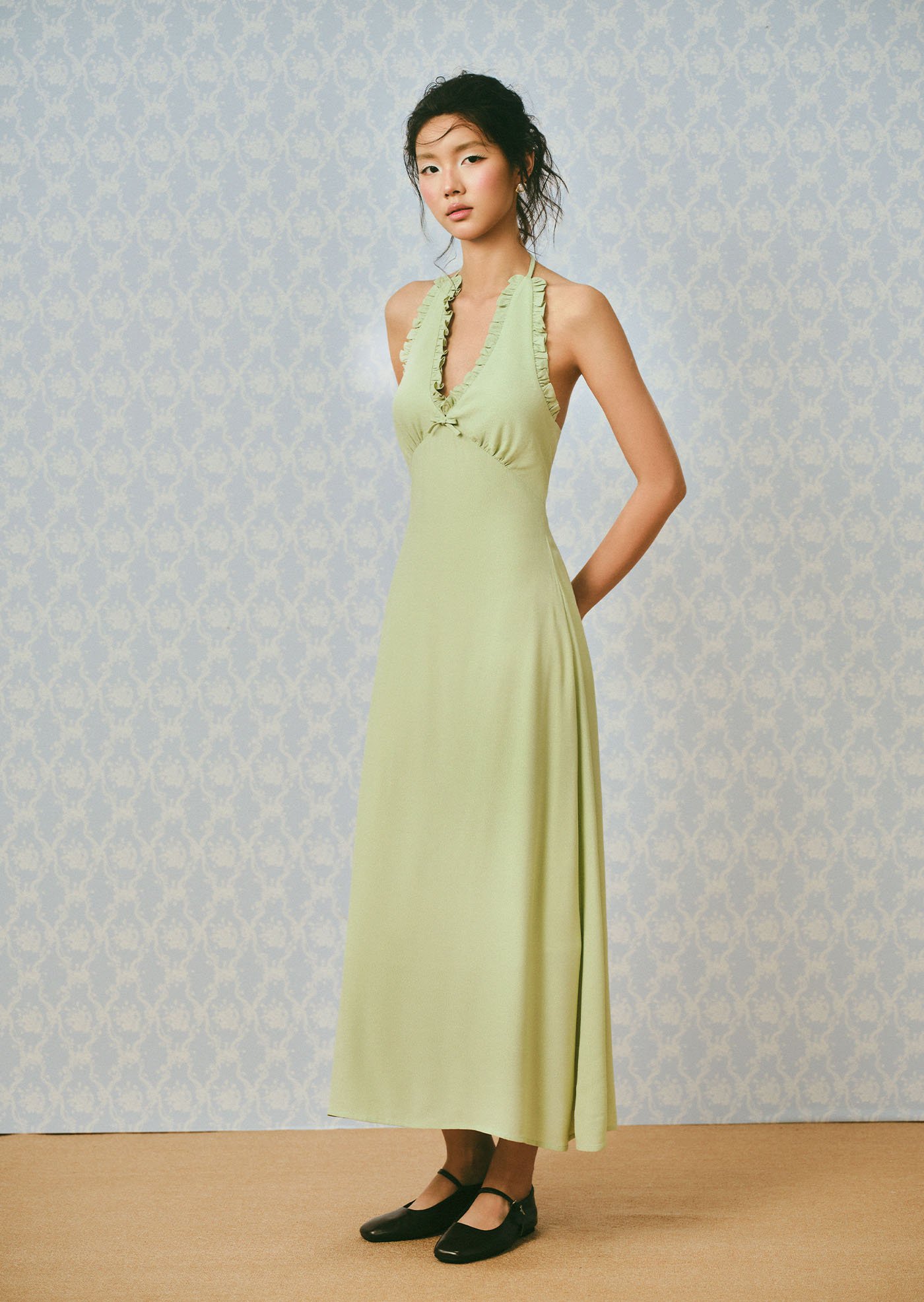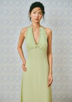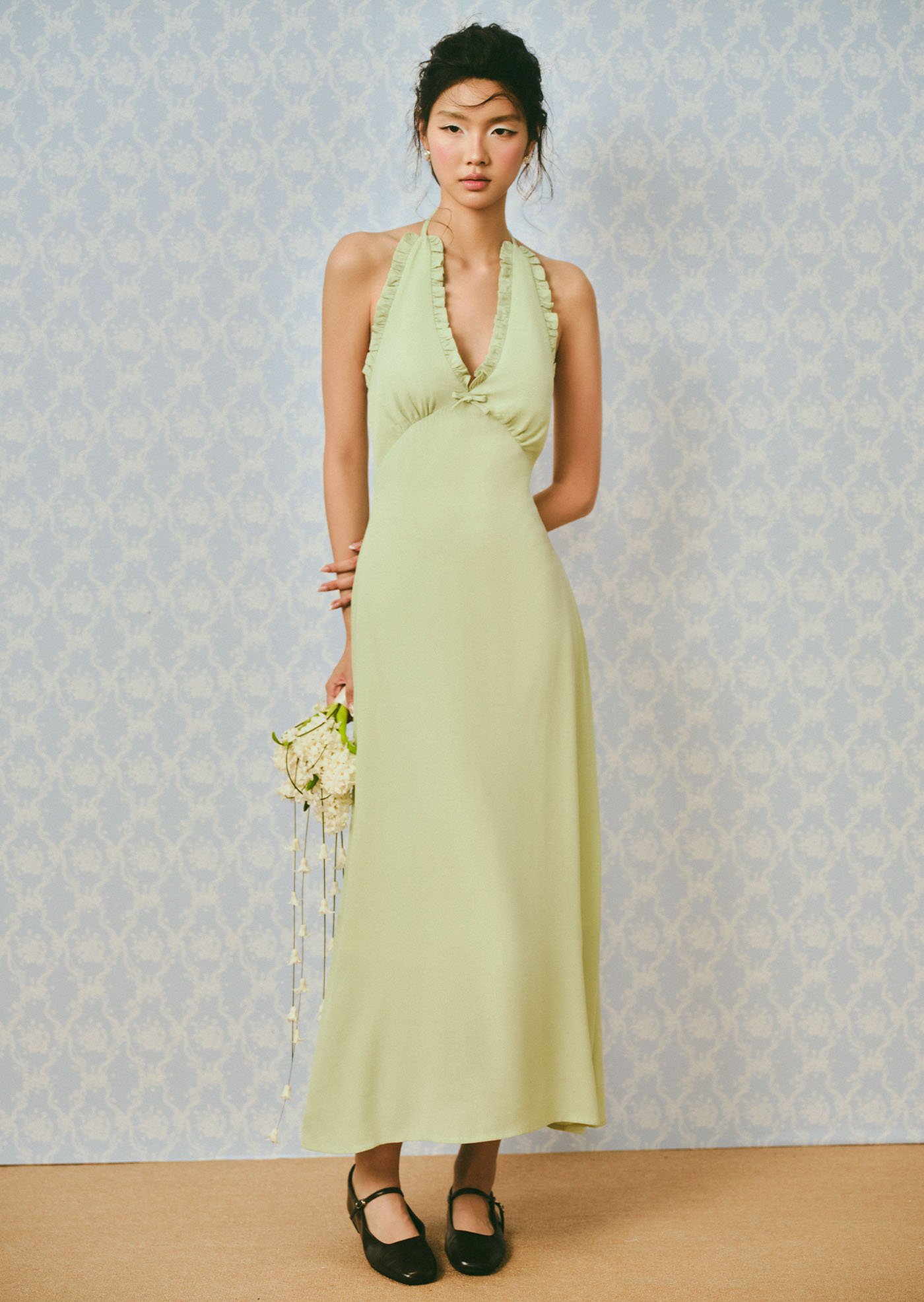 The Billie midaxi dress features a flattering V-neckline with tiny ruffles and a charming self-tie detail. Fully lined and elegantly flowing, this midaxi-length dress is perfect for adding a touch of grace to any occasion.