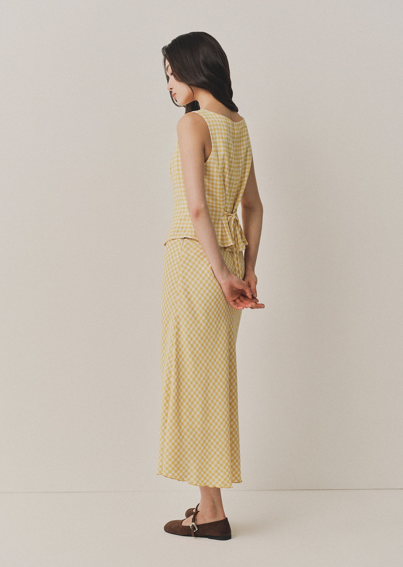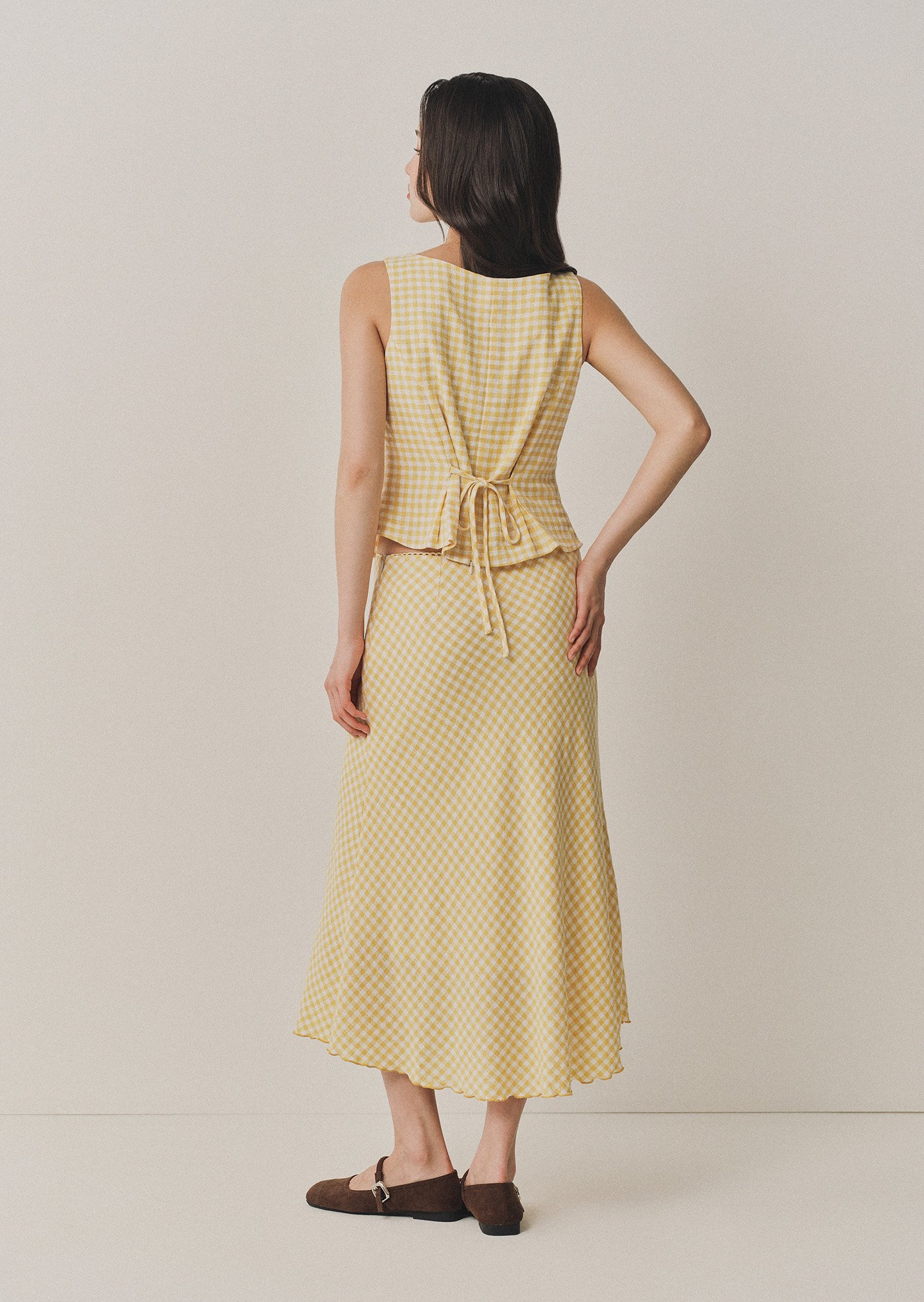 The Campanula Midi Skirt is sunshine in motion — a light, feminine silhouette that sways with every step. Cut on the bias for an elegant flow and crafted from soft cotton gingham, it’s a versatile piece that pairs beautifully with simple tops or matching sets for a timeless look.