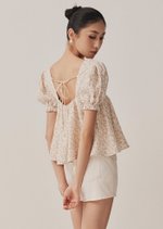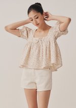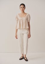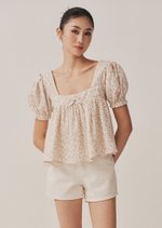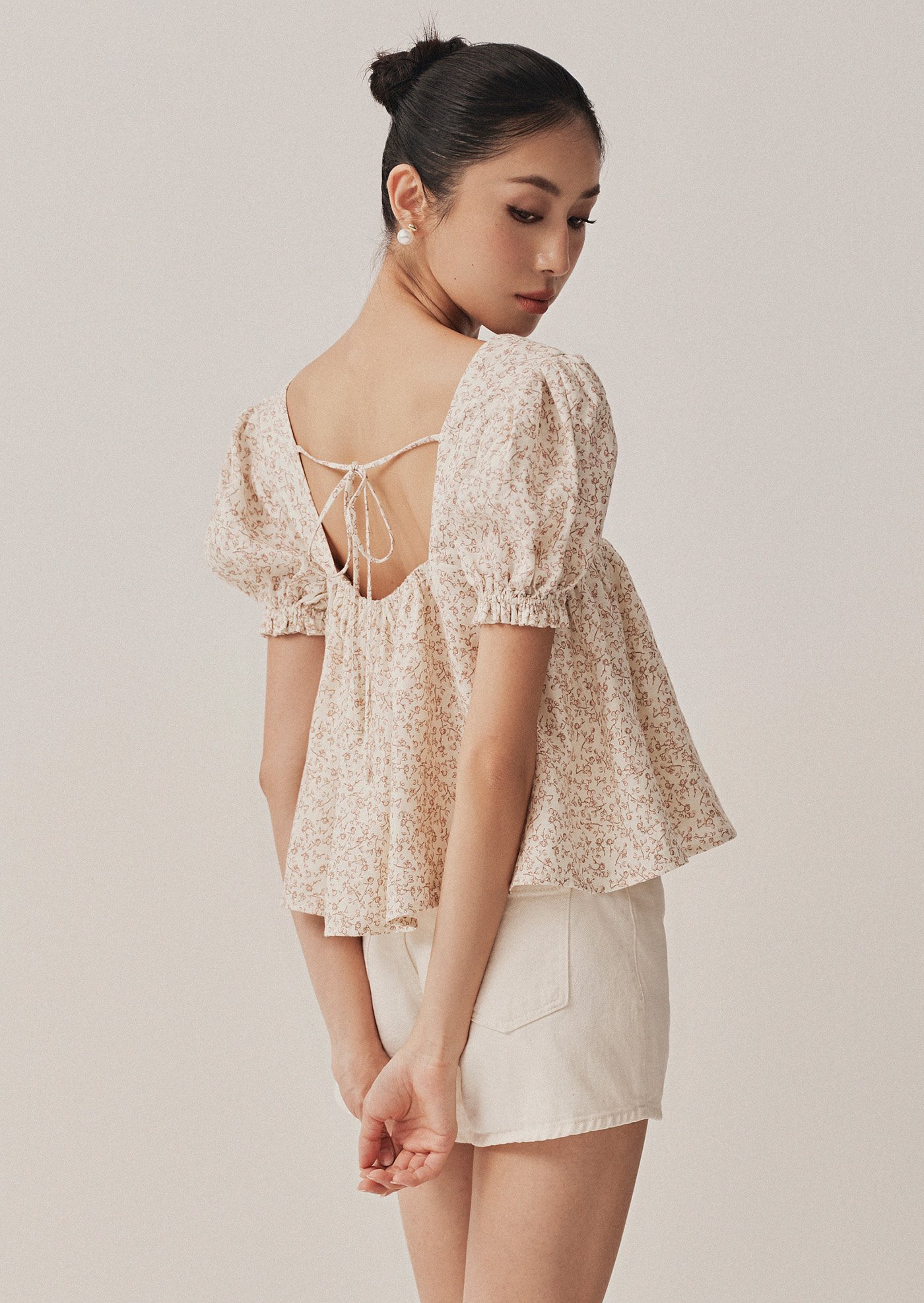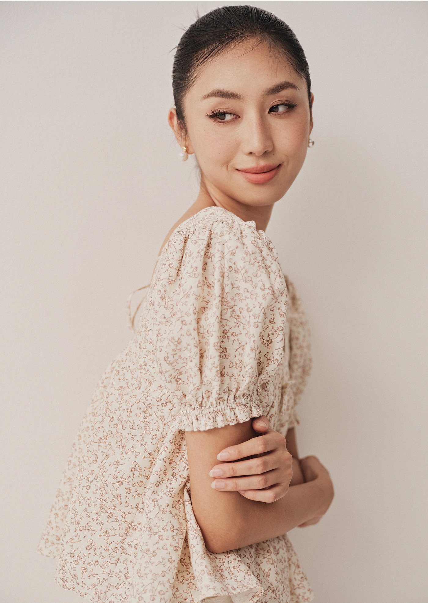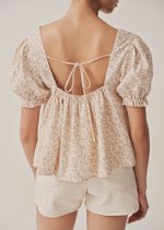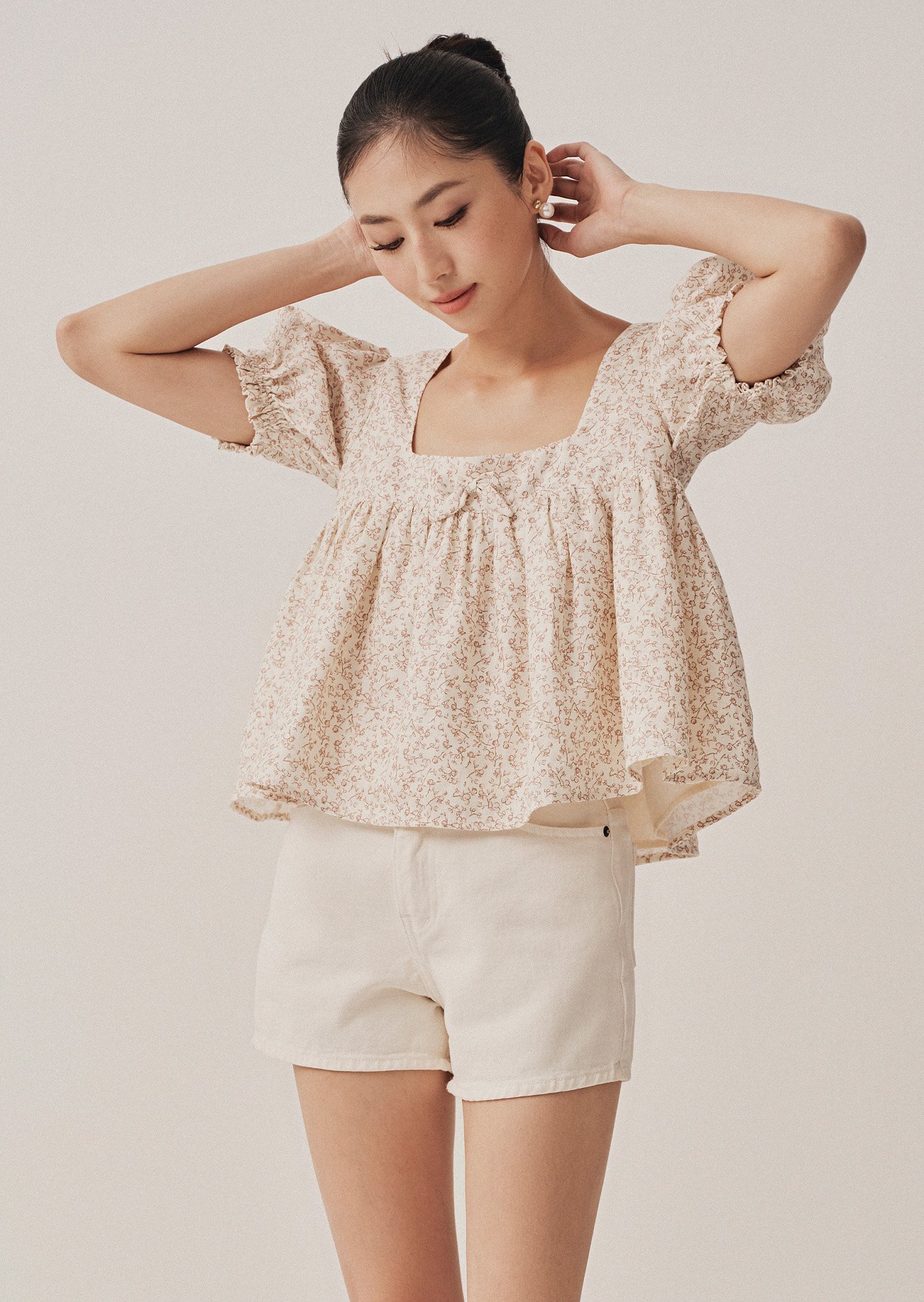 The Cassidy Top is a sweet silhouette with a soft square neckline, puff sleeves, and a relaxed, flowy body finished with a dainty front bow.