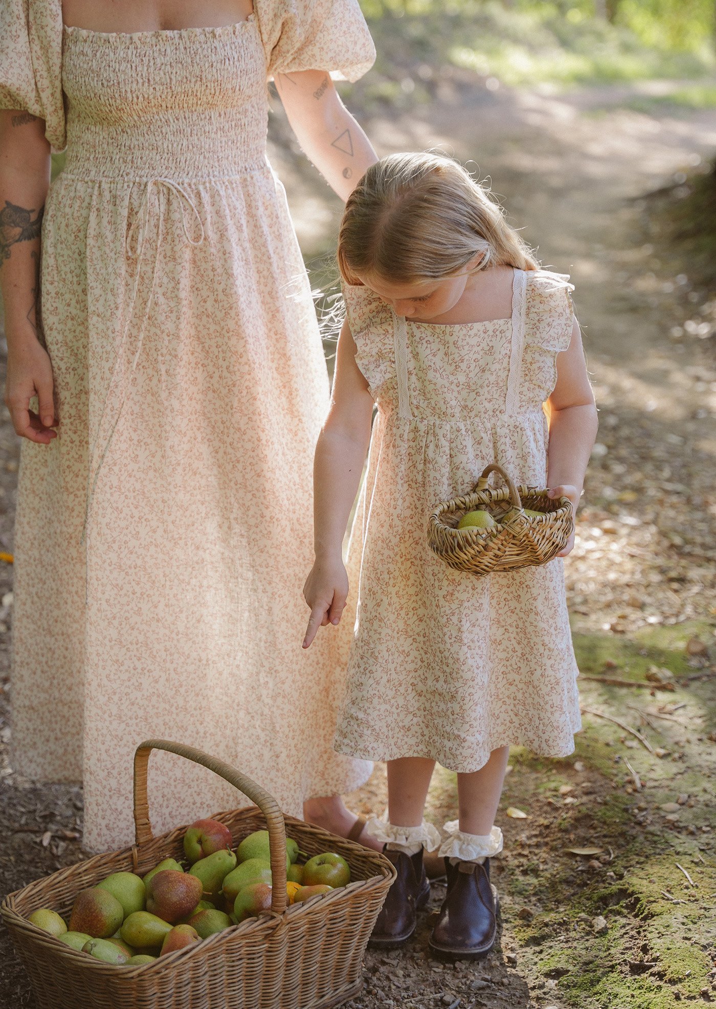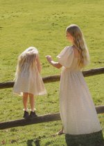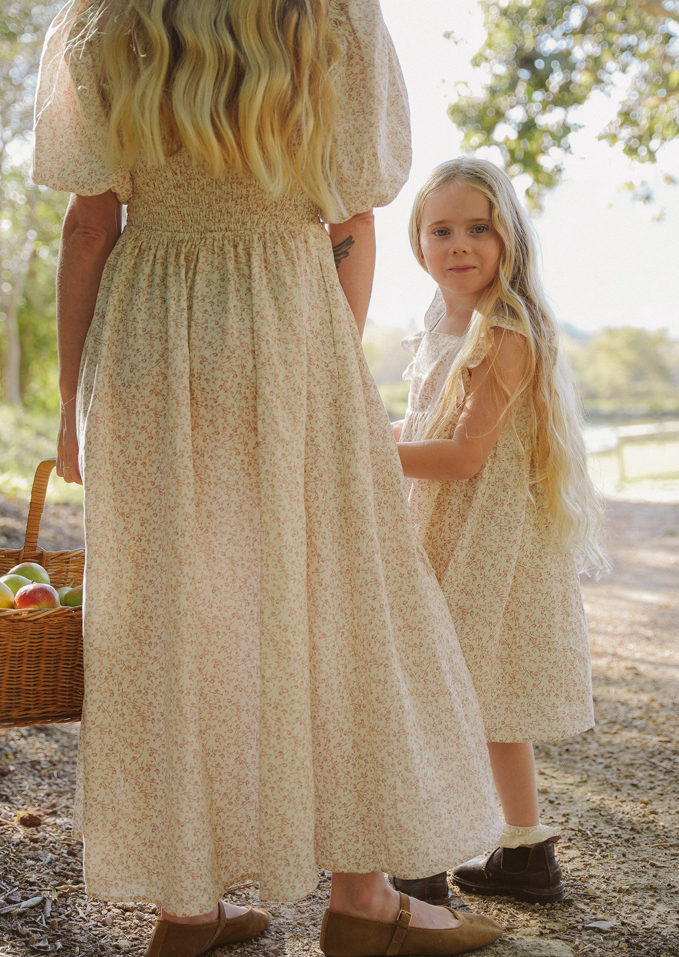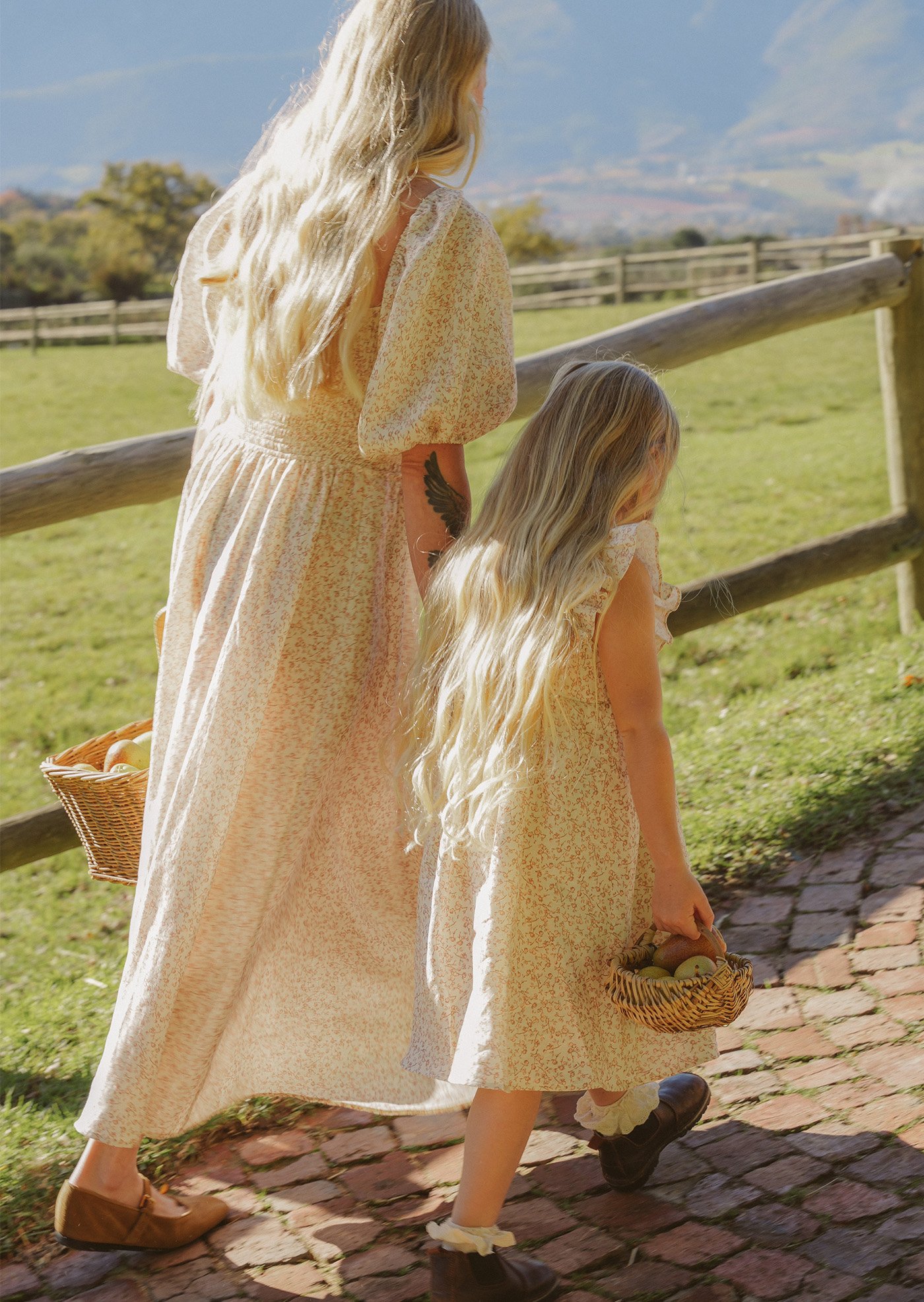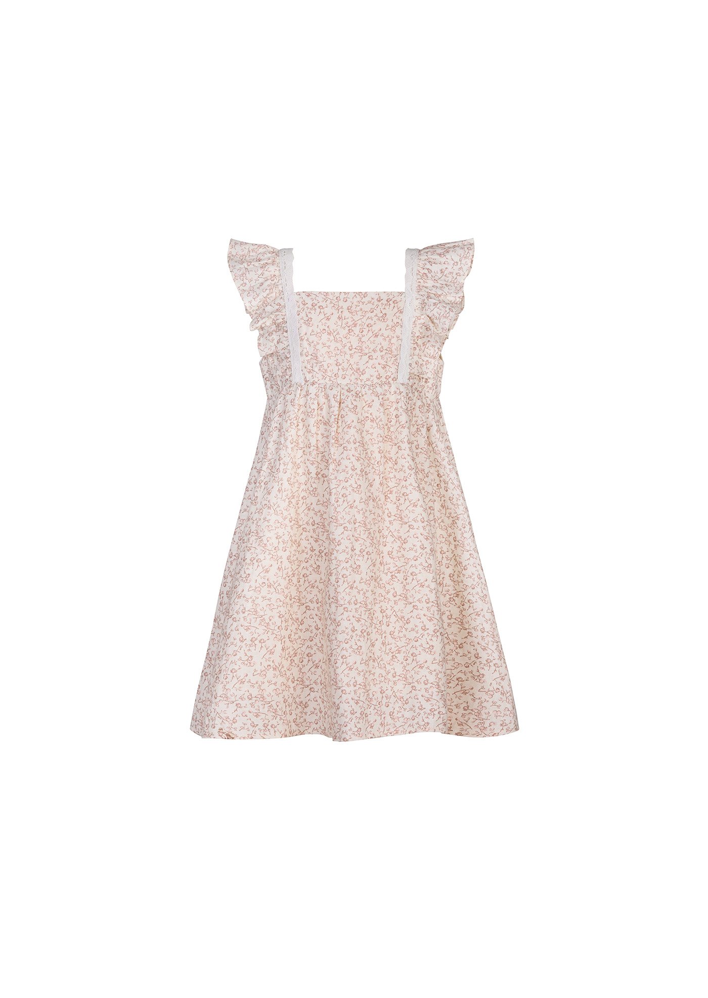 A sweet, twirl-friendly dress for sunny days and special moments. The Cherrie dress features soft ruffled straps, delicate lace detailing, and a gentle floral print — made for little ones who love to move, play, and dream in comfort.