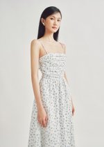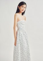 The Chloe is ruched on the bodice with a full skirt. It comes with removable and detachable spaghetti straps