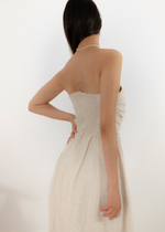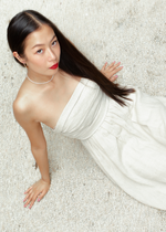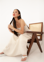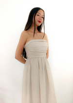 The Chloe is ruched on the bodice with a full skirt. It comes with removable and detachable spaghetti straps.