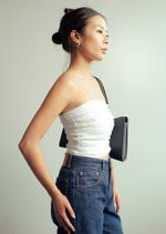 The Chloe top is ruched on the bodice and comes with removable and detachable spaghetti straps.