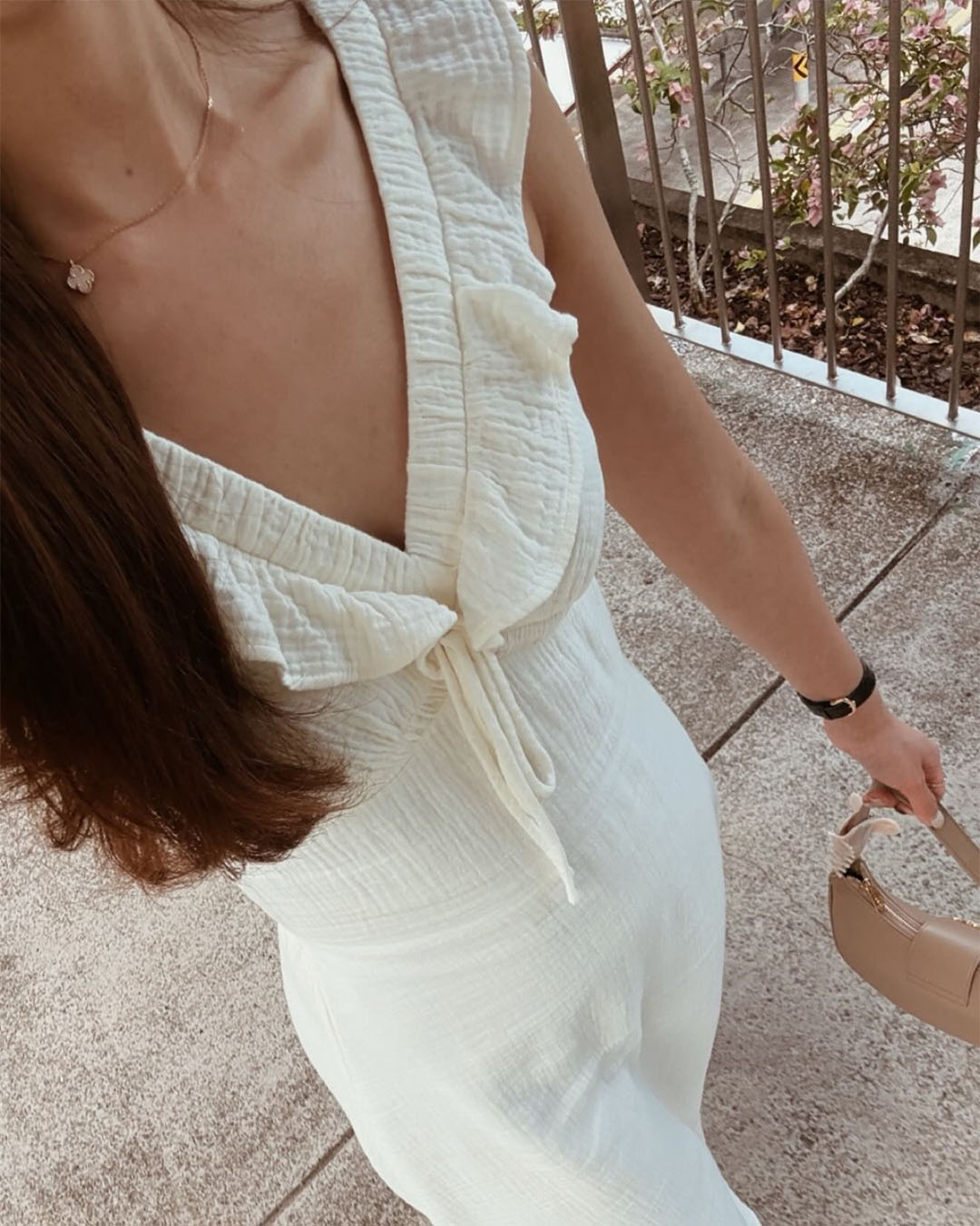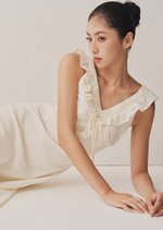 -V-neckline with ruffle trim and tie detail