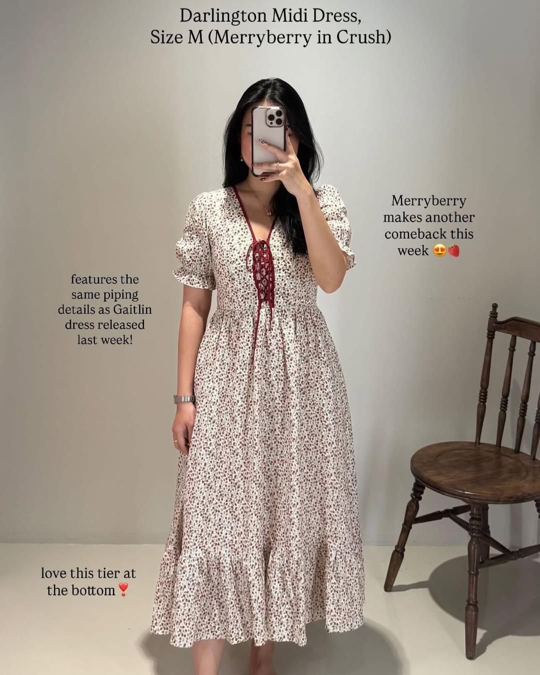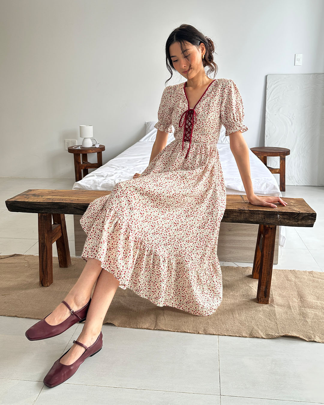 The Darlington Midi brings a cottage-core charm with its lace-up front, puff sleeves, and contrast-trimmed V neckline. Finished with a zip closure and full lining, it’s a romantic staple made for slow days and sun-drenched walks.