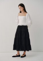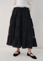 The Doechi Midaxi Skirt blends elegance and versatility with its flowing flounce silhouette and delicate lace trimming. Featuring a fully lined design and adjustable waistband, this maxi-length skirt offers both comfort and effortless charm for any occasion.