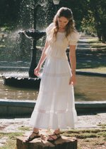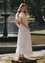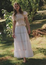 The Doechi Midaxi Skirt blends elegance and versatility with its flowing flounce silhouette and delicate lace trimming. Featuring a fully lined design and adjustable waistband, this maxi-length skirt offers both comfort and effortless charm for any occasion.
