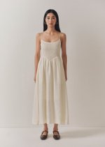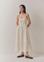 The Doris Midaxi Dress combines the effortless charm with everyday practicality, featuring a smocked bodice, scoop neckline, and a flattering midaxi length. Complete with pockets and a fully lined design, it’s perfect for any occasion from casual outings to elevated gatherings.