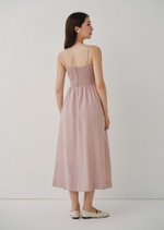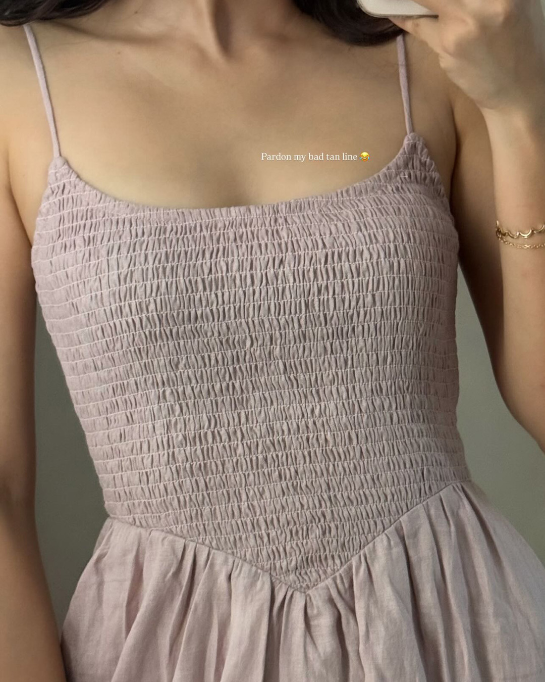 The Doris Midaxi Dress combines the effortless charm with everyday practicality, featuring a smocked bodice, scoop neckline, and a flattering midaxi length. Complete with pockets and a fully lined design, it’s perfect for any occasion from casual outings to elevated gatherings.