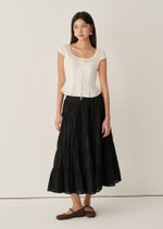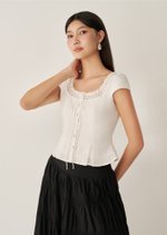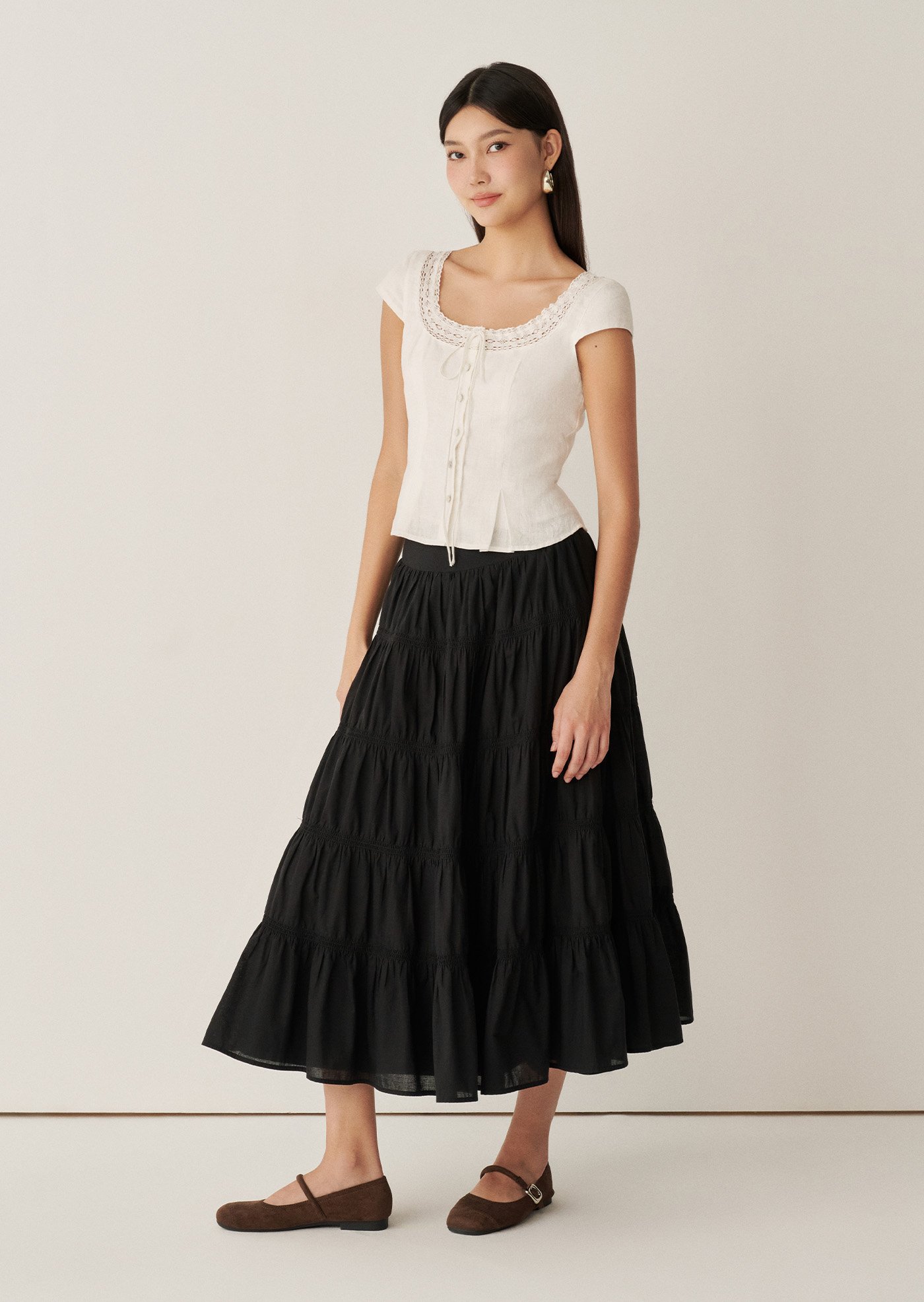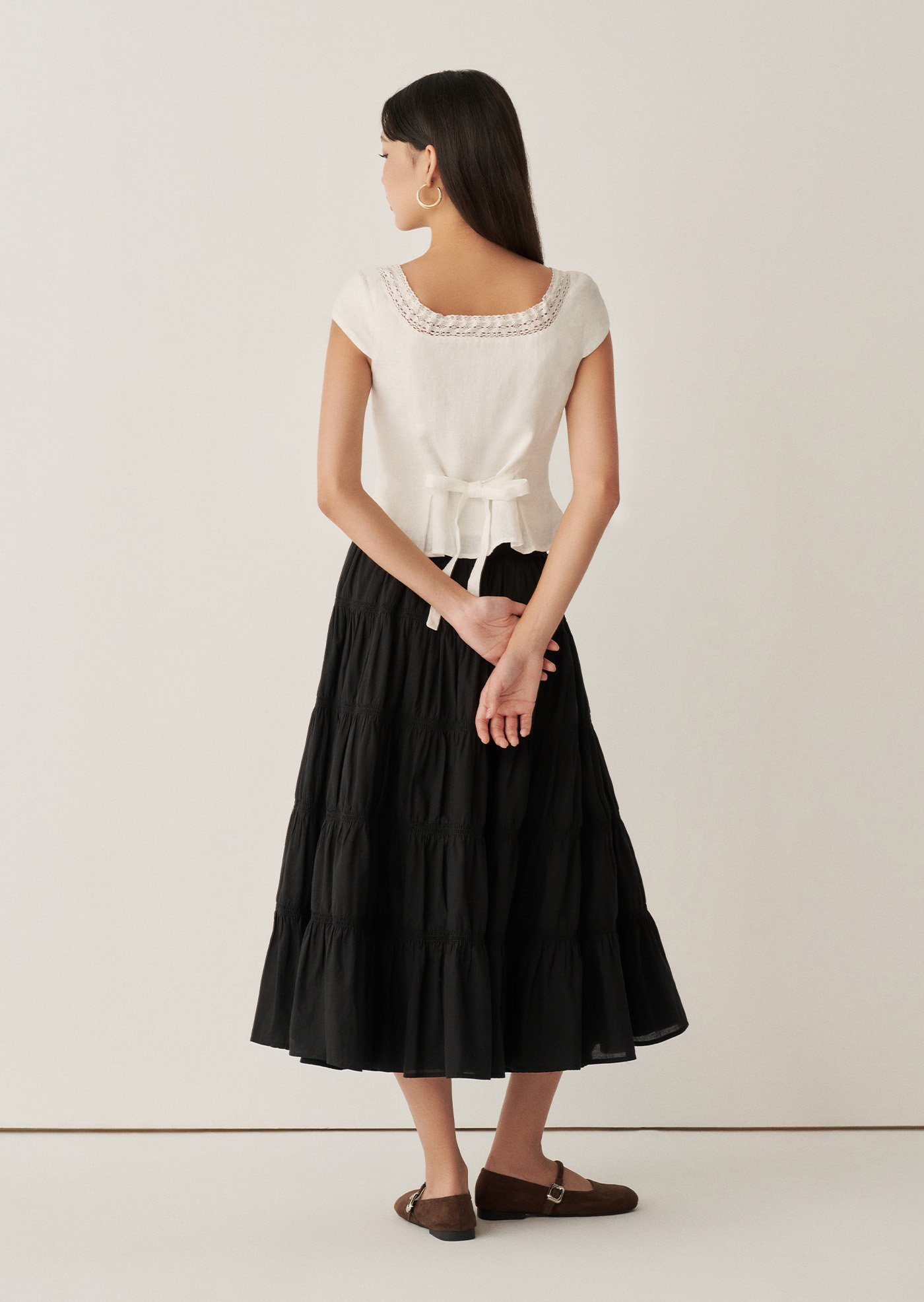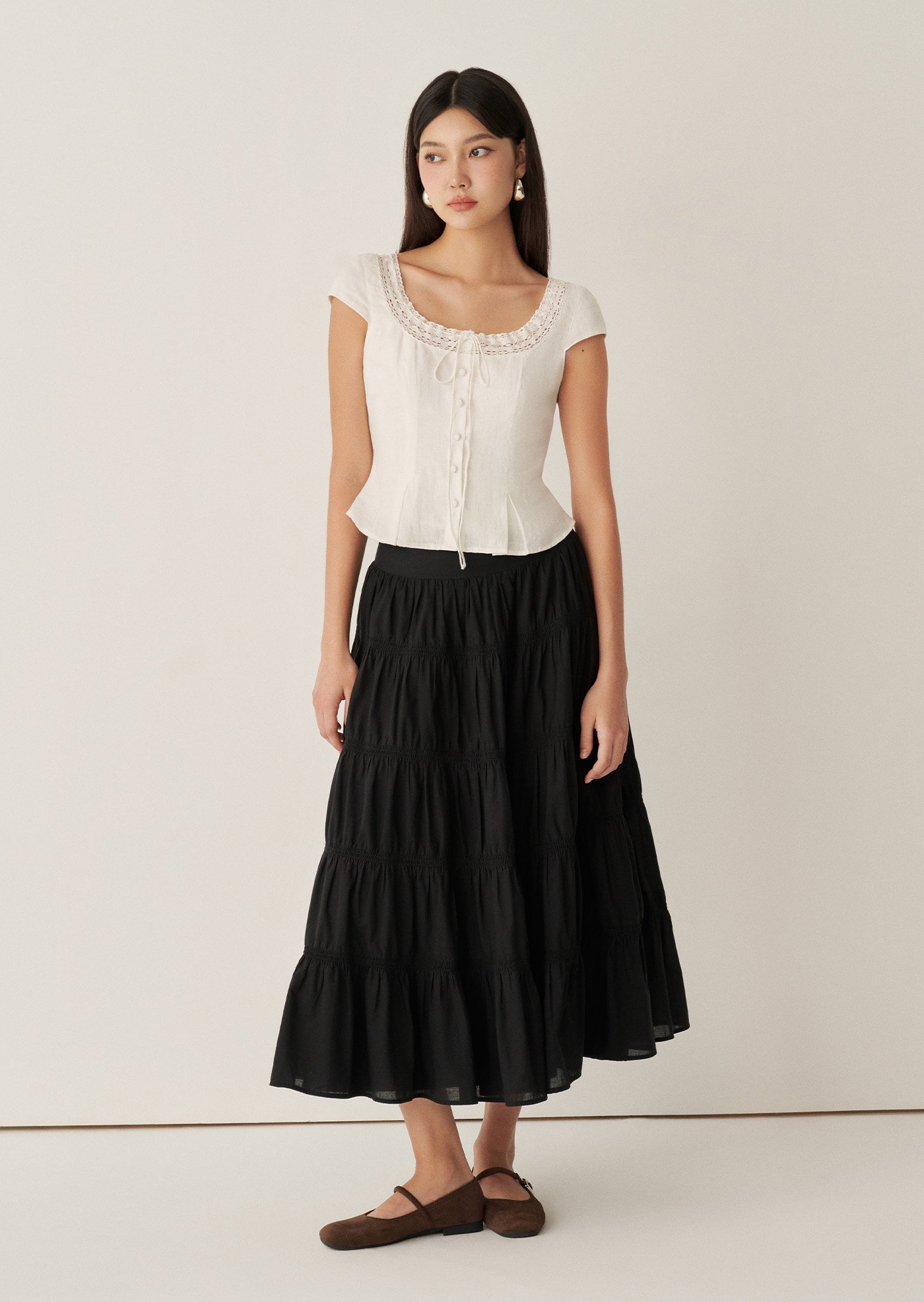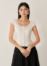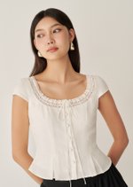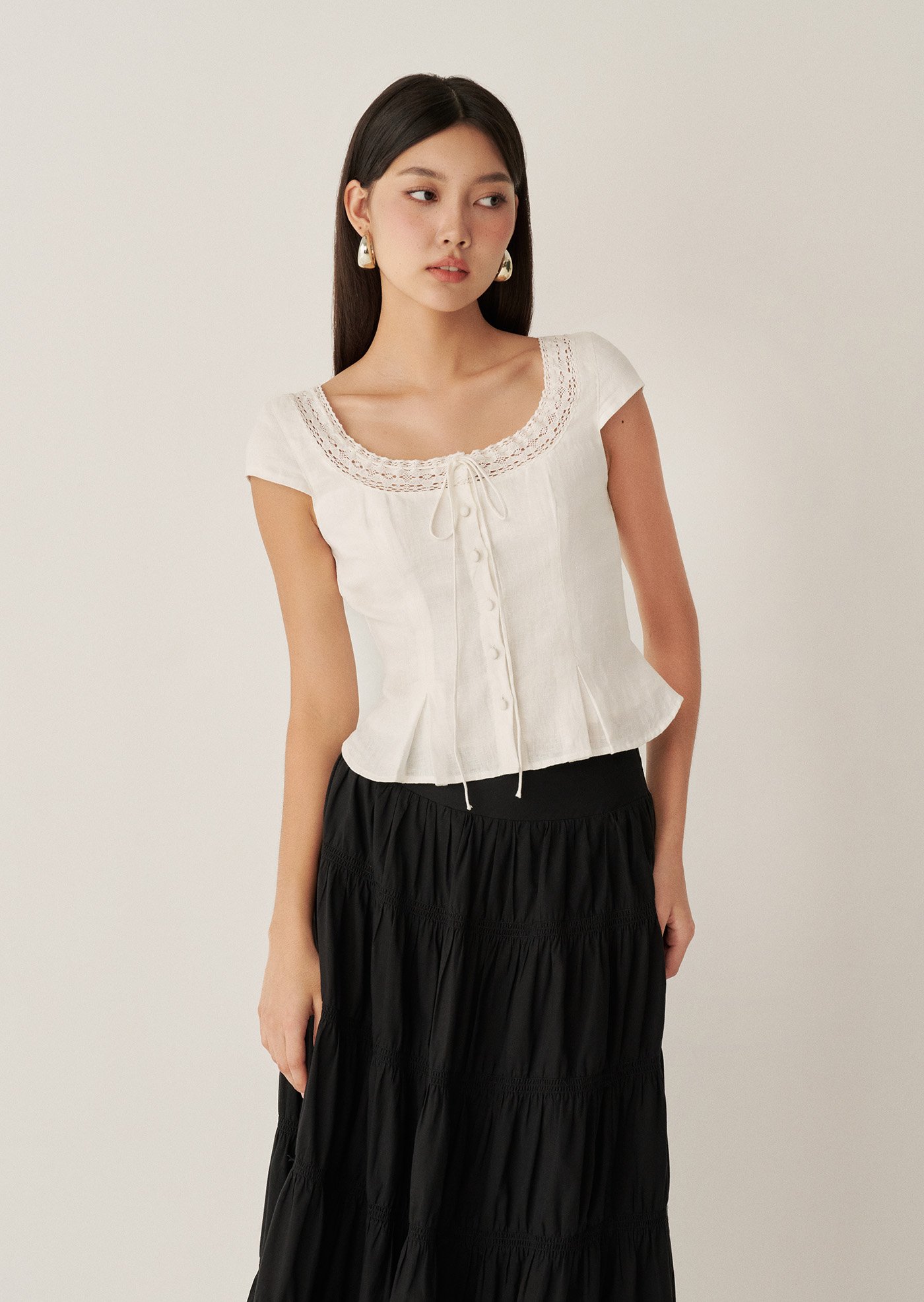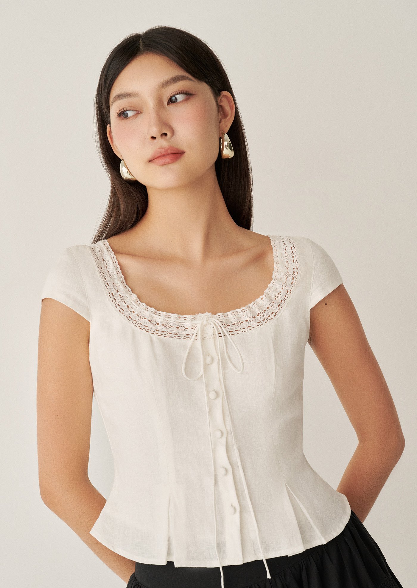Light, timeless, and quietly feminine. The Doveleaf Top is crafted in breathable linen with delicate lace trimming along the neckline, finished with a soft tie and button-down front. An easy everyday piece that feels both vintage and refined.