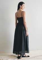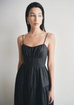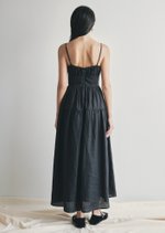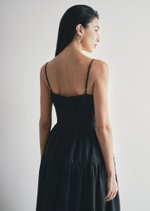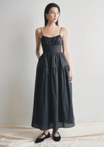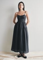 The Eleanor features a sweetheart neckline with a gathered bust panel and a two-tiered maxi skirt.
