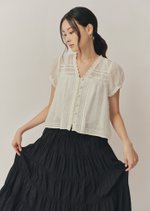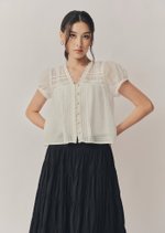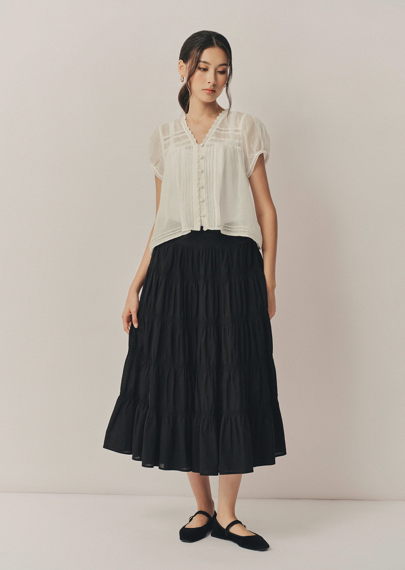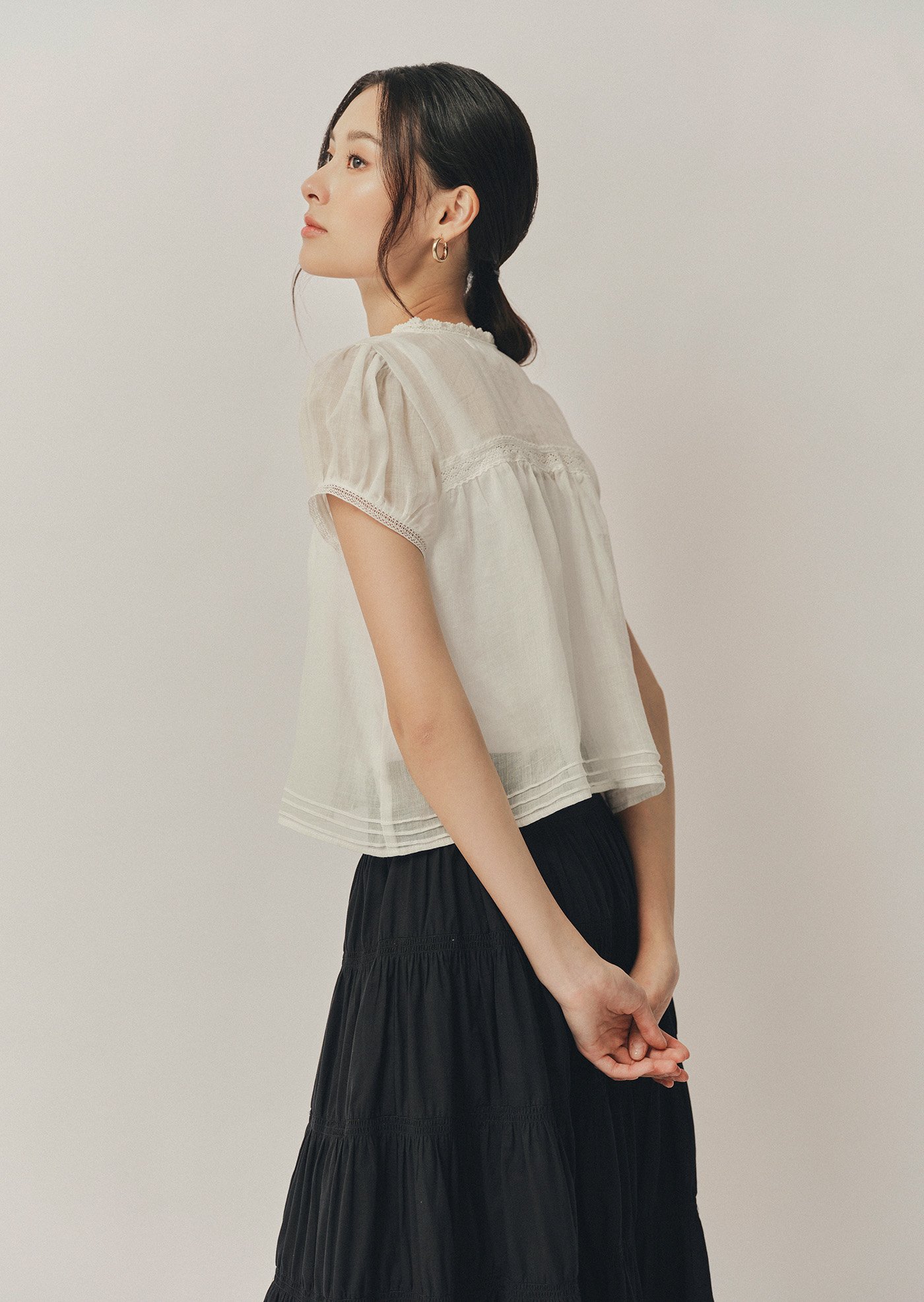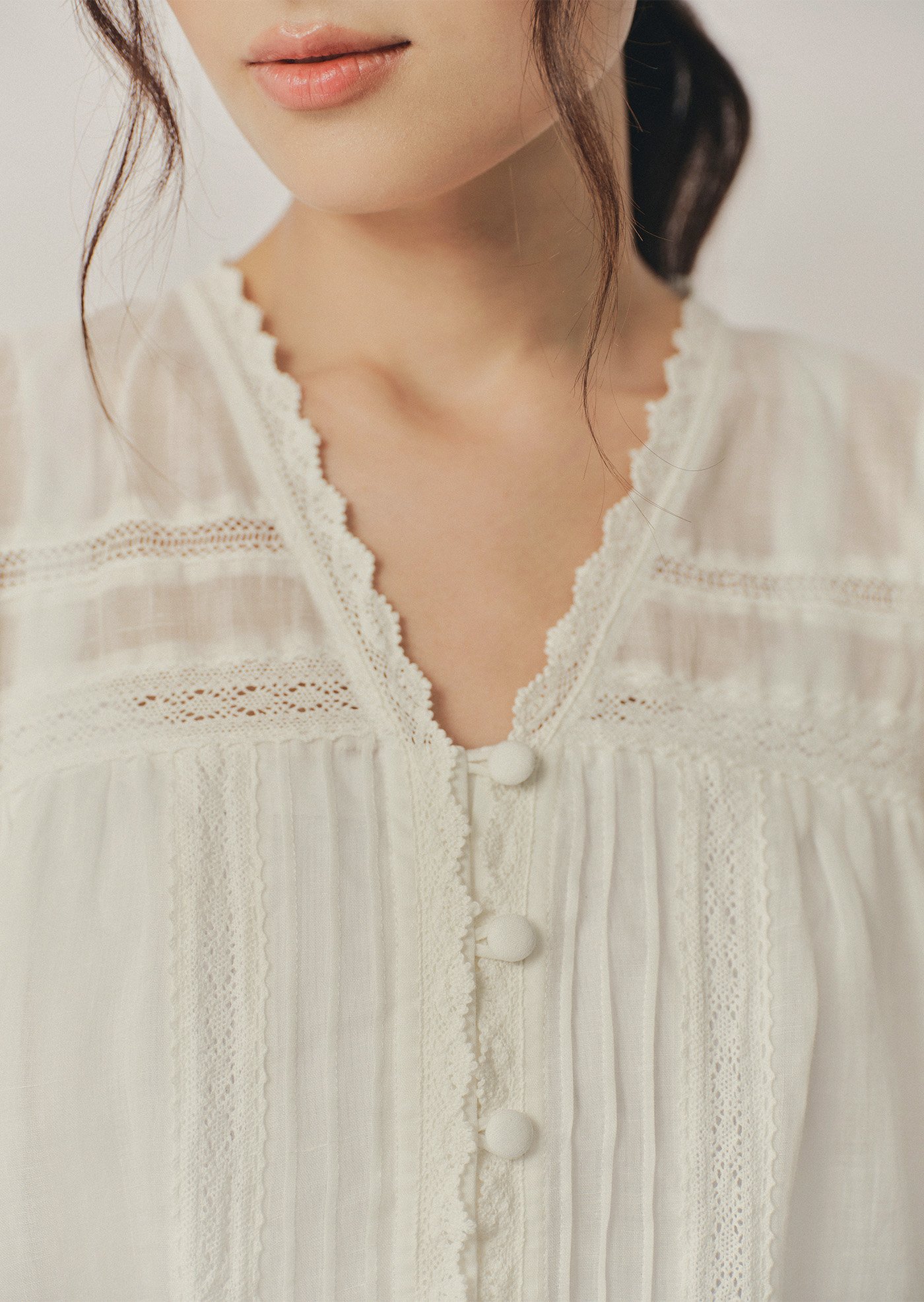 The Elowen Top captures a vintage-inspired softness with lace panels, pintuck details, and a gentle silhouette. Airy and romantic, it’s an easy piece to pair with high-waisted skirts or trousers — perfect for everyday wear with a timeless touch.