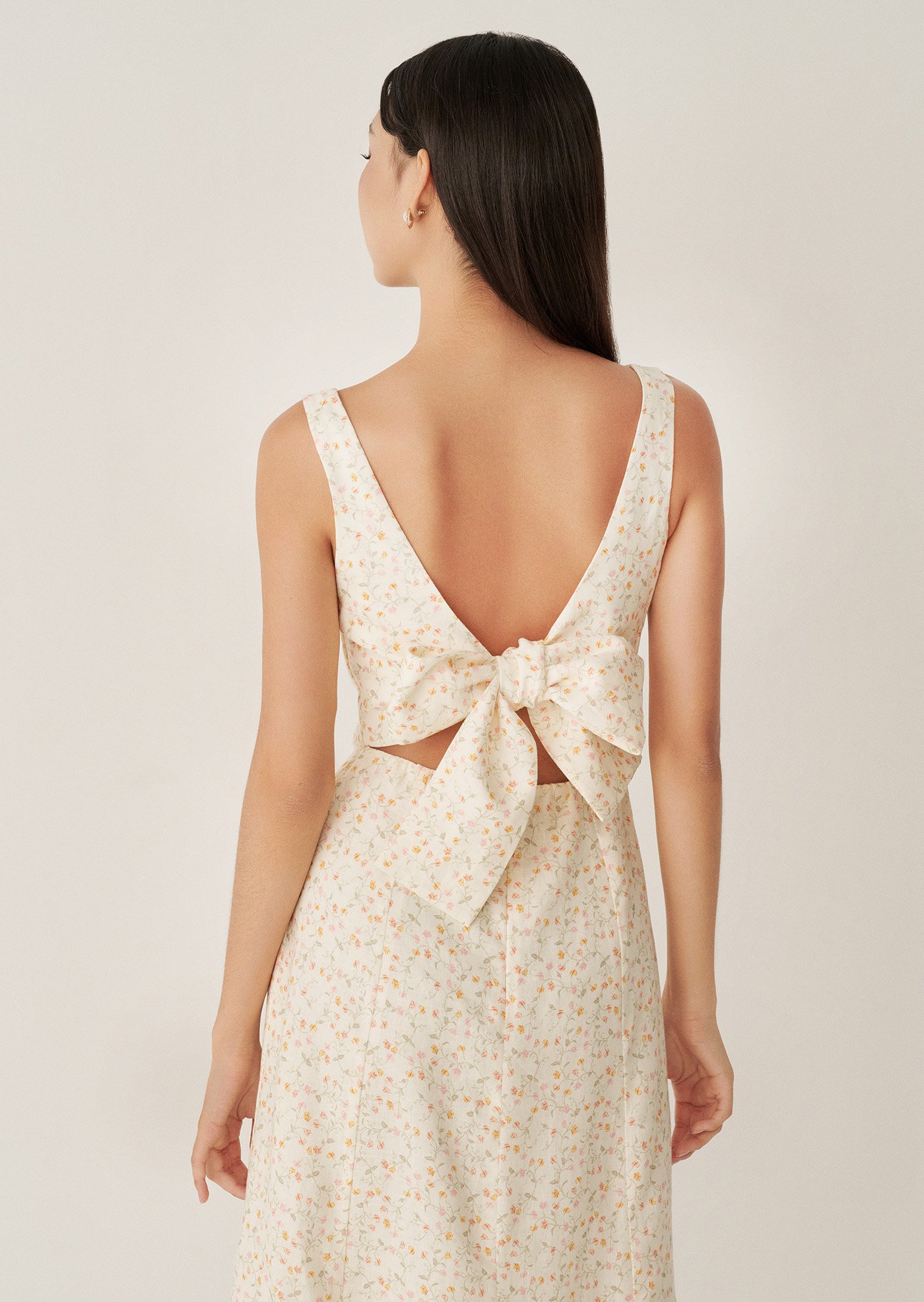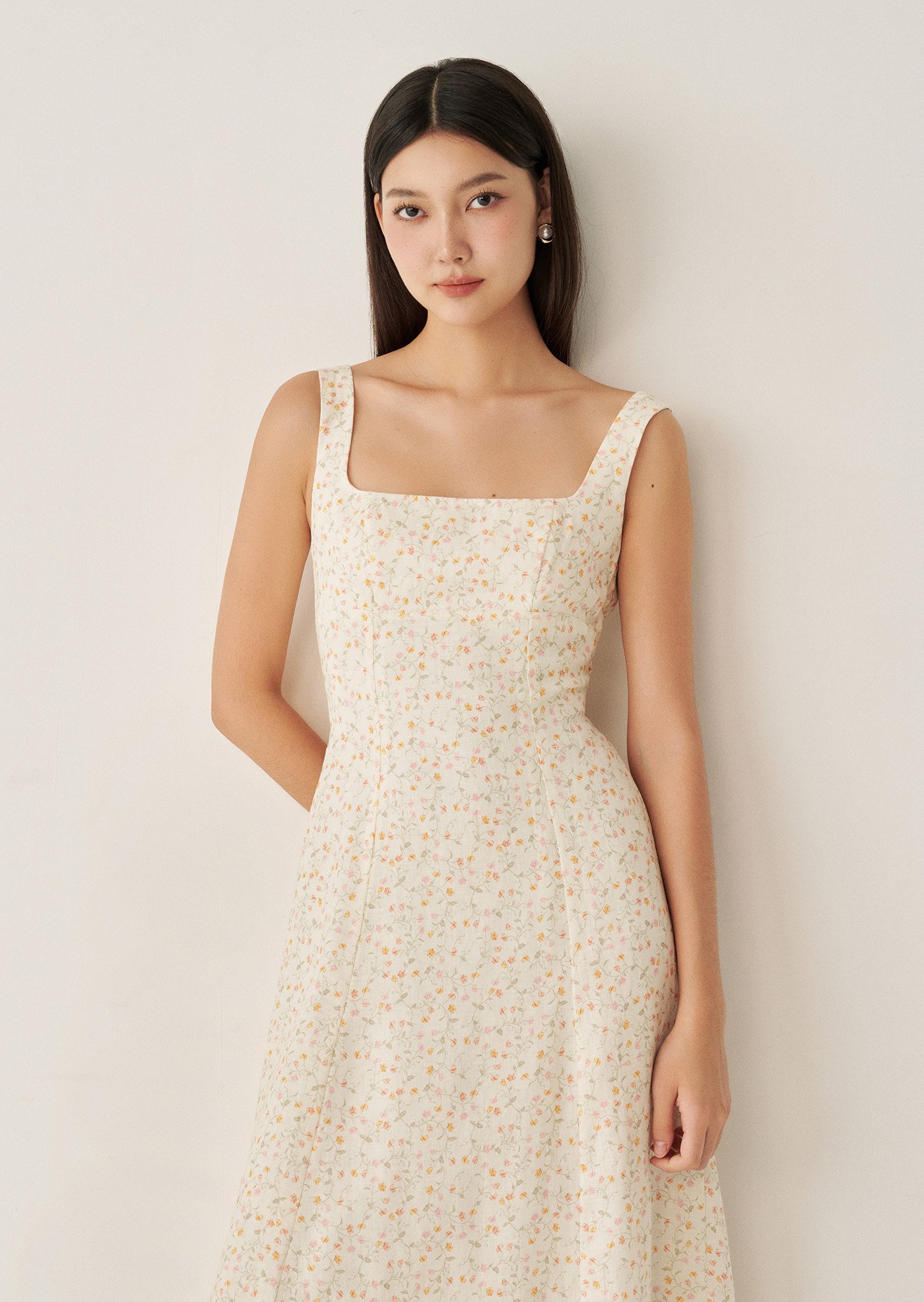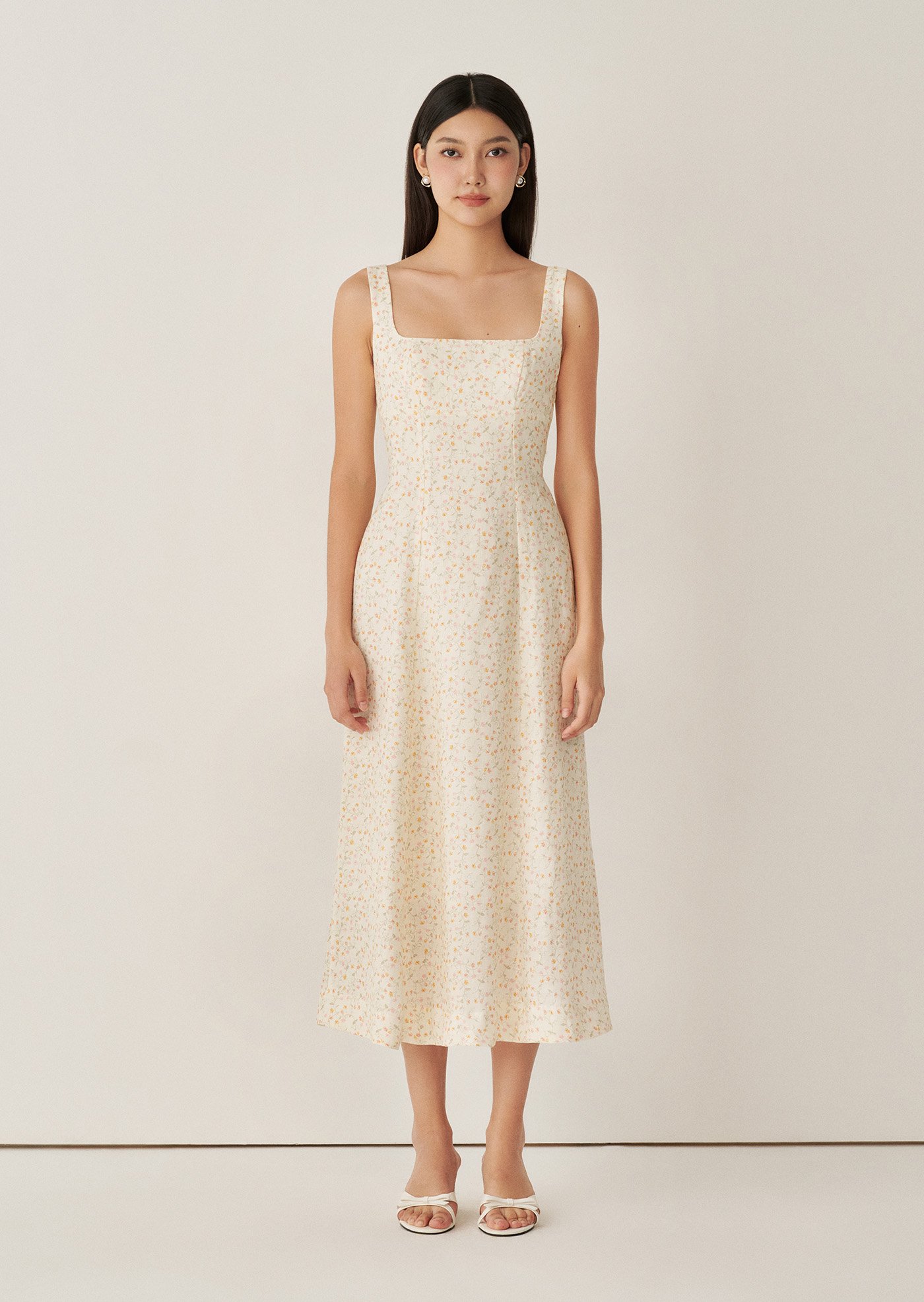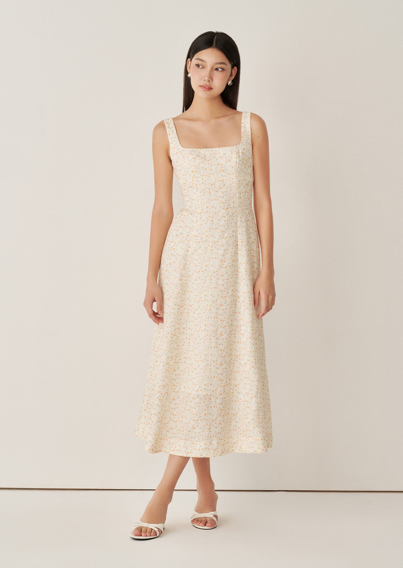 The Esme Midaxi Dress is a graceful blend of timeless design and modern touches. Featuring a square neckline, an A-line silhouette, ribbon detail at the back, and convenient pockets, this fully lined piece is just right for you.