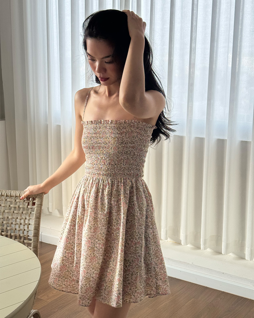 Sweet as can be, the Evelyn Mini Dress flatters your figure with a smocked bodice that hugs perfectly, while its playful mini length is made for carefree days—sure to become an instant wardrobe favourite.