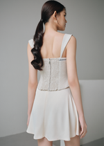 The Fior mini skirt is crafted from viscose silk, featuring a bias cut and lace trimmings around the waistline.