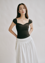 Giselle is a midi length skirt adorned with ruched detailing around the waist. To add an extra touch of femininity and charm, both sides of the skirt features a self-tie ribbon detailing.