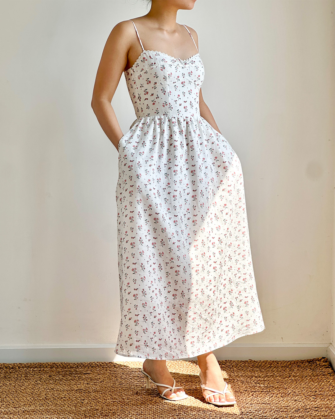 The Ivara Midi Dress is a soft, romantic piece designed for warm days and slow moments. With delicate floral prints and a gently structured bodice, it’s effortless, feminine, and easy to wear from day to evening.