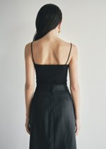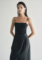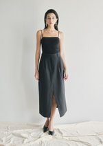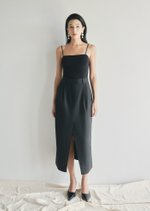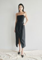 The Jadey Midi Skirt is a timeless staple boasting a stylish high waist, alluring front slit, and functional pockets, seamlessly blending sophistication with functionality.