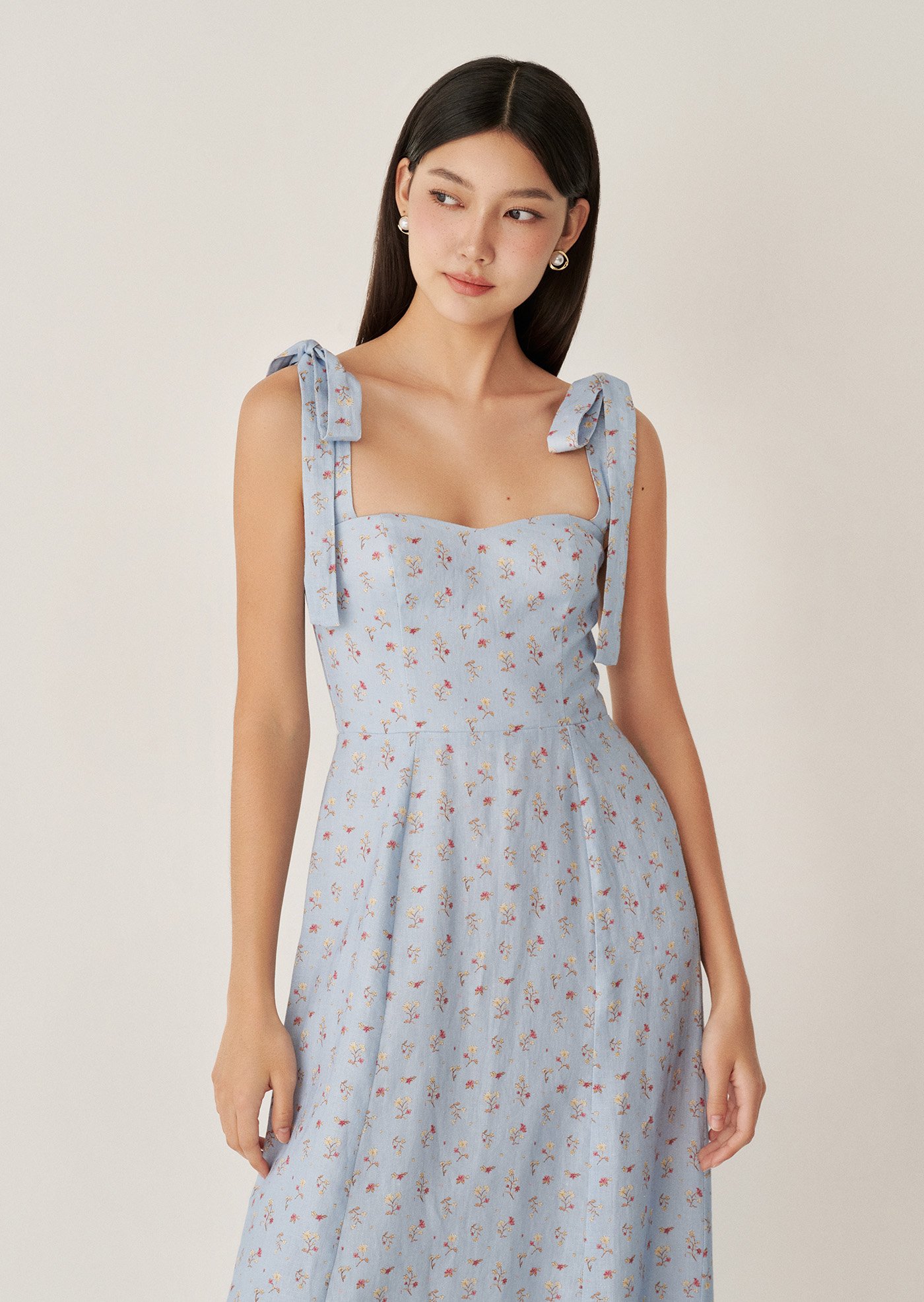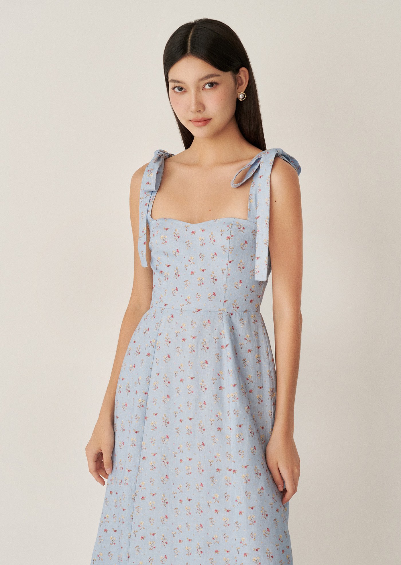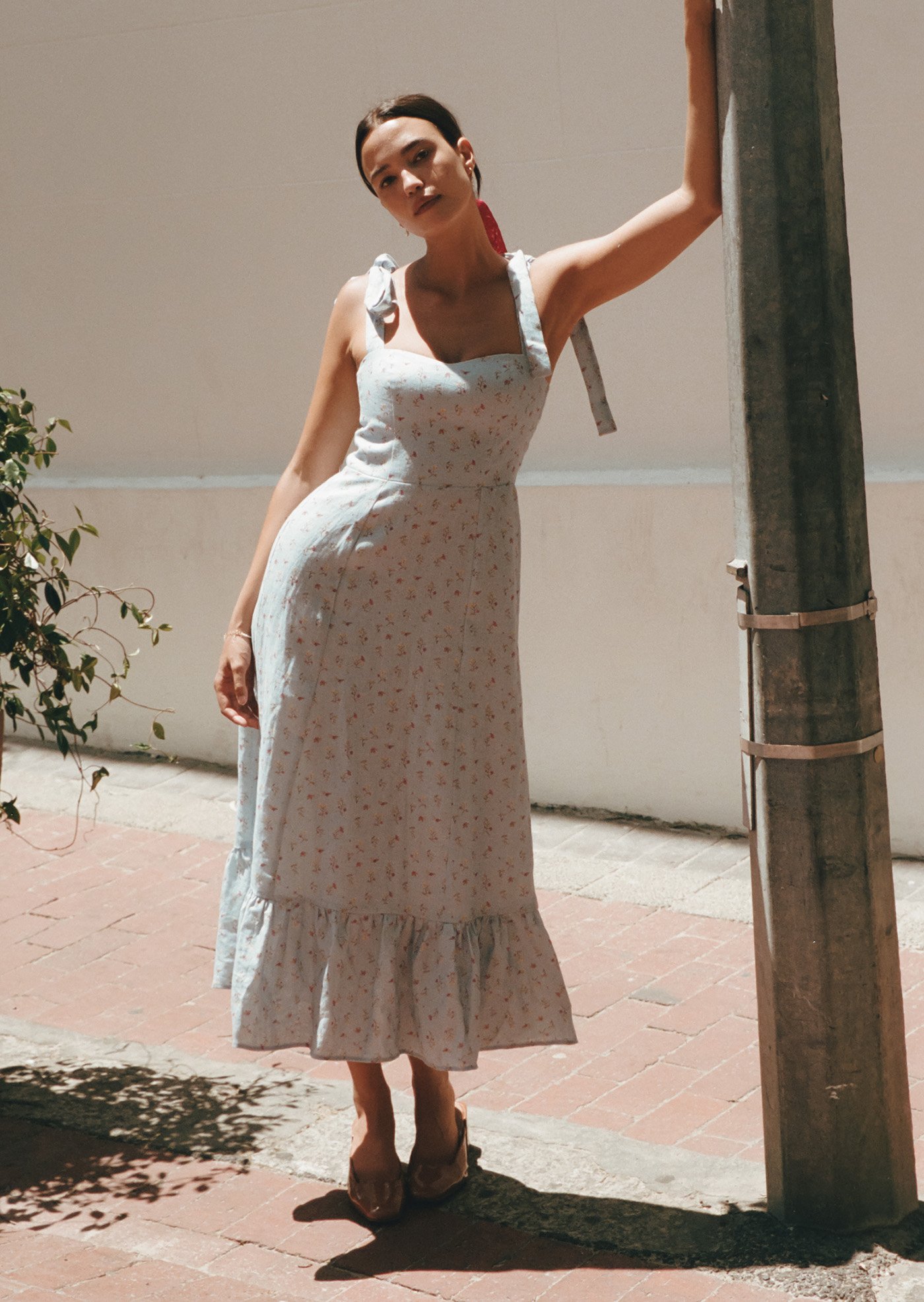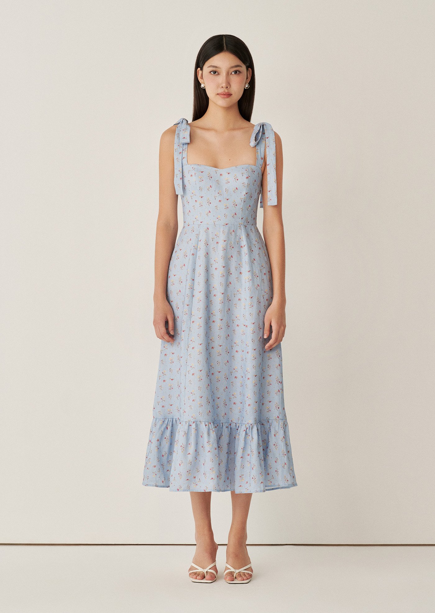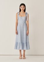 The Jess Midi Dress features delicate shoulder ties, a fitted bodice with gentle shaping, and a flowy midi skirt that moves beautifully with every step. Designed to feel light on the skin and easy to wear, it’s a piece made for sunlit days and unhurried moments.