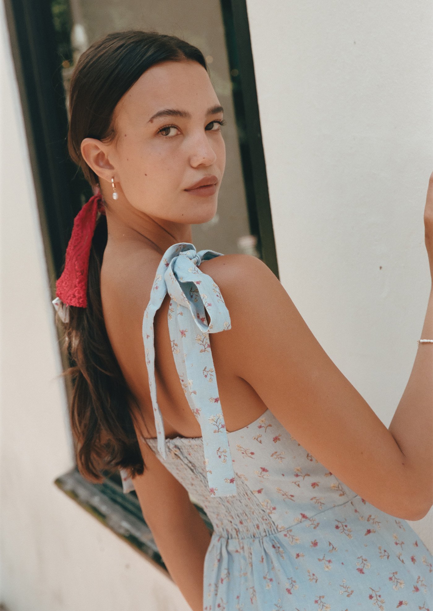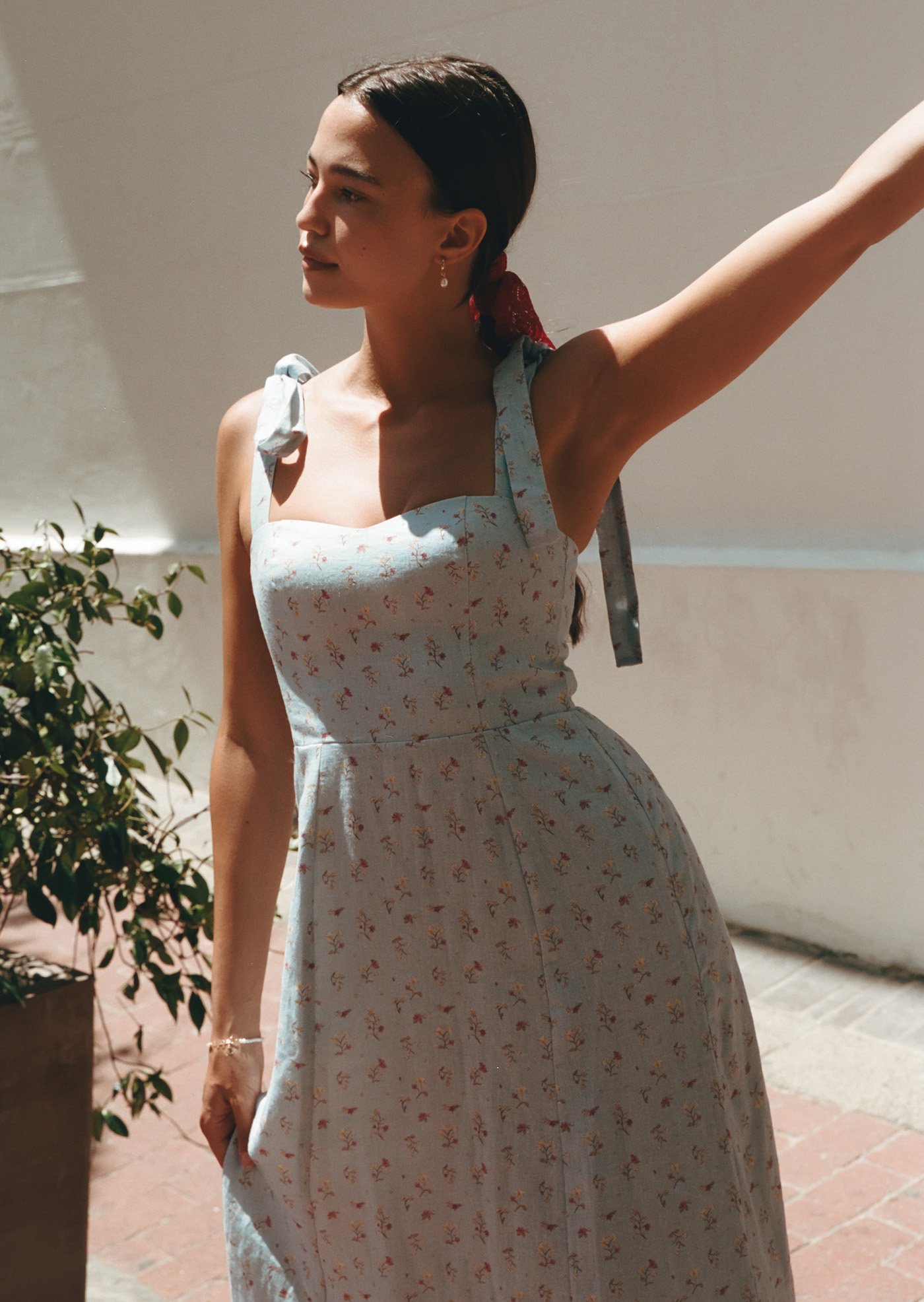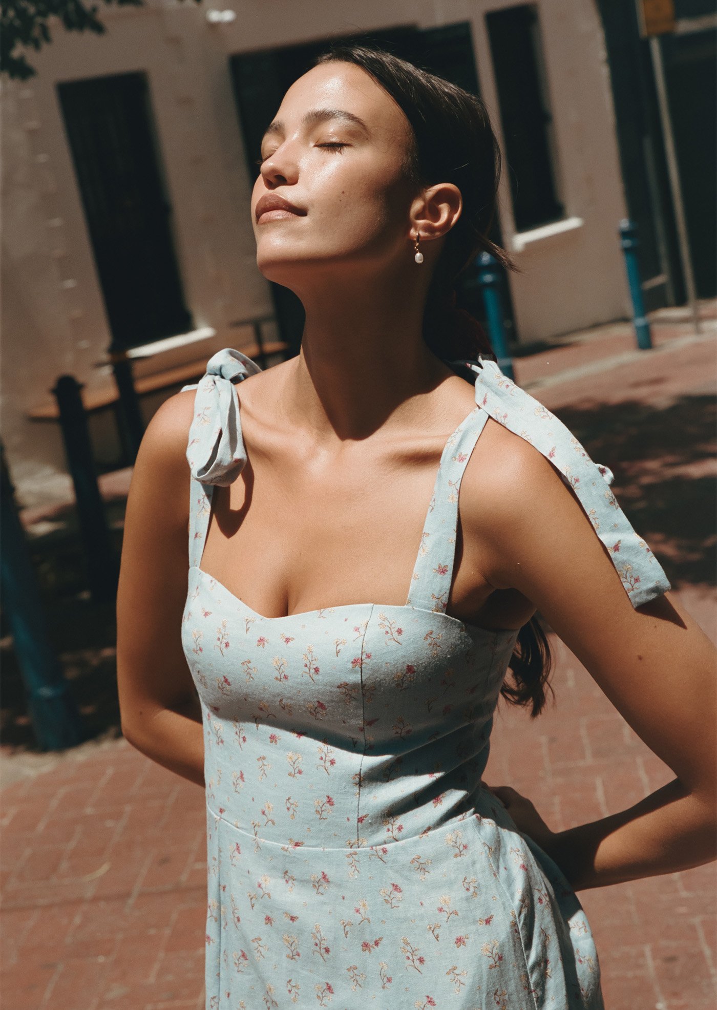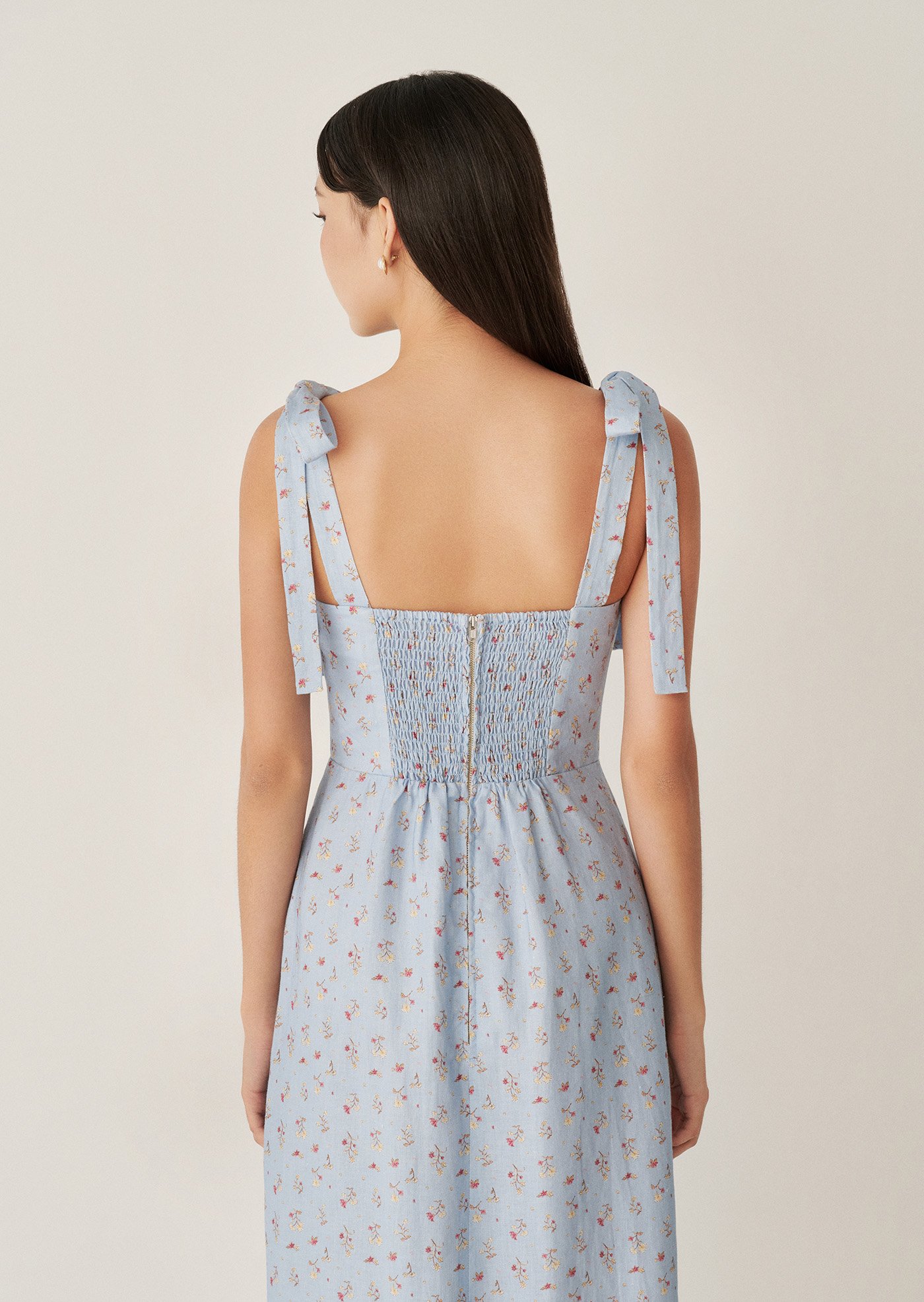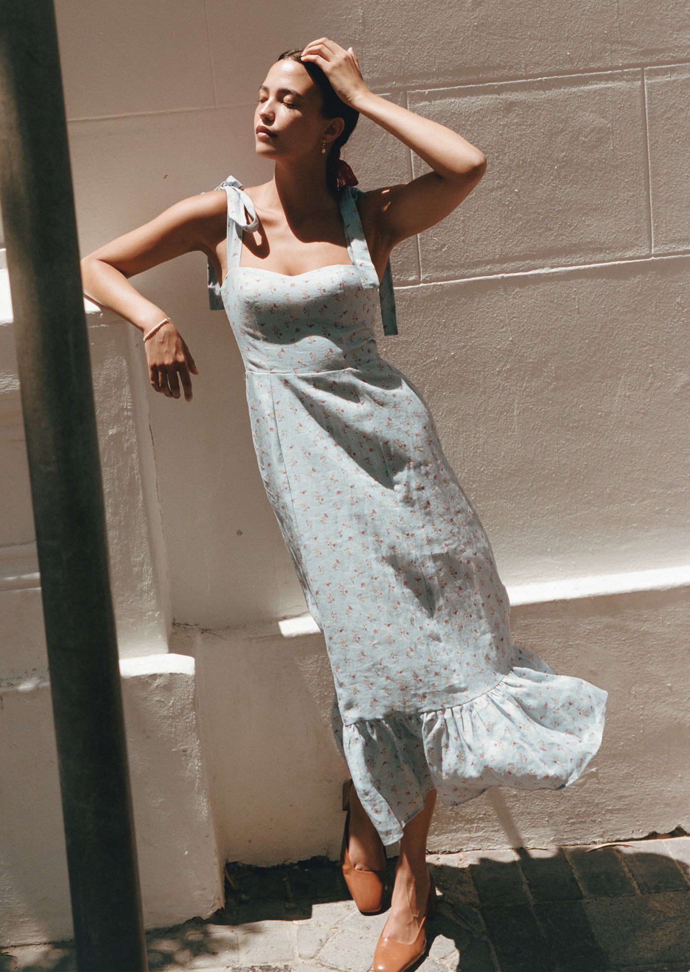 The Jess Midi Dress features delicate shoulder ties, a fitted bodice with gentle shaping, and a flowy midi skirt that moves beautifully with every step. Designed to feel light on the skin and easy to wear, it’s a piece made for sunlit days and unhurried moments.