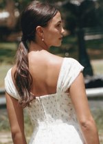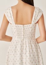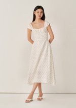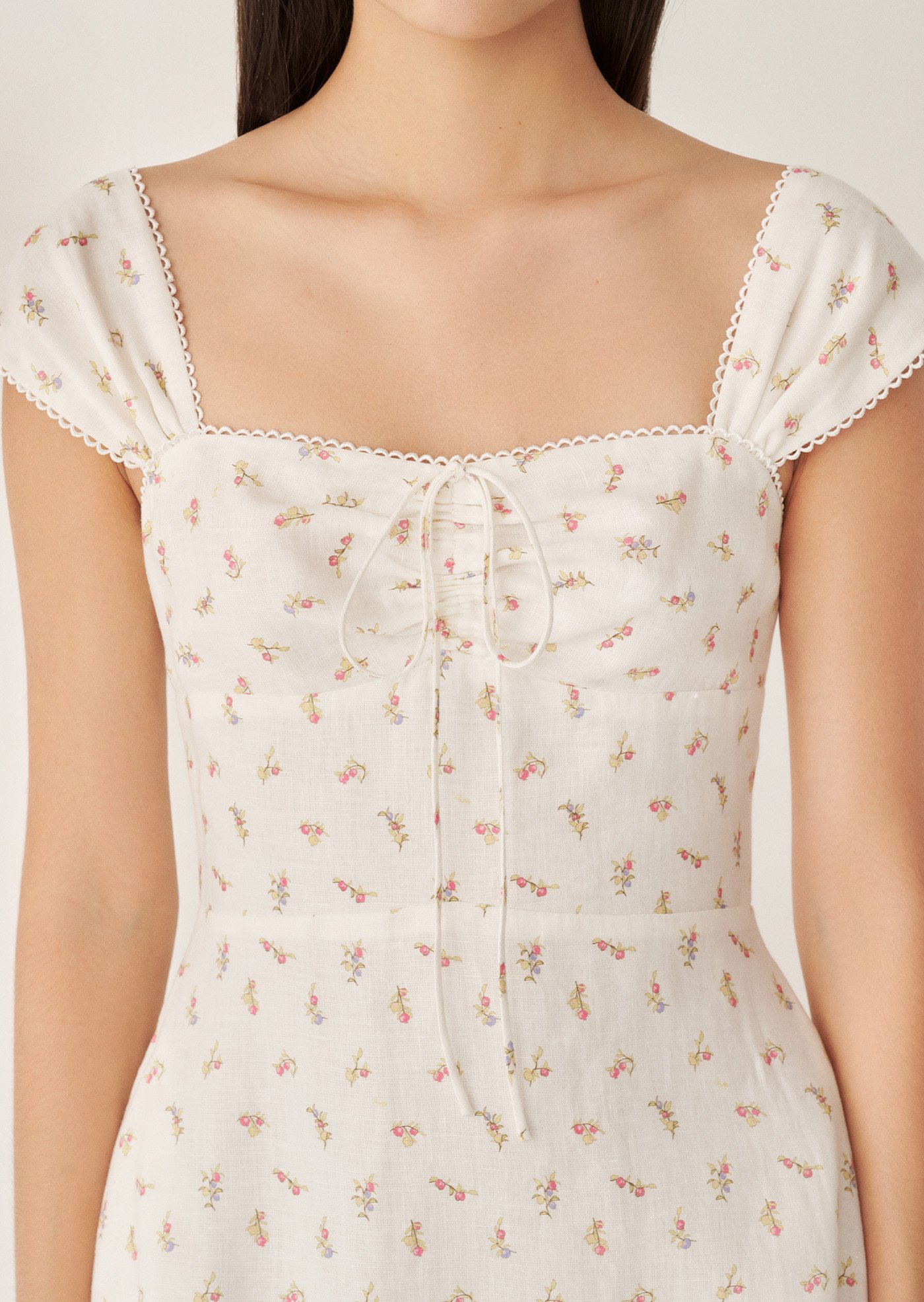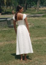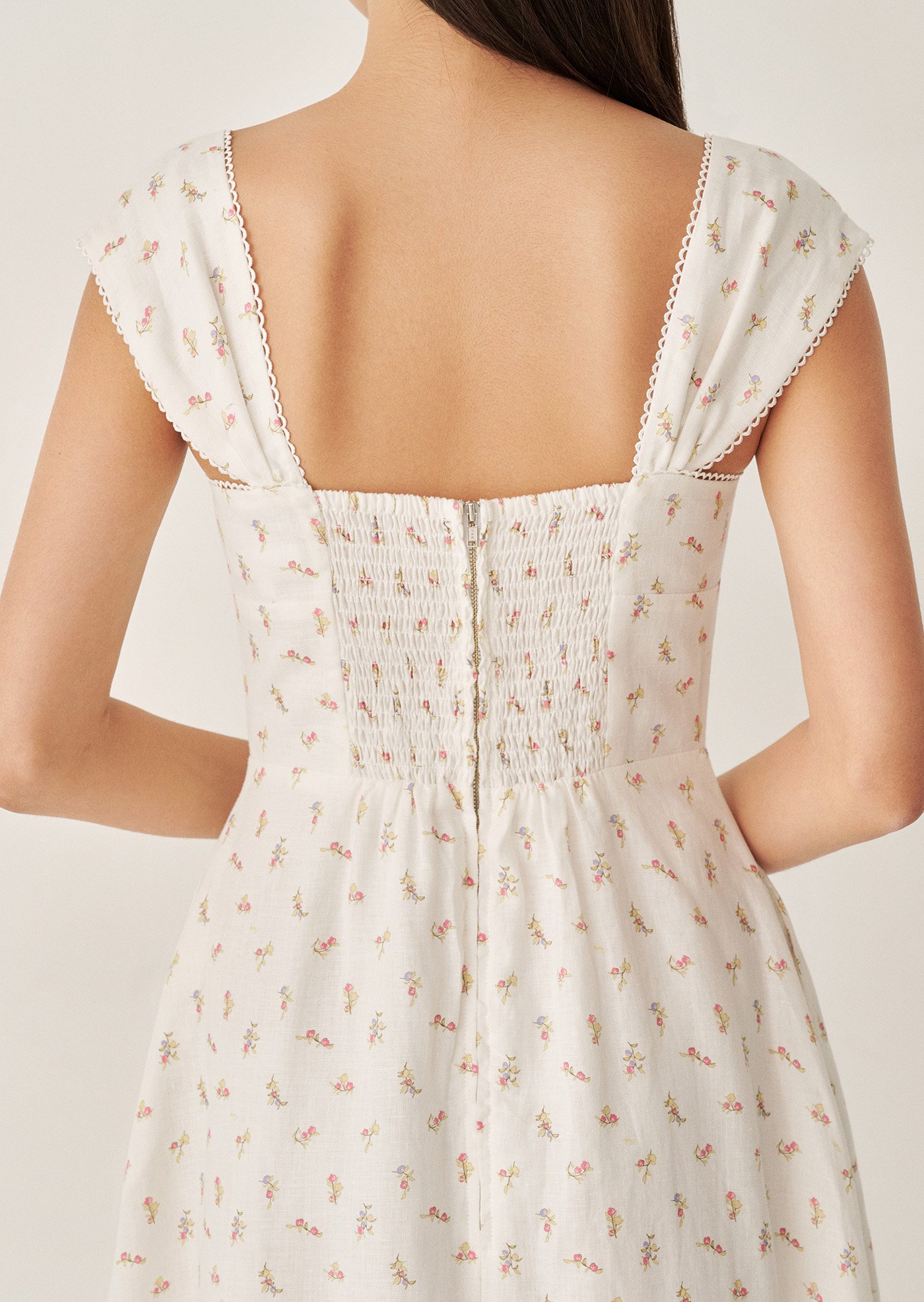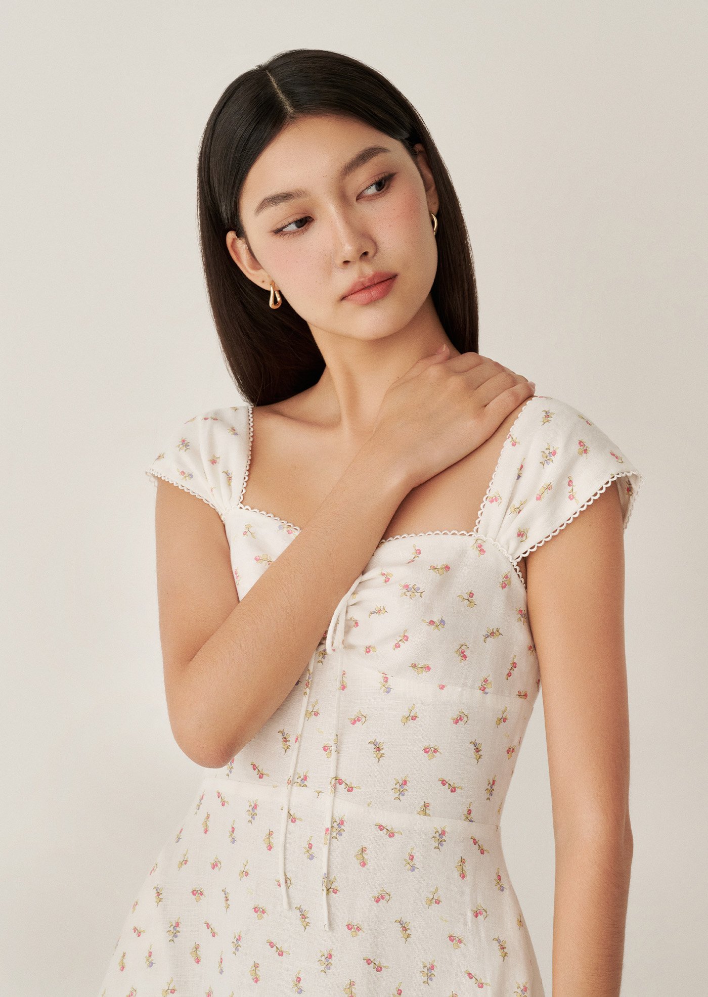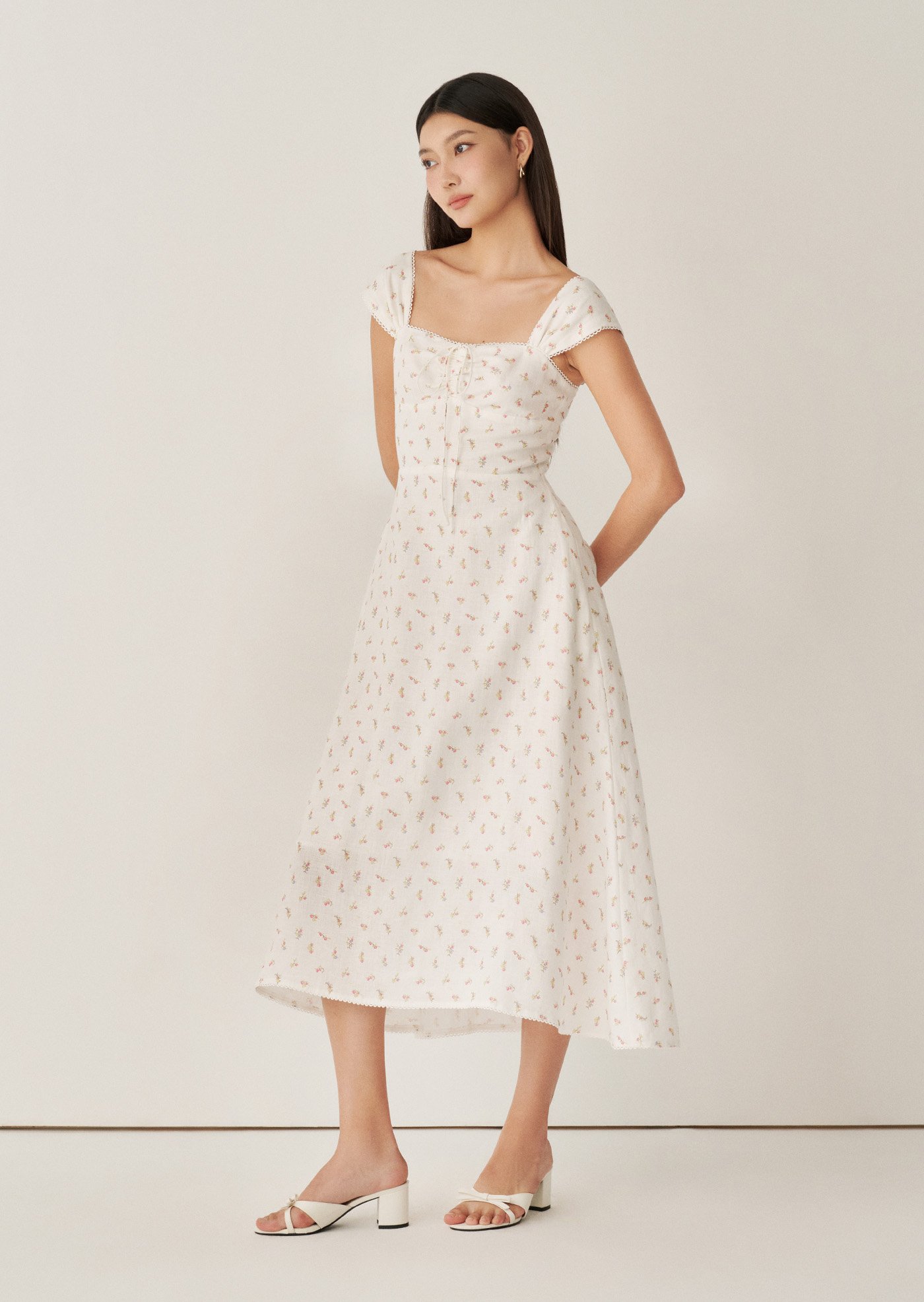 The Johanson Midi Dress features a delicate floral print on airy cotton, designed with a gentle sweetheart neckline and a softly fitted bodice that flows into an easy midi skirt. Made for slow afternoons, garden walks, and everyday elegance.