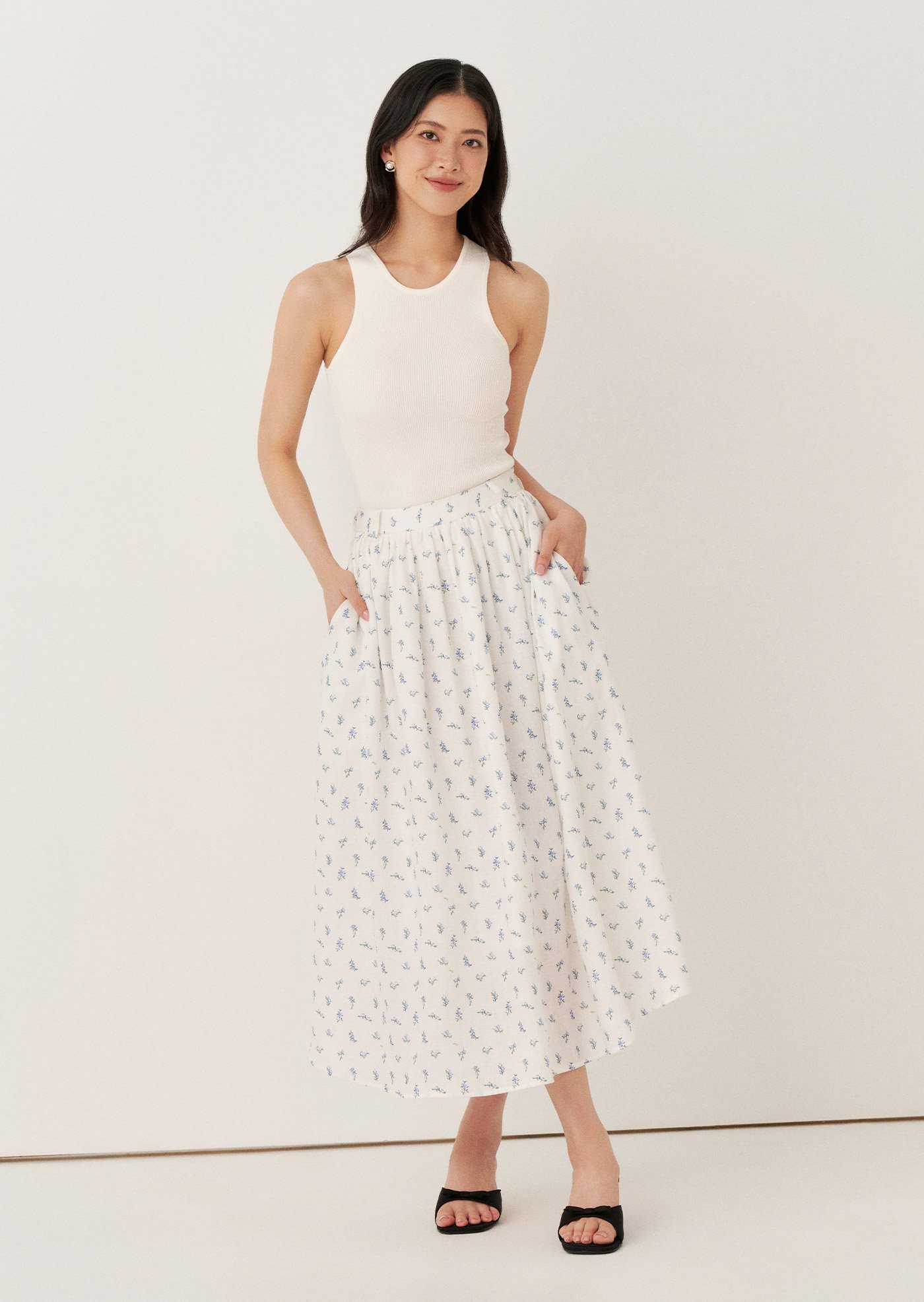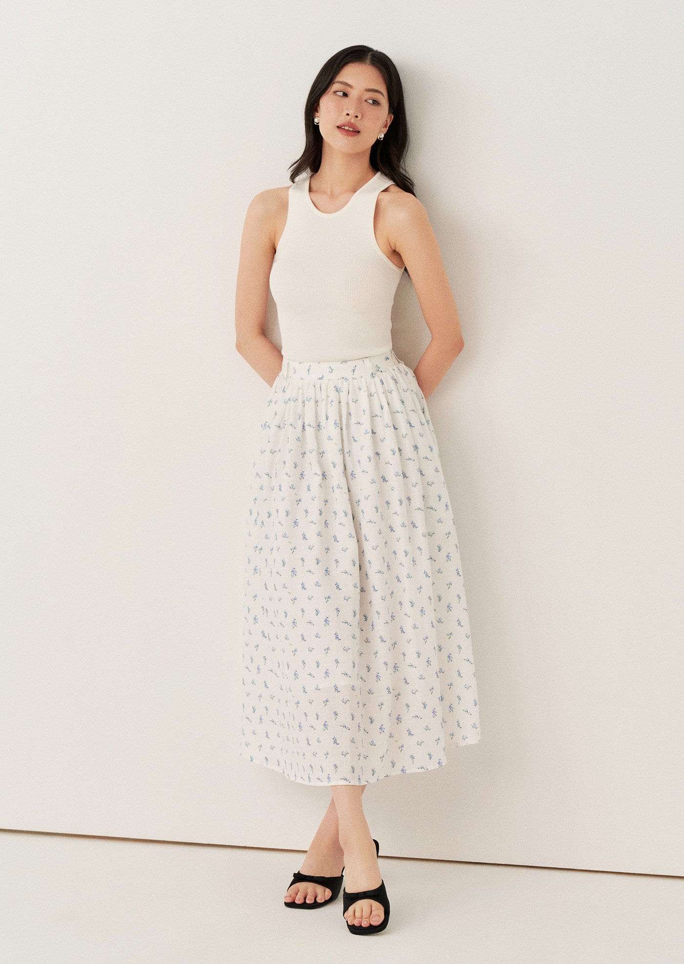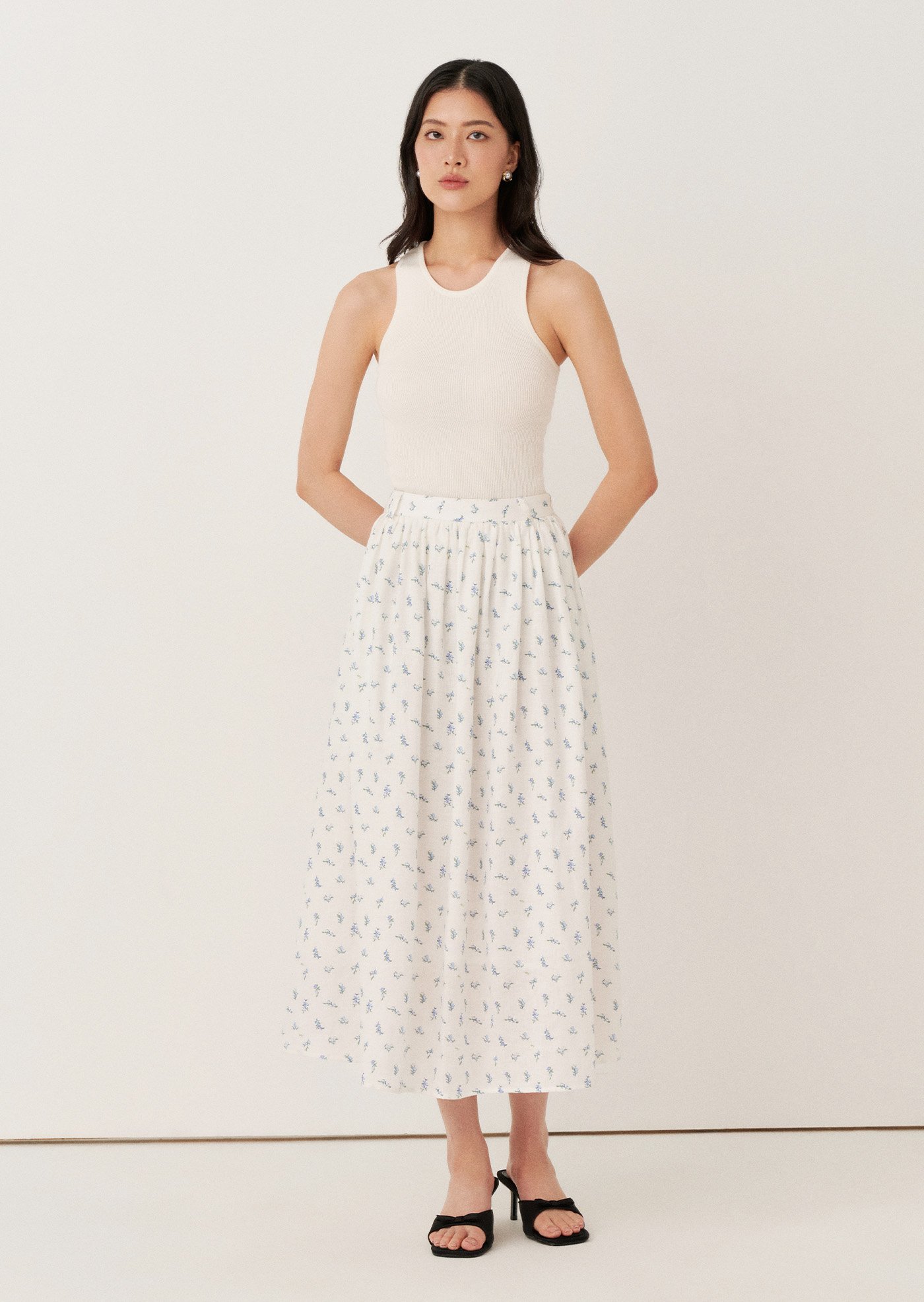 The Josephina Midi Skirt is an easy, feminine piece designed with soft gathers and a flowing silhouette. Finished in a delicate floral print, it brings a light and effortless charm to everyday dressing.