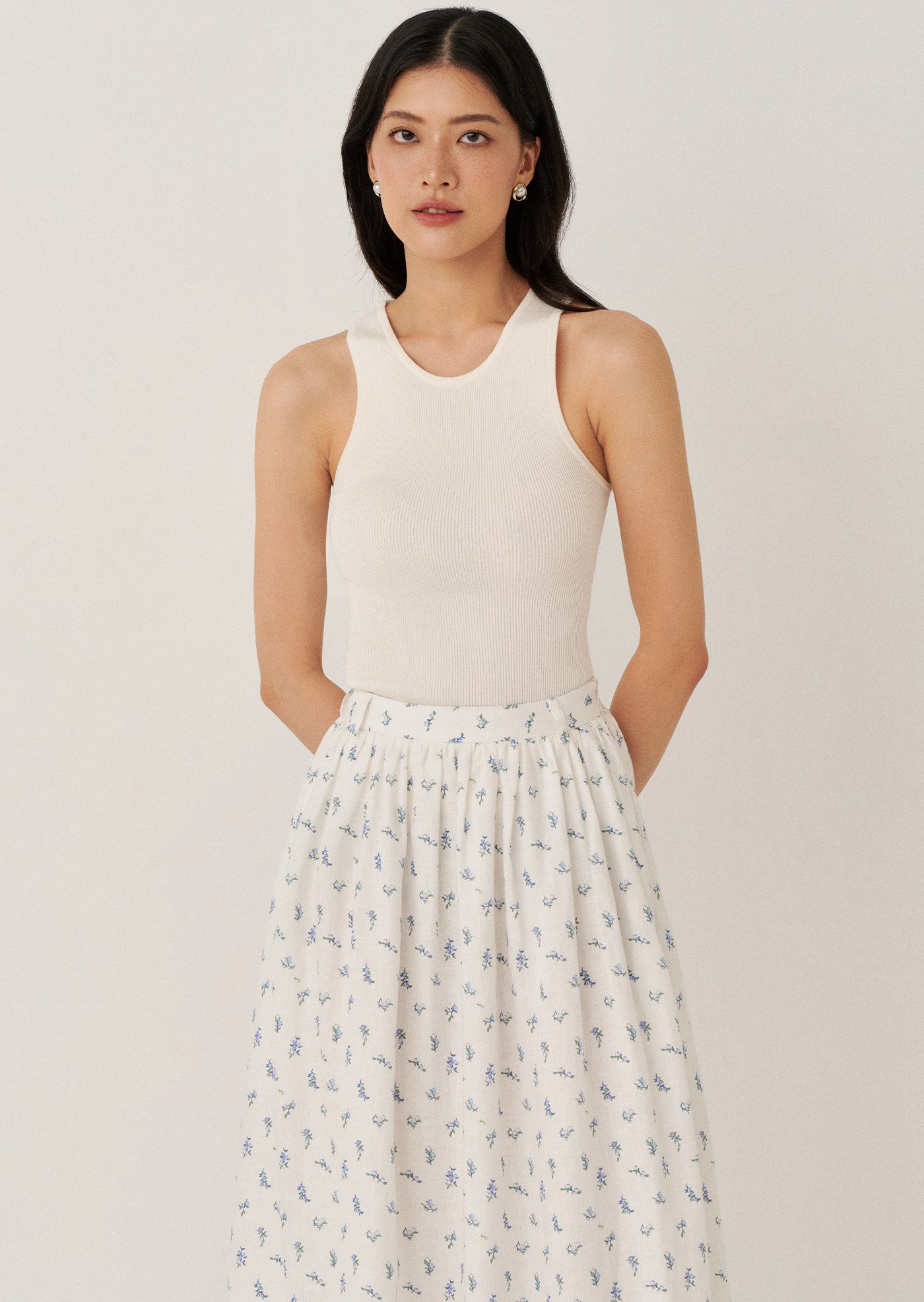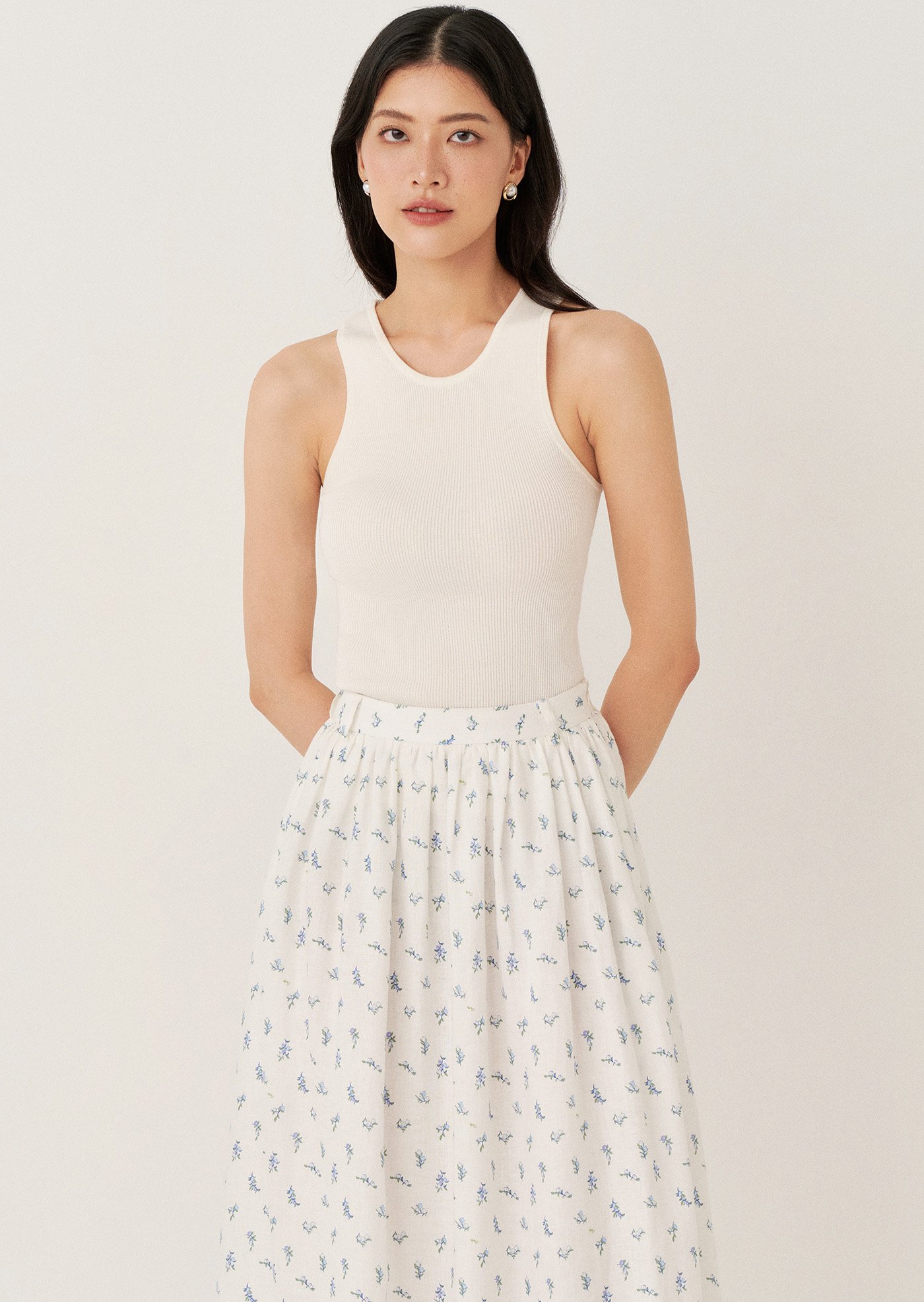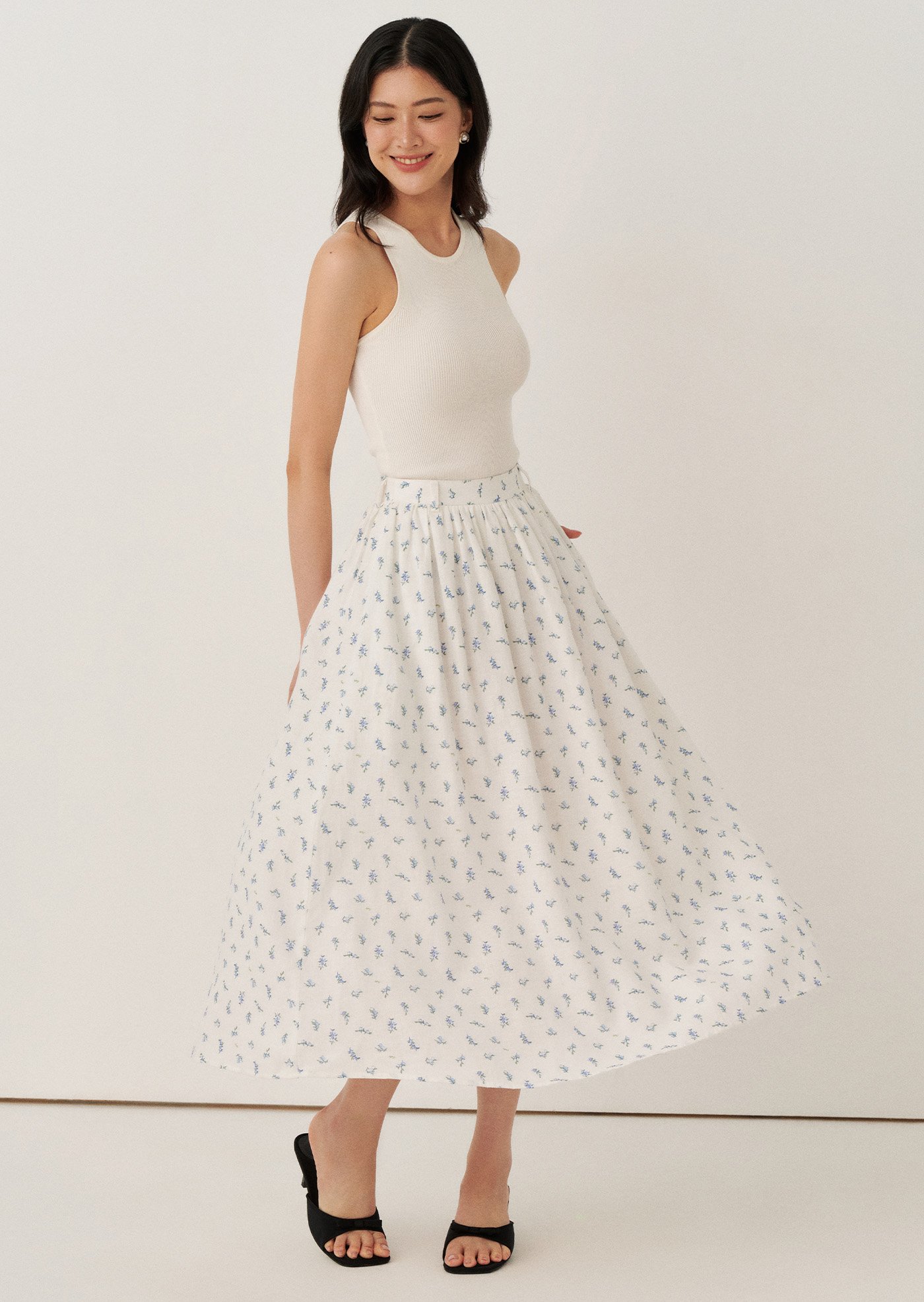 The Josephina Midi Skirt is an easy, feminine piece designed with soft gathers and a flowing silhouette. Finished in a delicate floral print, it brings a light and effortless charm to everyday dressing.