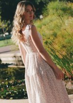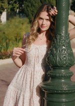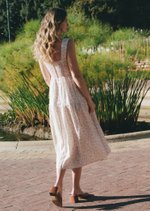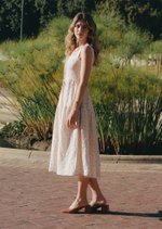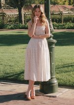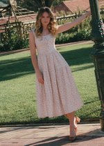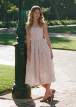 Introducing the Kady Midaxi dress, featuring a captivating A-line silhouette and a sophisticated sweetheart neckline adorned with intricate embroidered lace details.