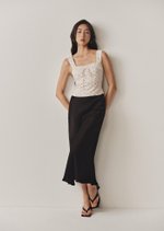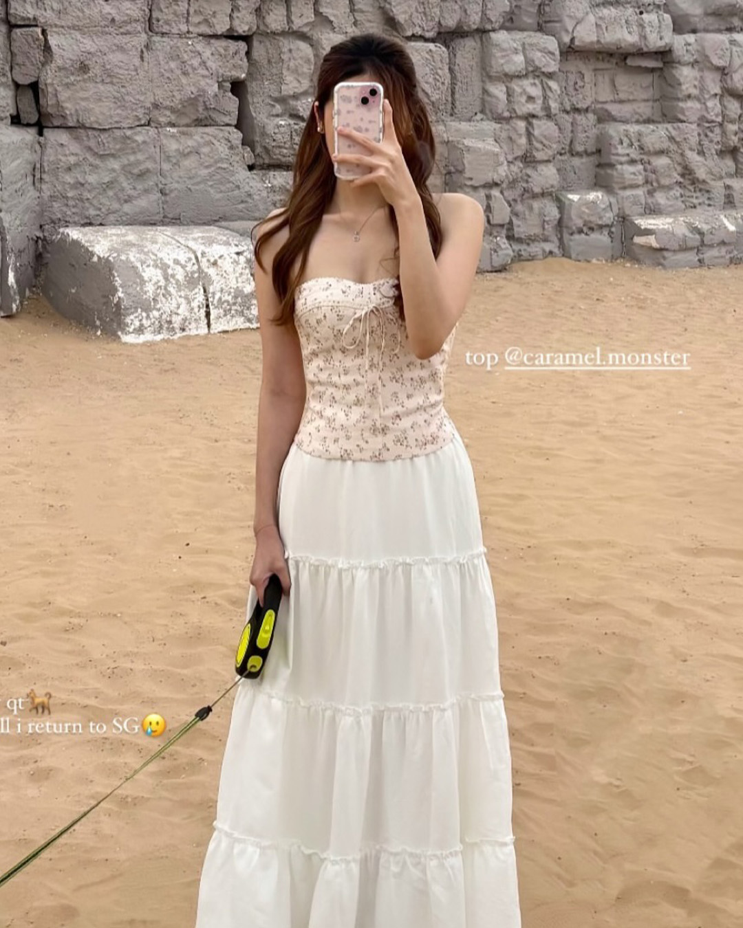 The Karmen Top features a stylish sweetheart neckline and a comfortable smocked back for a perfect fit. It’s fully lined with back metal zip closures, ensuring an elegant and refined finish.