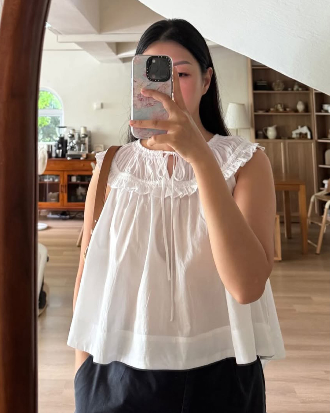 With a smocked neckline, flared silhouette, and asymmetric hem for front and back, the Kayla Top offers a breezy, contemporary look with effortless charm.