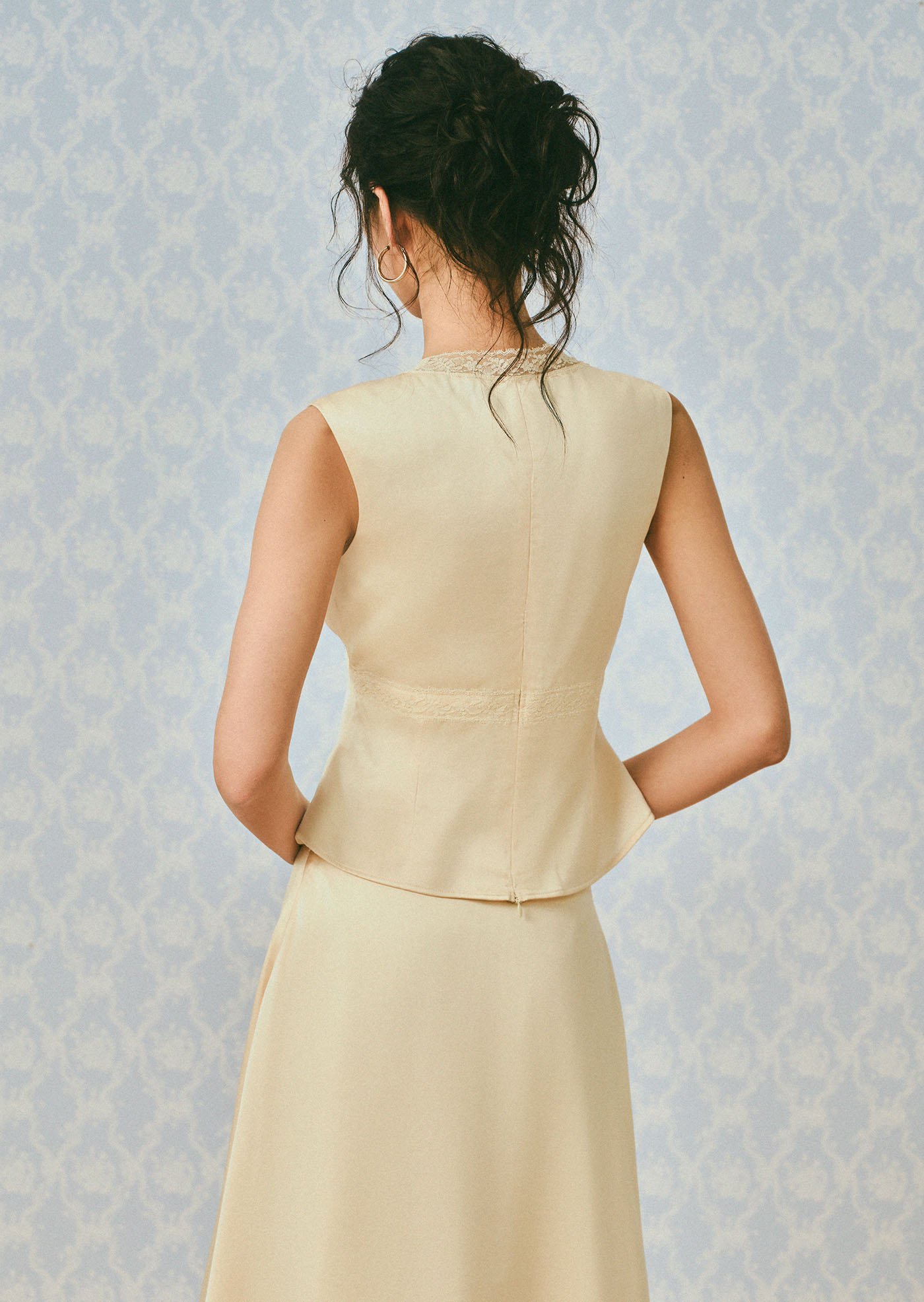The Laney Top features a softly gathered bust and delicate lace trims along the neckline, creating a refined piece that feels both romantic and