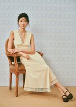 -Soft V-neckline with delicate lace trim