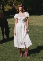 With puffy sleeves, a sweetheart neckline, and a button-front design, the Liora Midi Dress is both romantic and practical. Fully lined with pockets, it’s effortlessly chic.