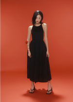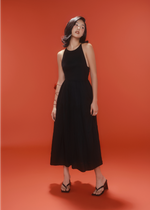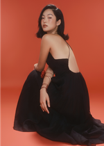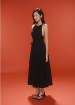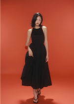 The Lois features a simple and romantic design with floaty skirt and halter bodice with ties at the back to adjust the fit. Make a statement in the crowd with this simple but unique midi dress.