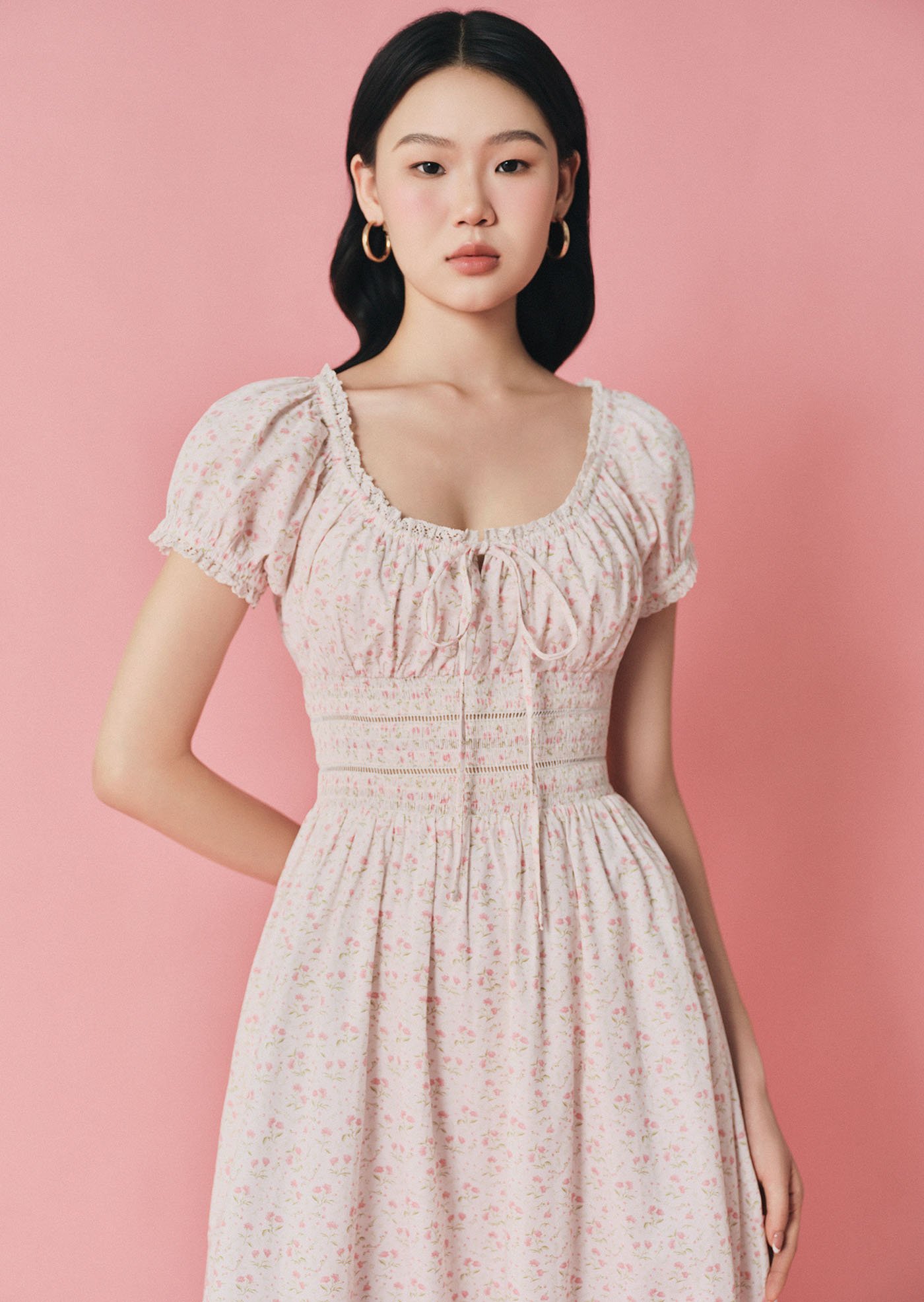 -Smocked waist panel for a flattering, comfortable fit