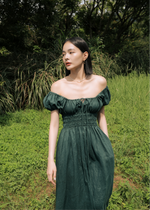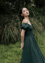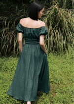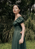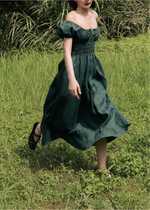 The milkmaid style Mia is a gorgeous midi dress featuring a simple scoop neckline on a ruched bodice with self tie-front and keyhole detailing around the bust. The perfect piece to spruce up your date night.