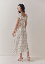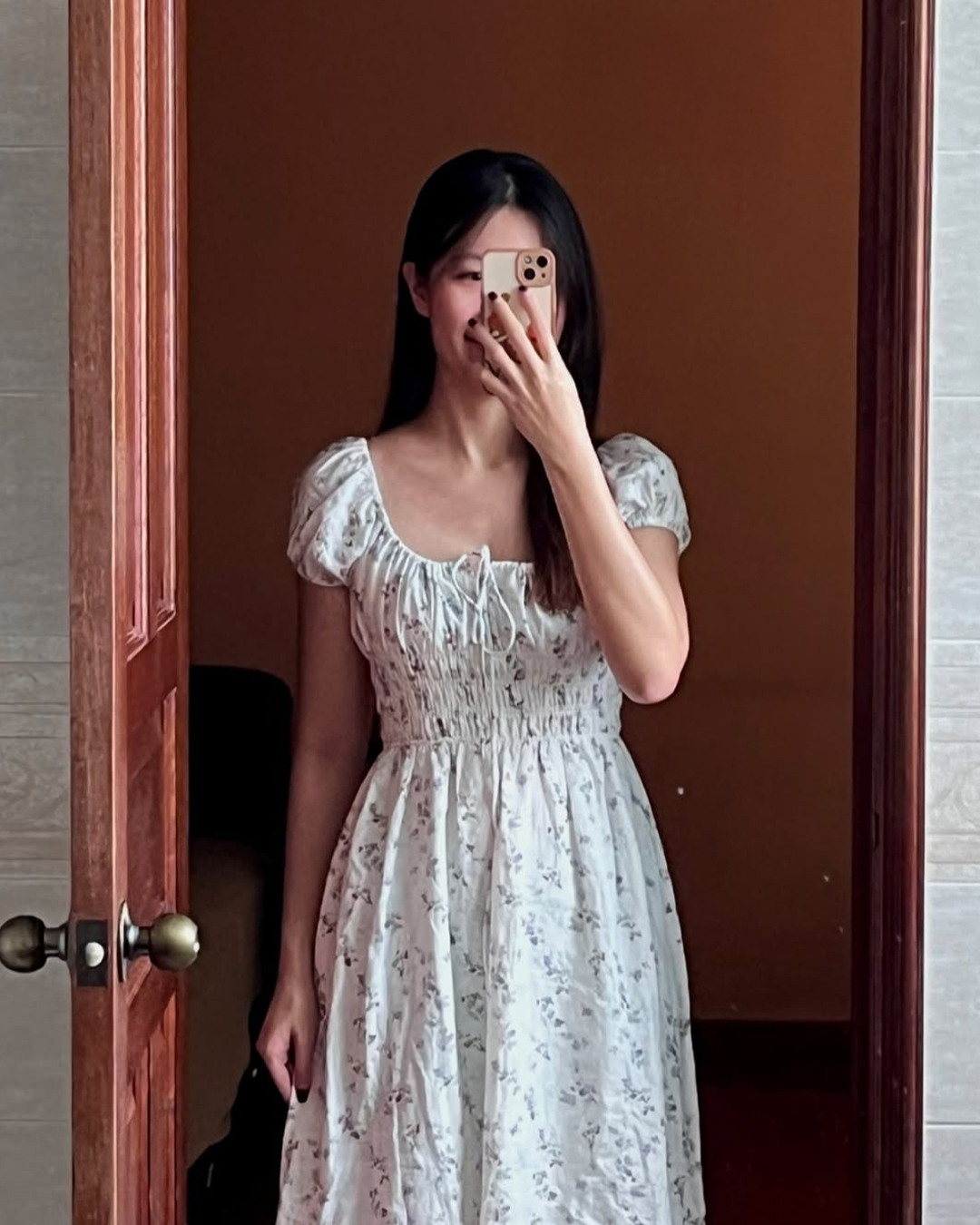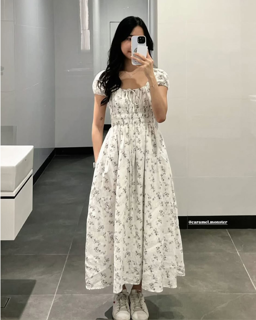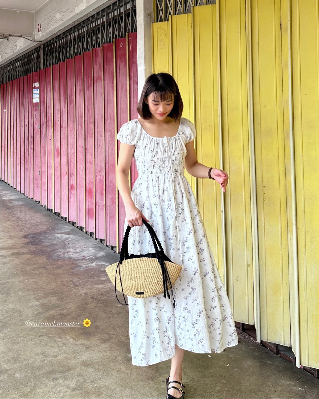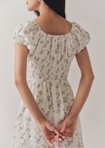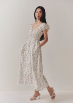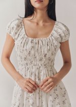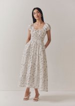The milkmaid style Mia is a gorgeous midi dress featuring a simple scoop neckline on a ruched bodice with self tie-front and keyhole detailing around the bust. The perfect piece to spruce up your date night.