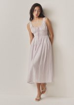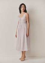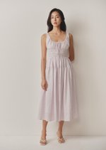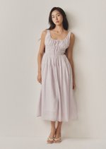 The Miami Midi Dress is a contemporary take on the timeless milkmaid style. With its sleeveless design and scoop neckline, this dress exudes effortless charm and sophistication.